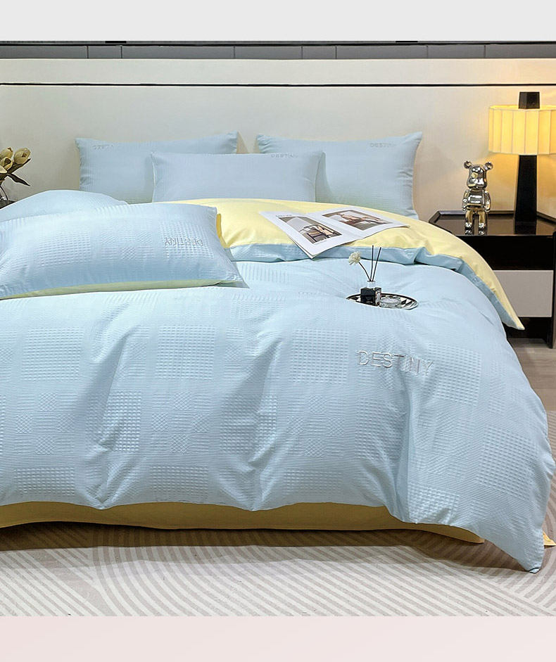 全棉华夫格提花四件套纯棉刺绣床上用品 华夫格-天兰