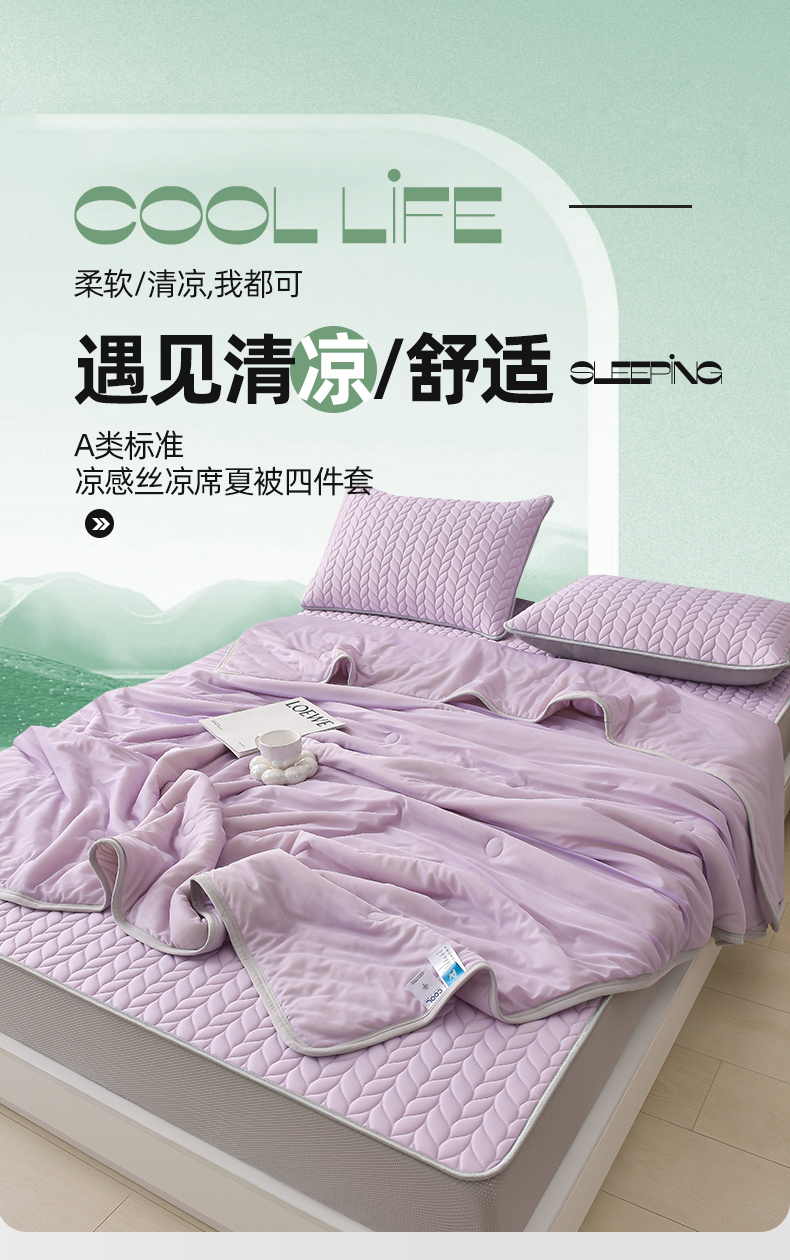 当前位置: 91家纺网 > 商品网购 > 床上用品 > 凉席 > 乳胶凉席 > 布卢姆床垫 2025新款麦穗系列A类凉感丝夏被乳胶凉席(5mm)四件套 麦穗-风信紫