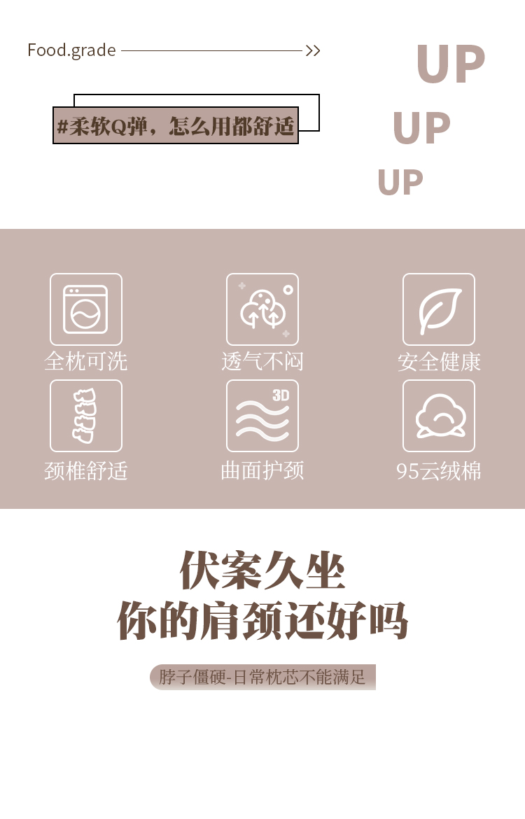 (总)帛茗轩家居 2026新款DIAO羊绒条美肌枕(生物基) 枕头枕芯,浅咖