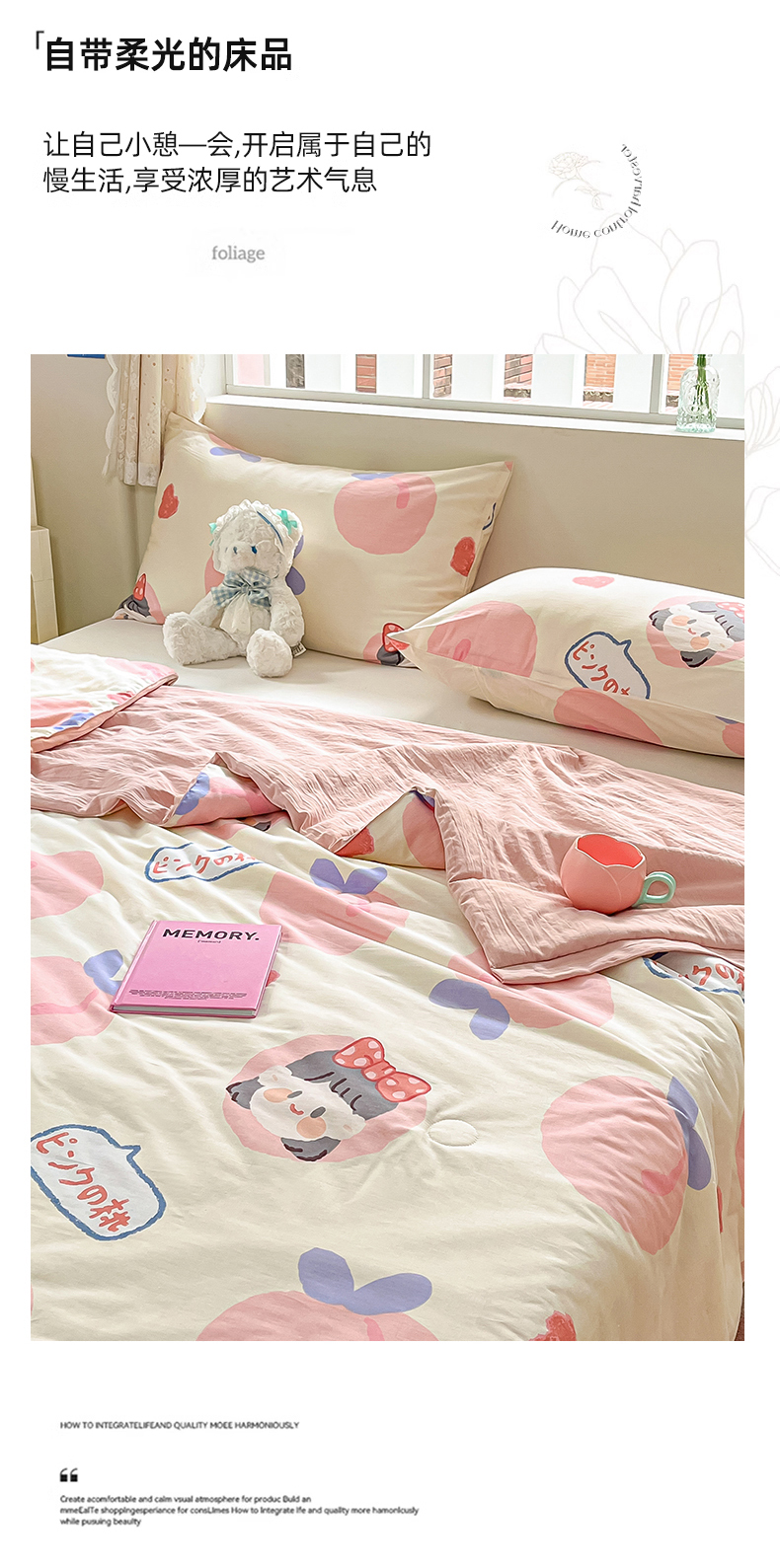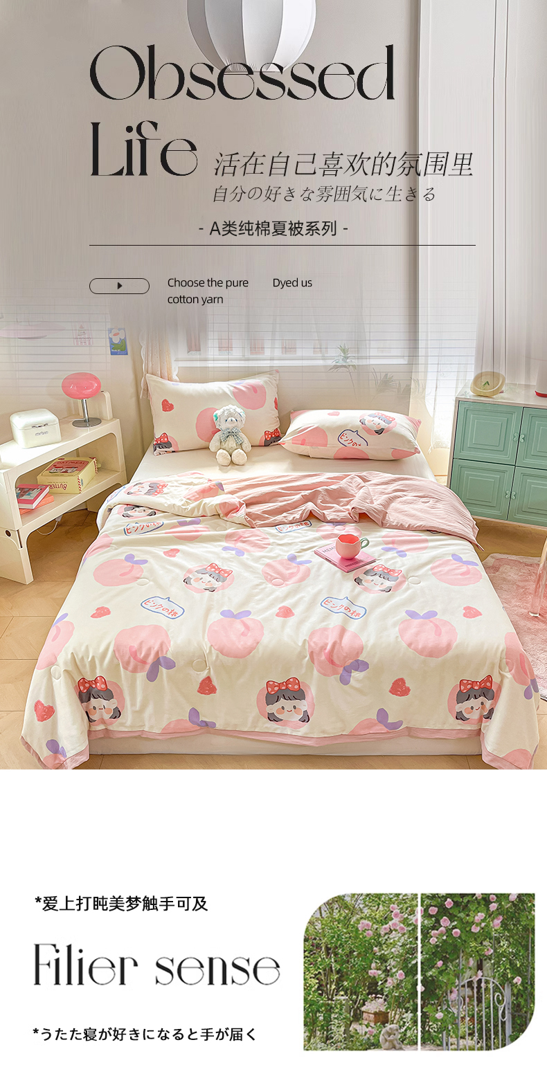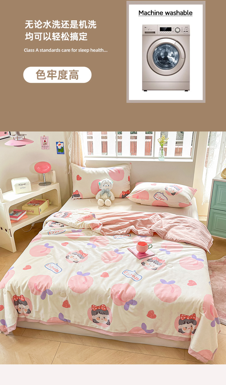 商品名称:八方汇 2024新款A类全棉印花小清新夏被 蜜桃公主