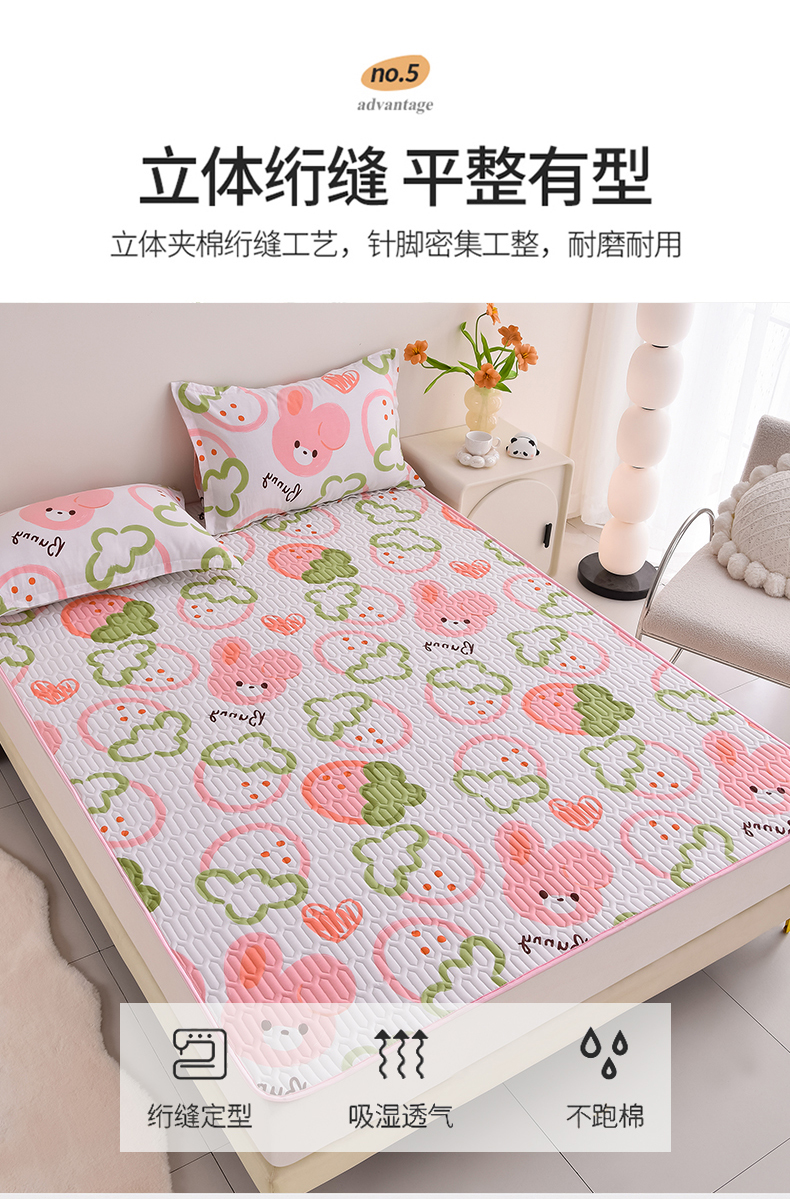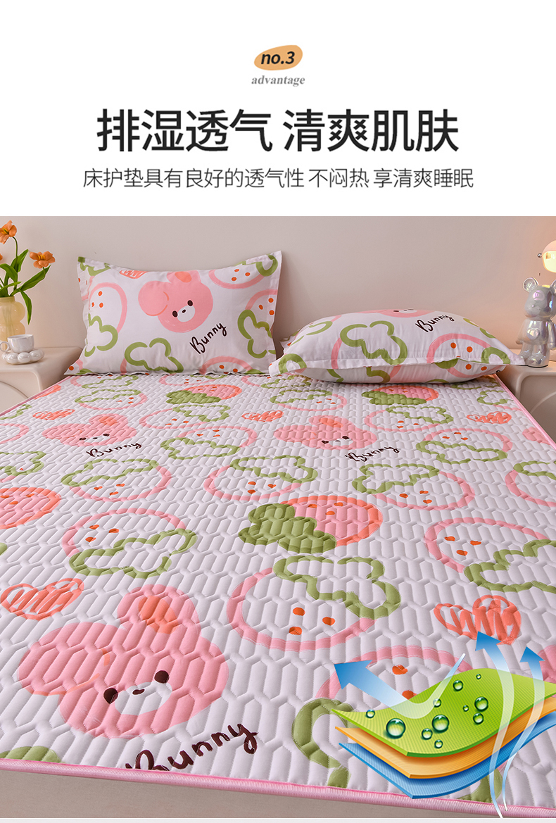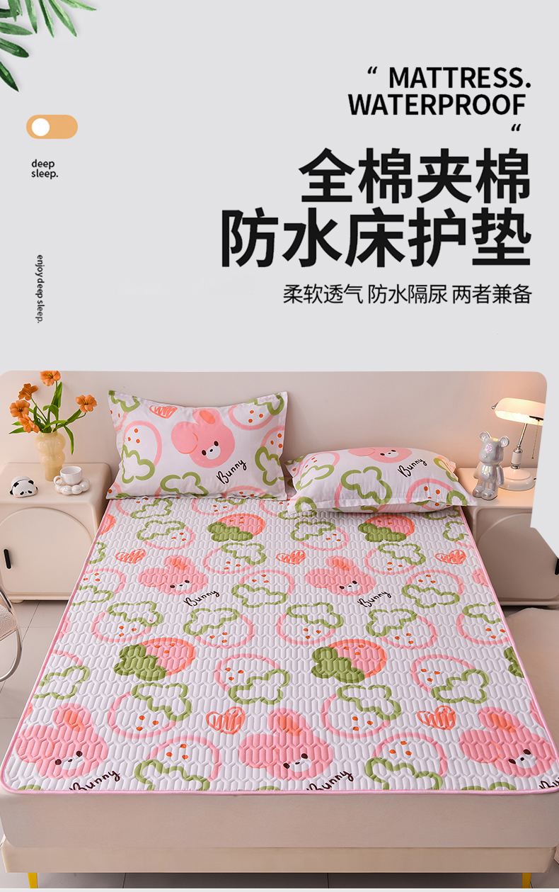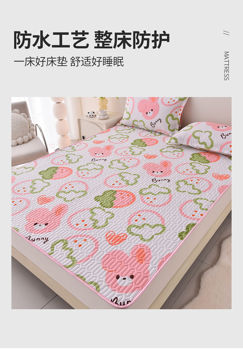 床笠人家 2025新款全棉夹棉防水床垫 草莓兔