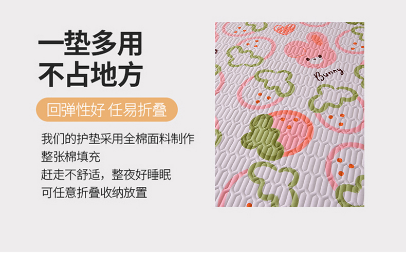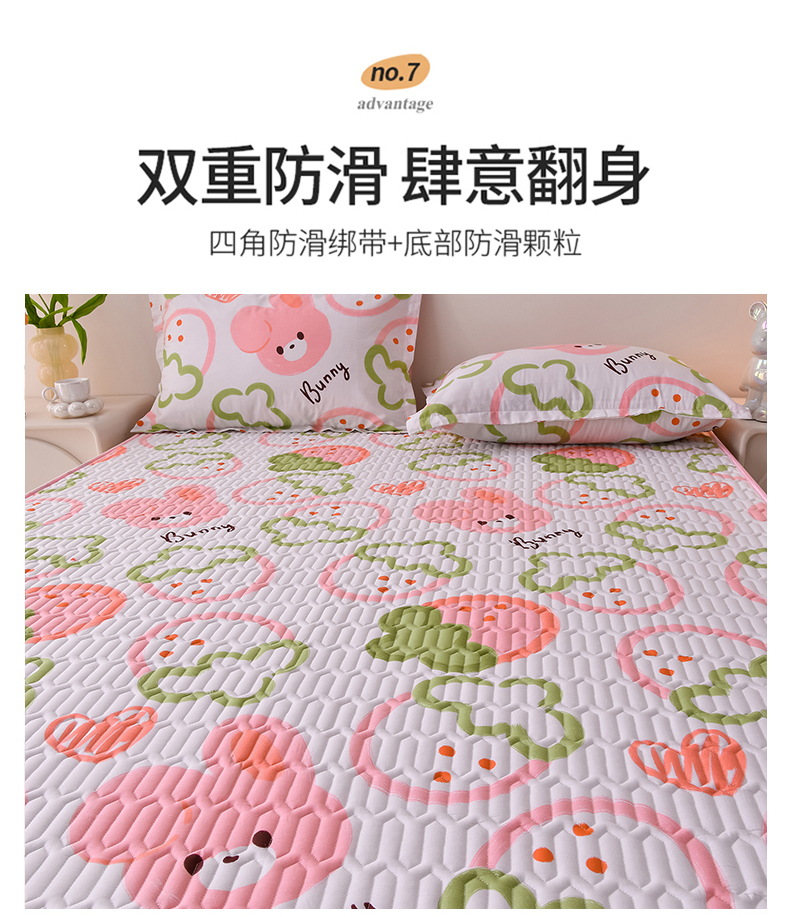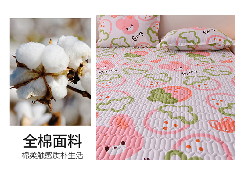 商品名称:床笠人家 2025新款全棉夹棉防水床垫 草莓兔