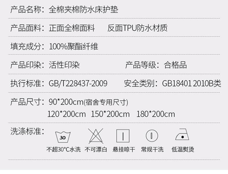 床笠人家 2025新款全棉夹棉防水床垫 雨花石,雨花石