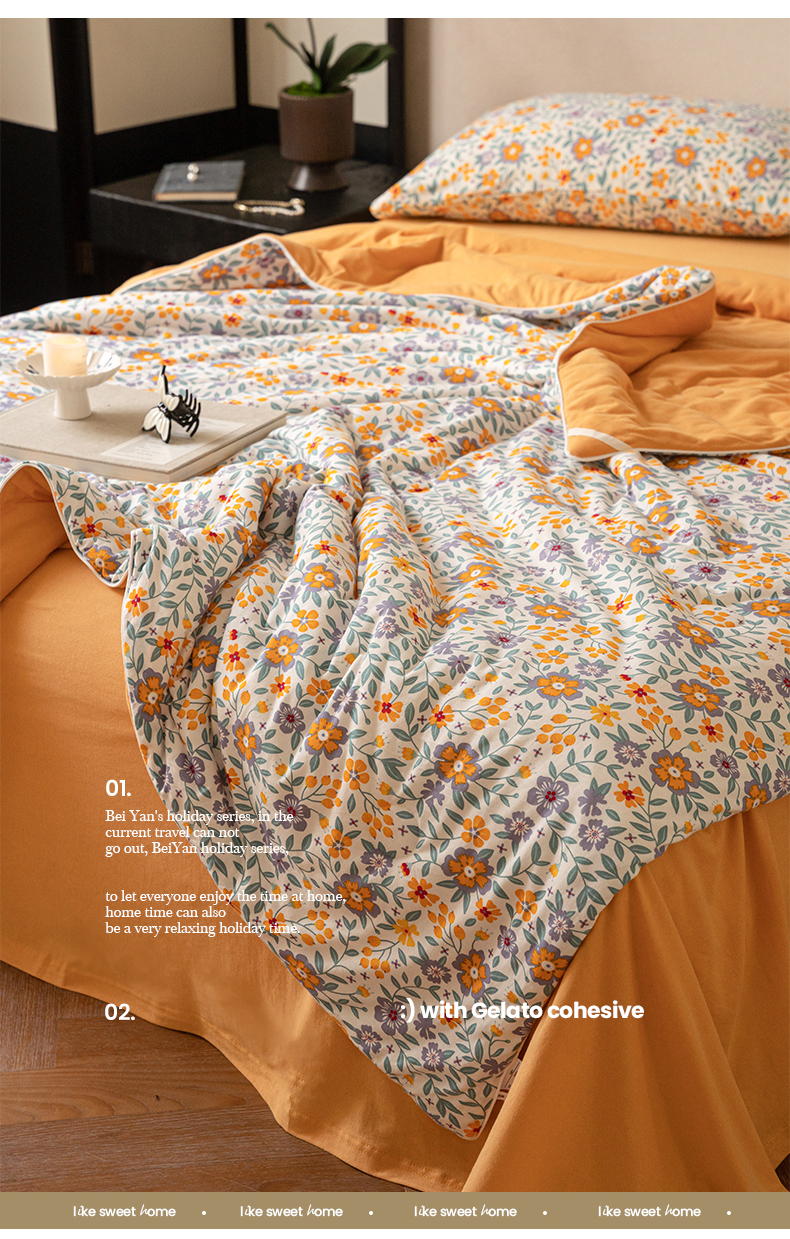 • 91家纺网 家纺一手货源 找家纺 华超针织 2024新款A类全棉针织印花夏被四件套 夏被花语