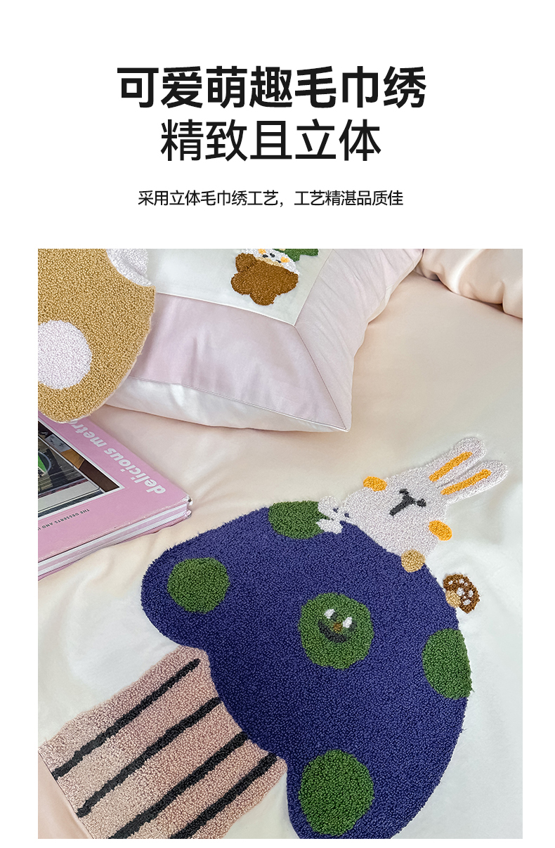 (总)名品优仓2023新款毛巾绣撞色荷叶边四件套,拾光兔,铃兰花开,爱丽兔,太阳花清爽绿,太阳花芝芝奶绿,兔然暴富