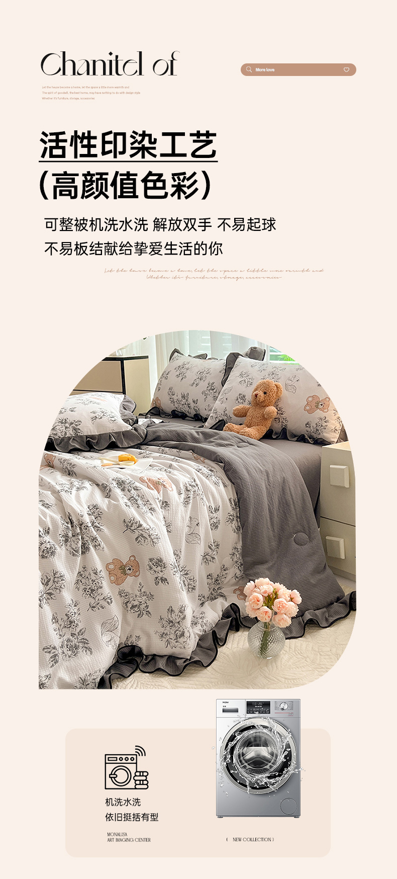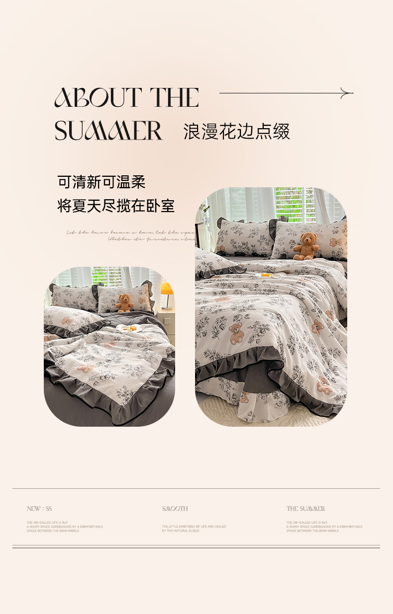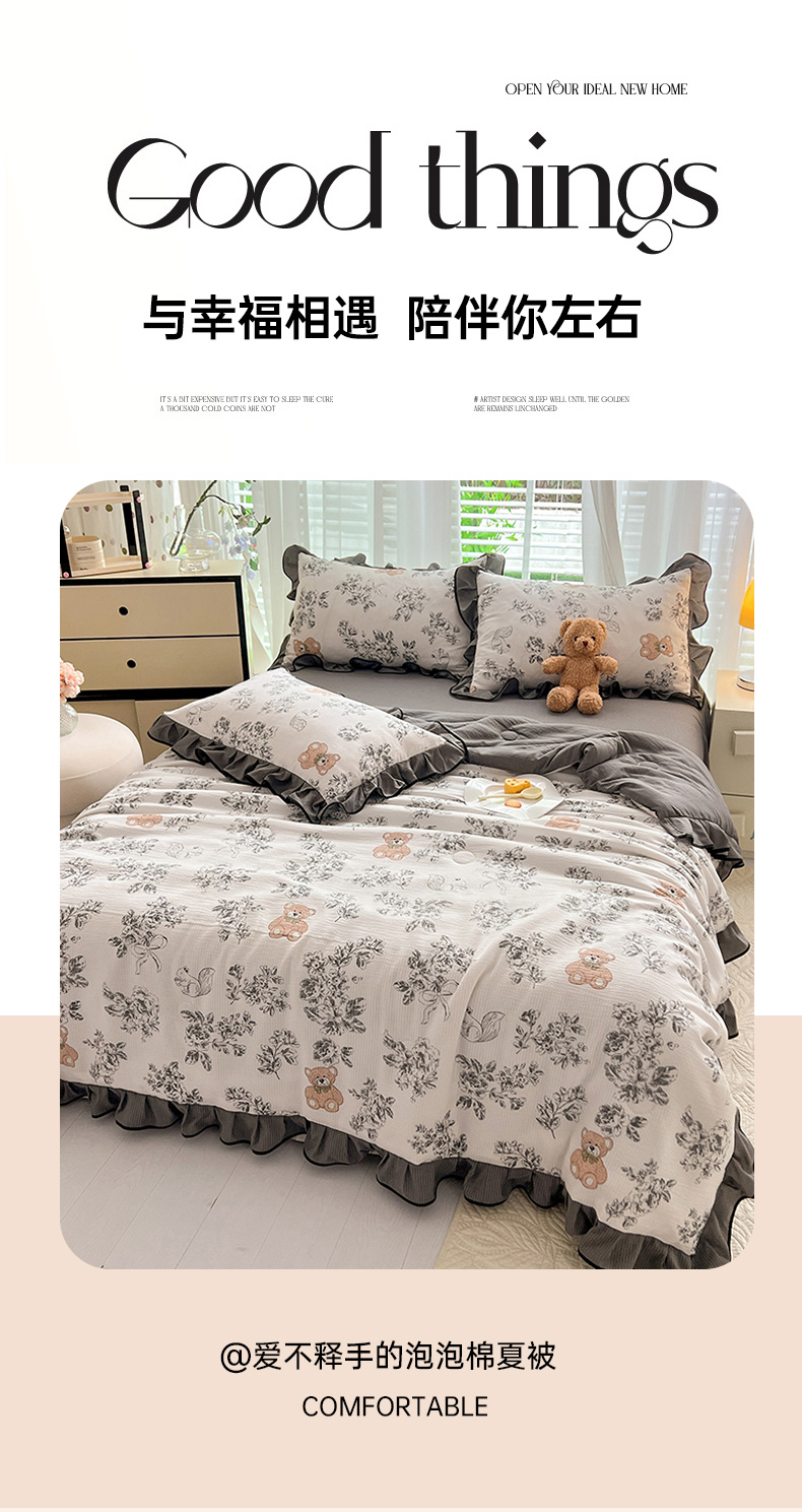 商品名称:韩约 2024新款1有氧提花时尚花边款泡泡夏被棉四件套 秘境