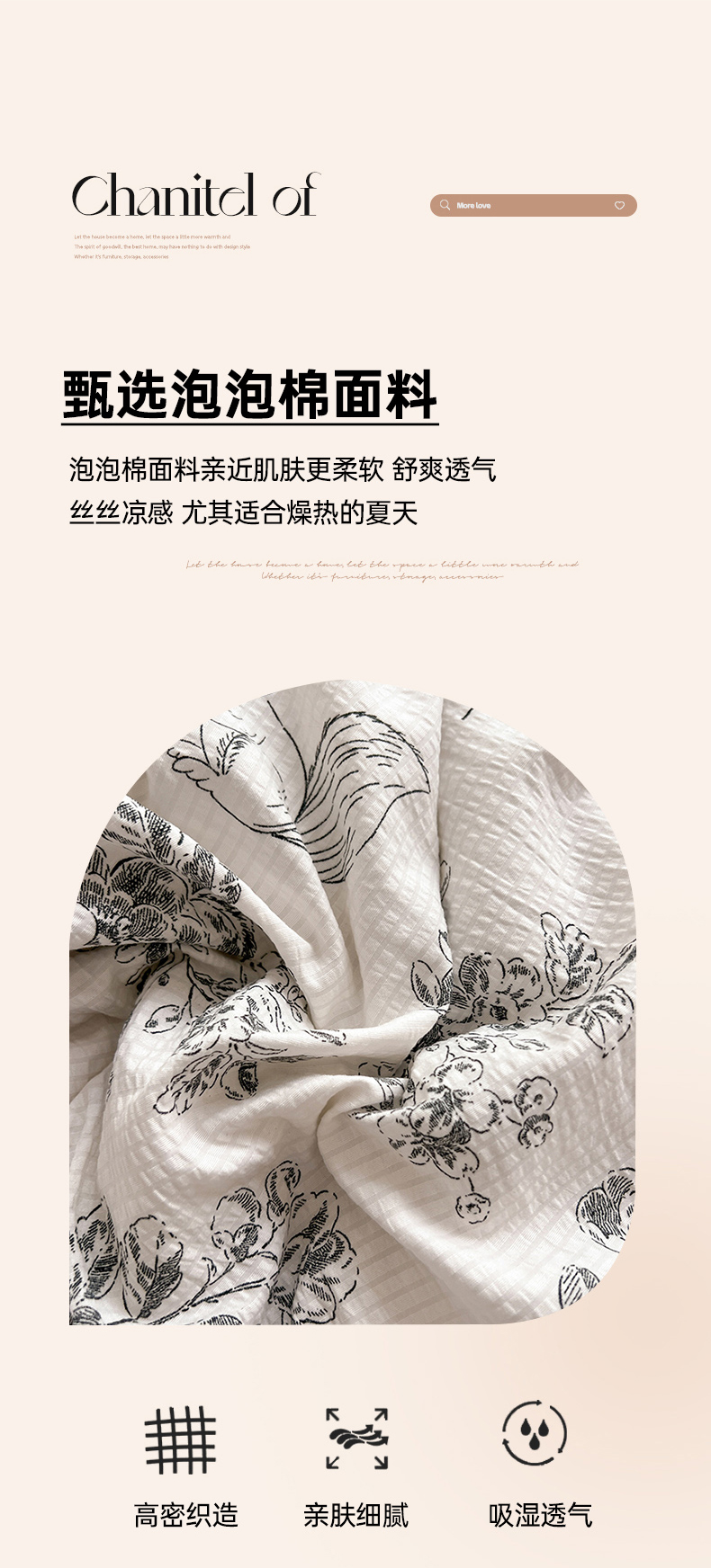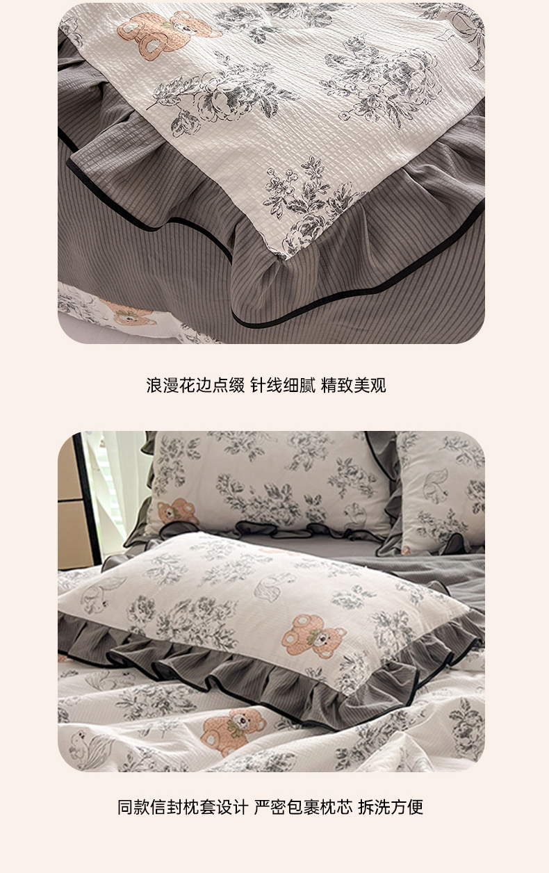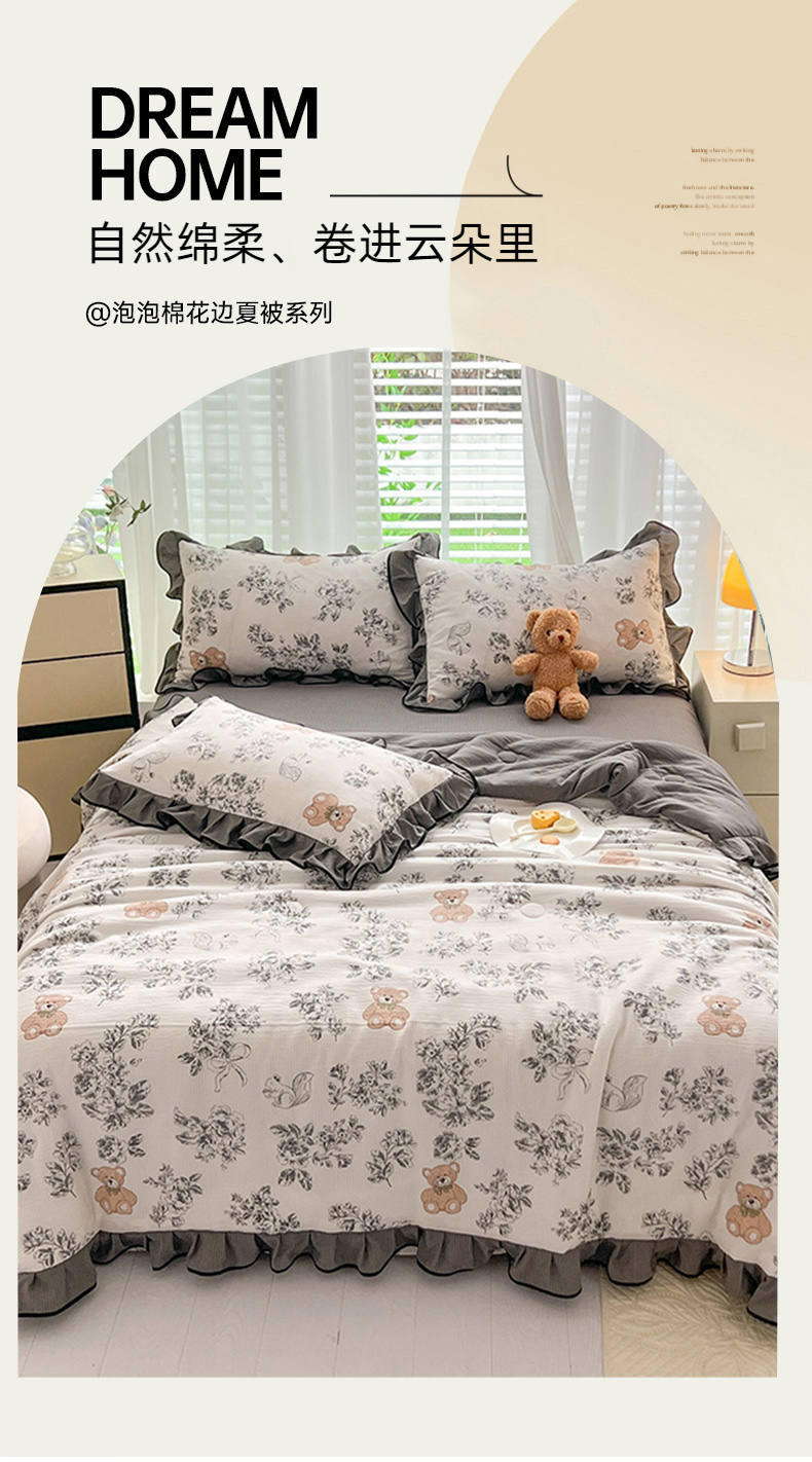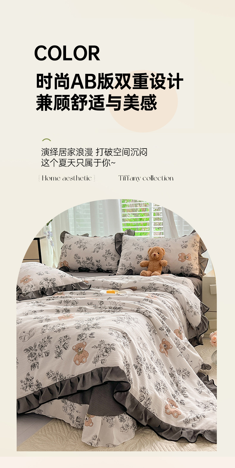 商品名称:韩约 2024新款1有氧提花时尚花边款泡泡夏被棉四件套 秘境