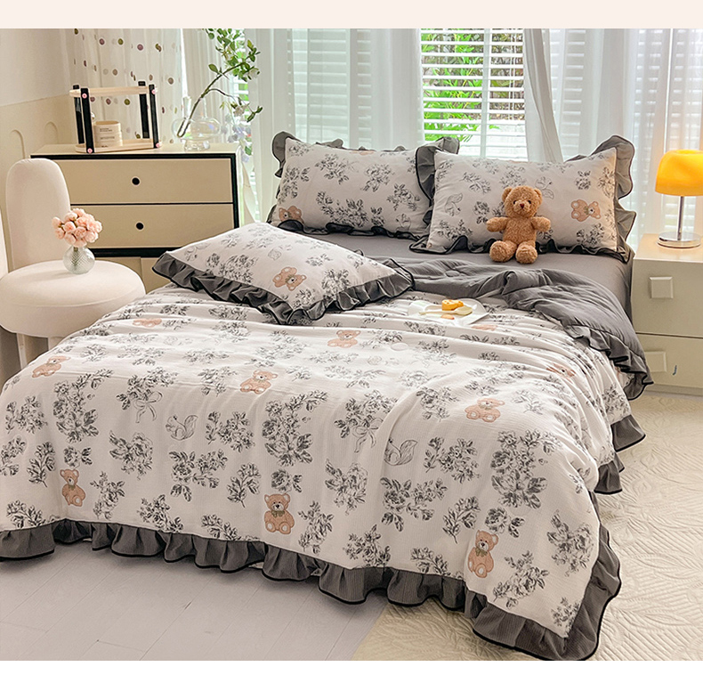 韩约 2024新款1有氧提花时尚花边款泡泡夏被棉四件套 秘境