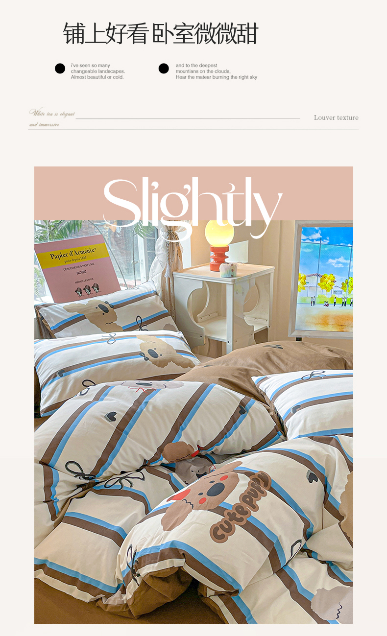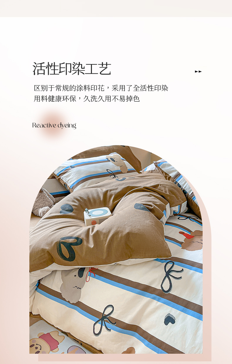 当前位置: 91家纺网 > 商品网购 > 床品套件 > 四件套 > 全棉普通四件套 > 798家纺 2025新款全棉13070印花四件套 条纹狗狗