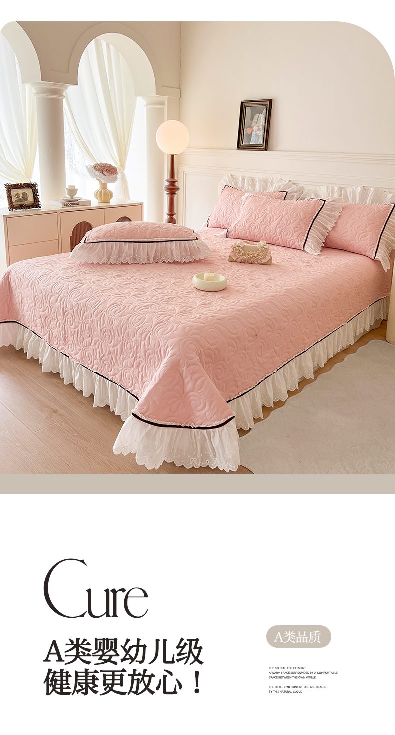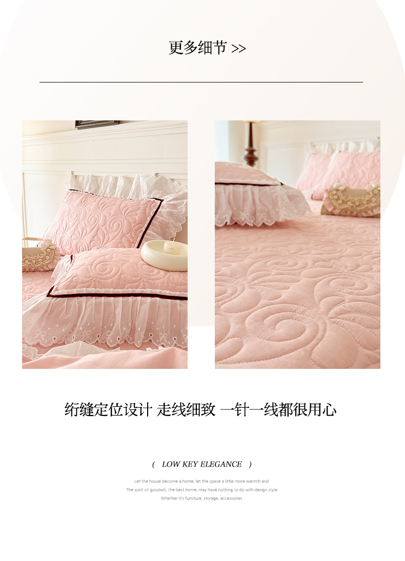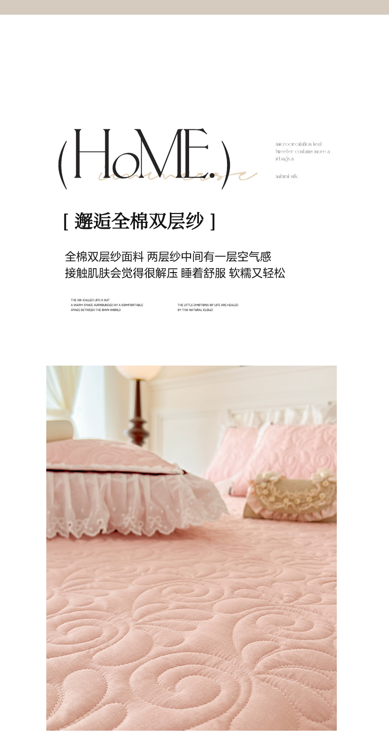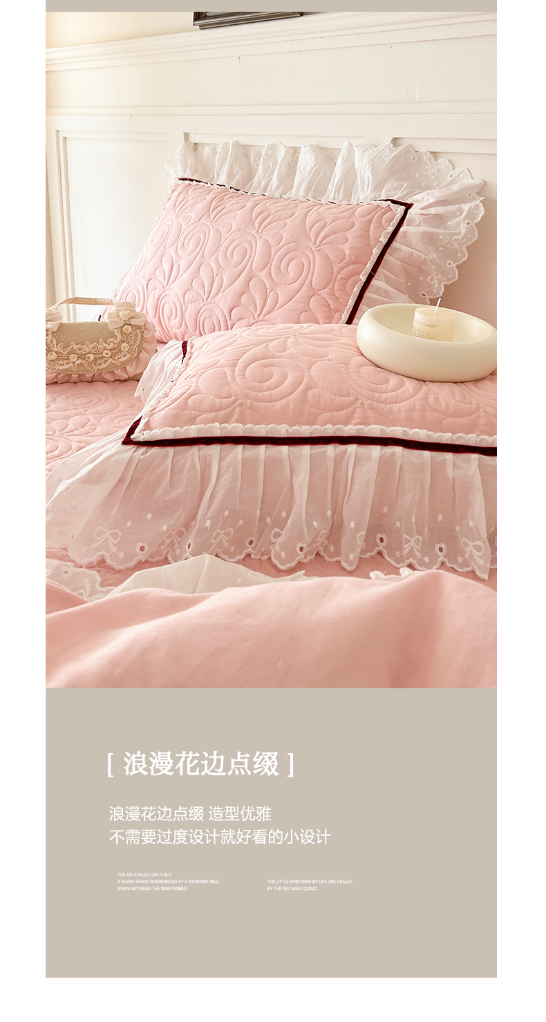 商品名称:网红馆 2025新款全棉双层纱花边款爱丽丝系列单床盖 樱花粉
