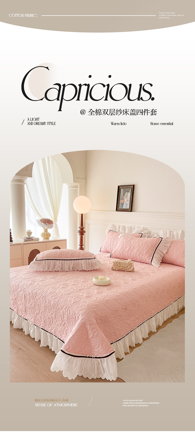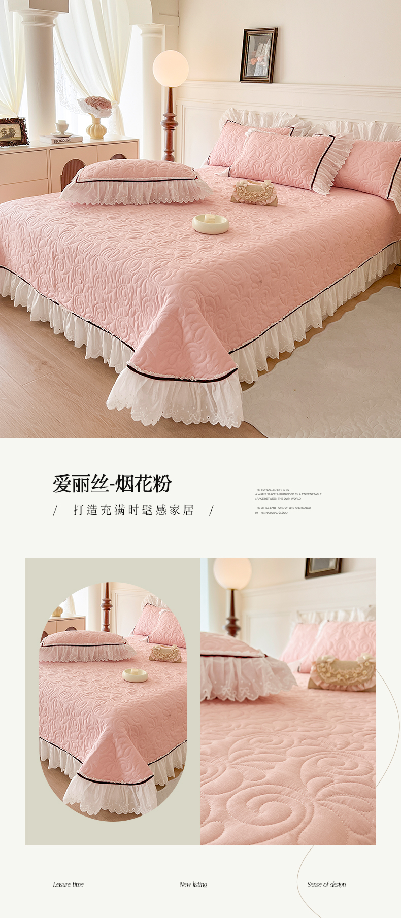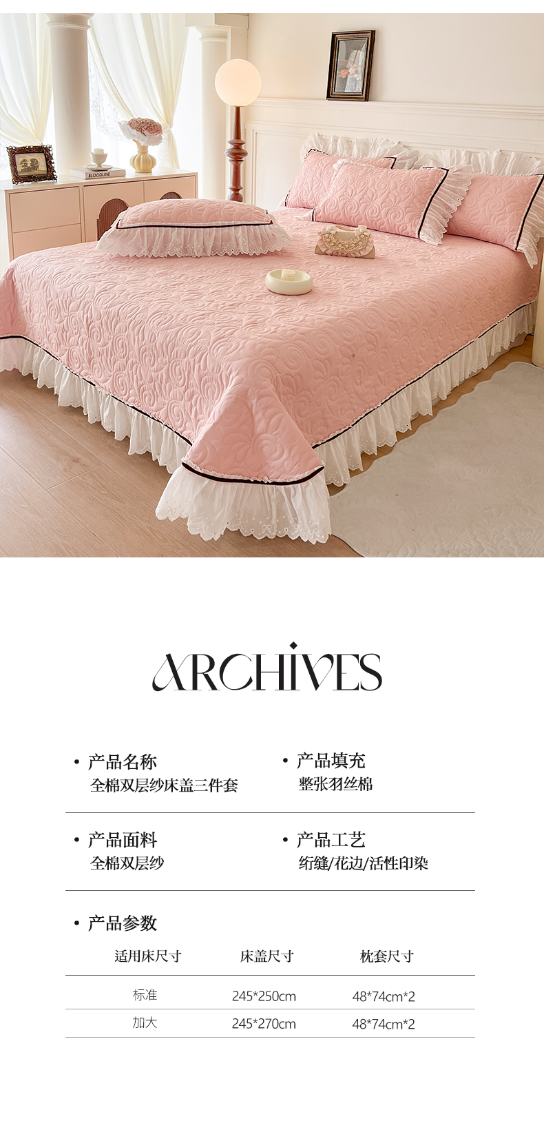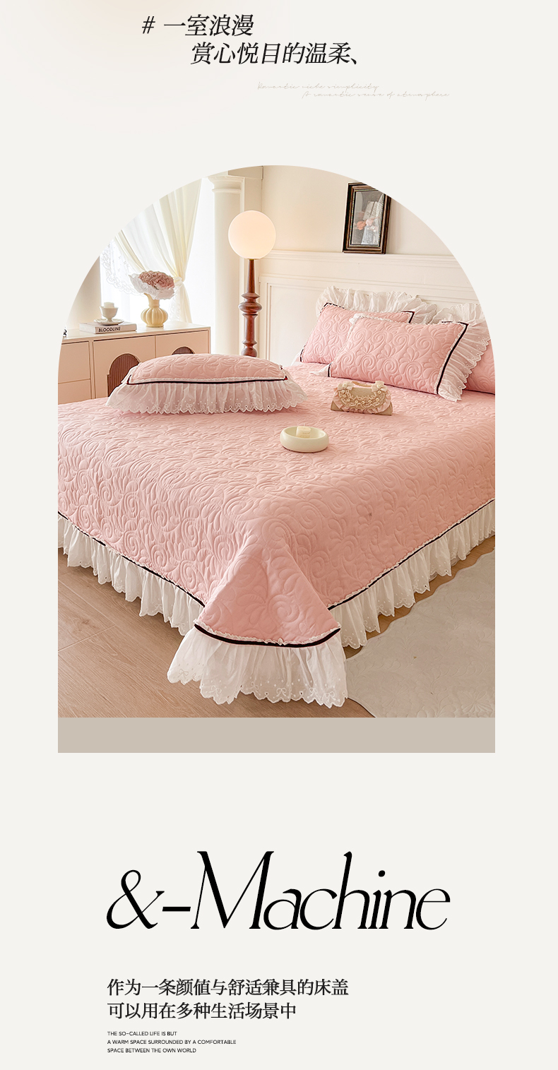 商品名称:网红馆 2025新款全棉双层纱花边款爱丽丝系列单床盖 樱花粉