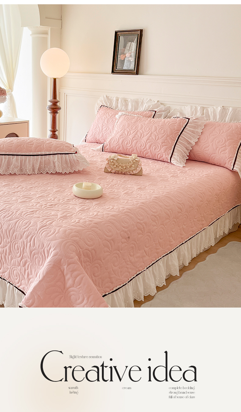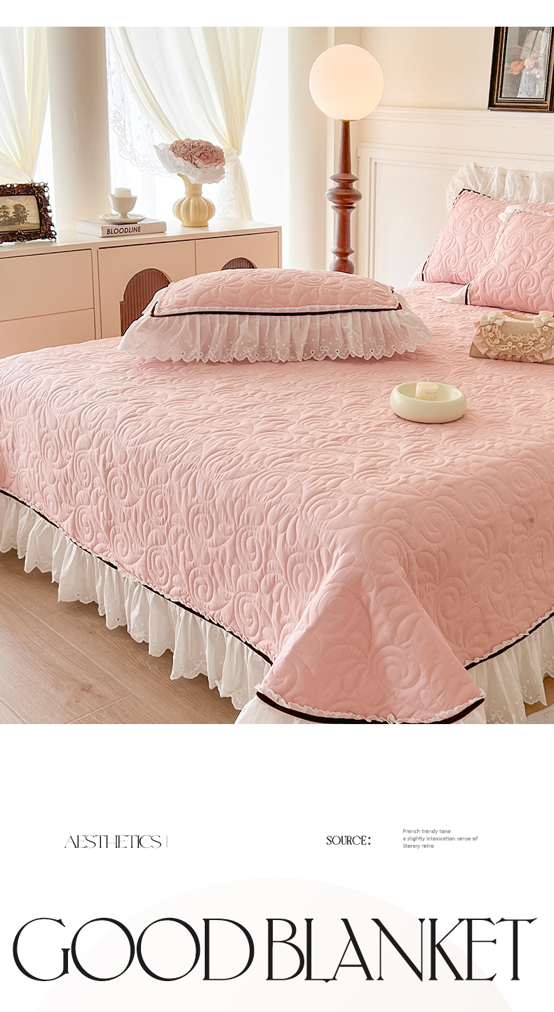 网红馆 2025新款全棉双层纱花边款爱丽丝系列单床盖 樱花粉