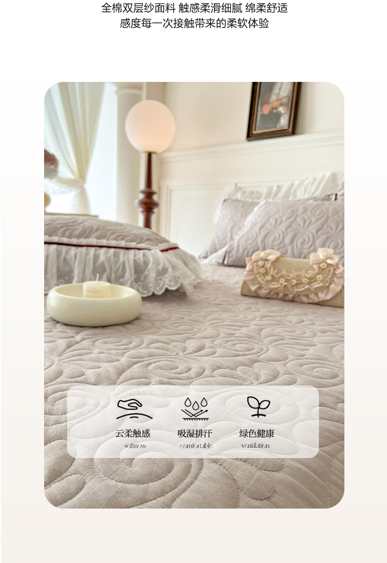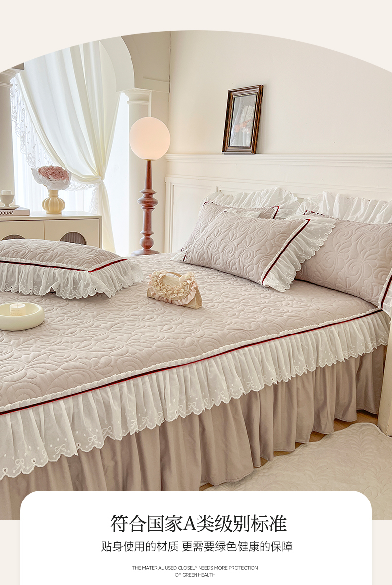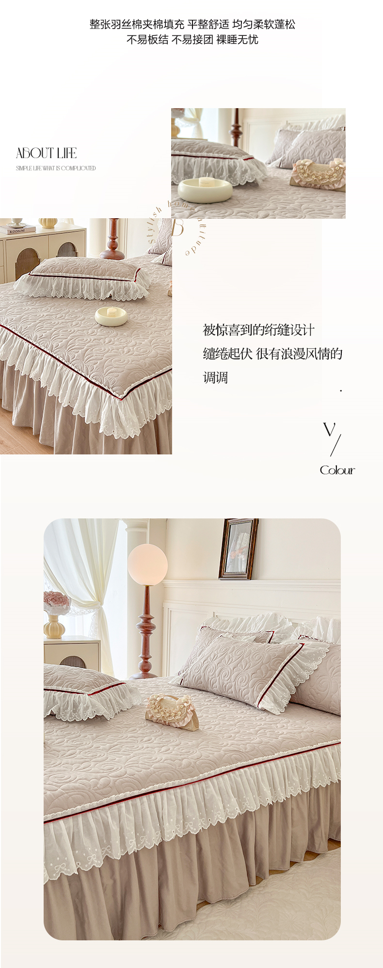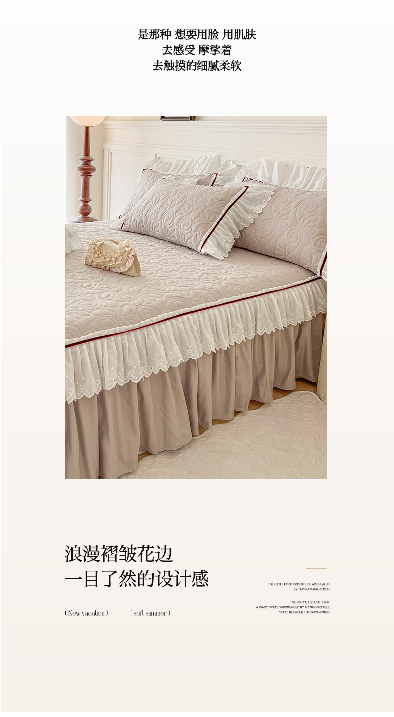 商品名称:网红馆 2025新款全棉双层纱花边款爱丽丝系列单床裙 杏子灰