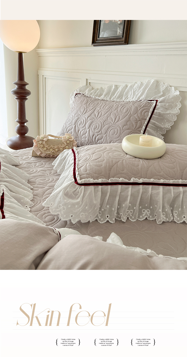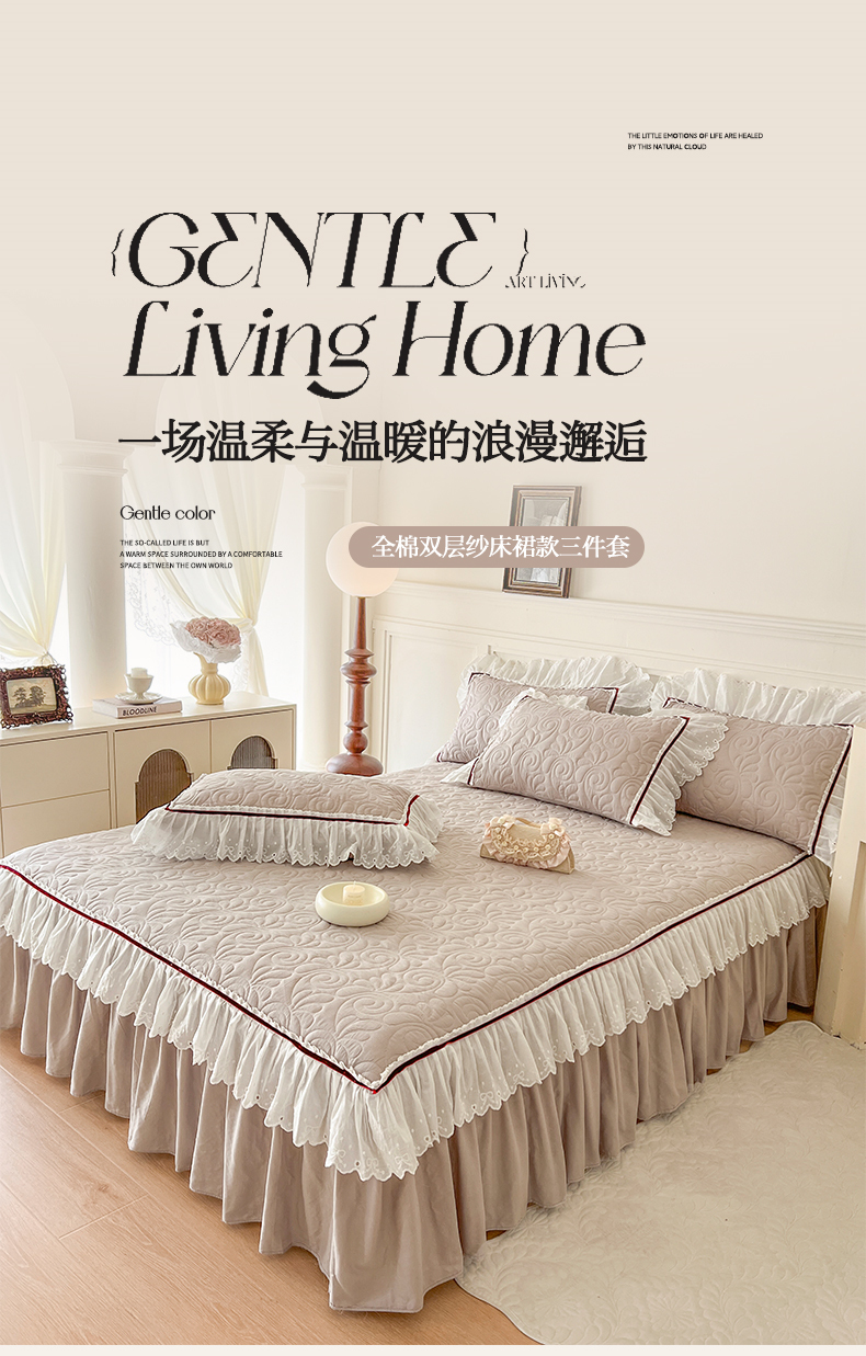 网红馆 2025新款全棉双层纱花边款爱丽丝系列单床裙 杏子灰