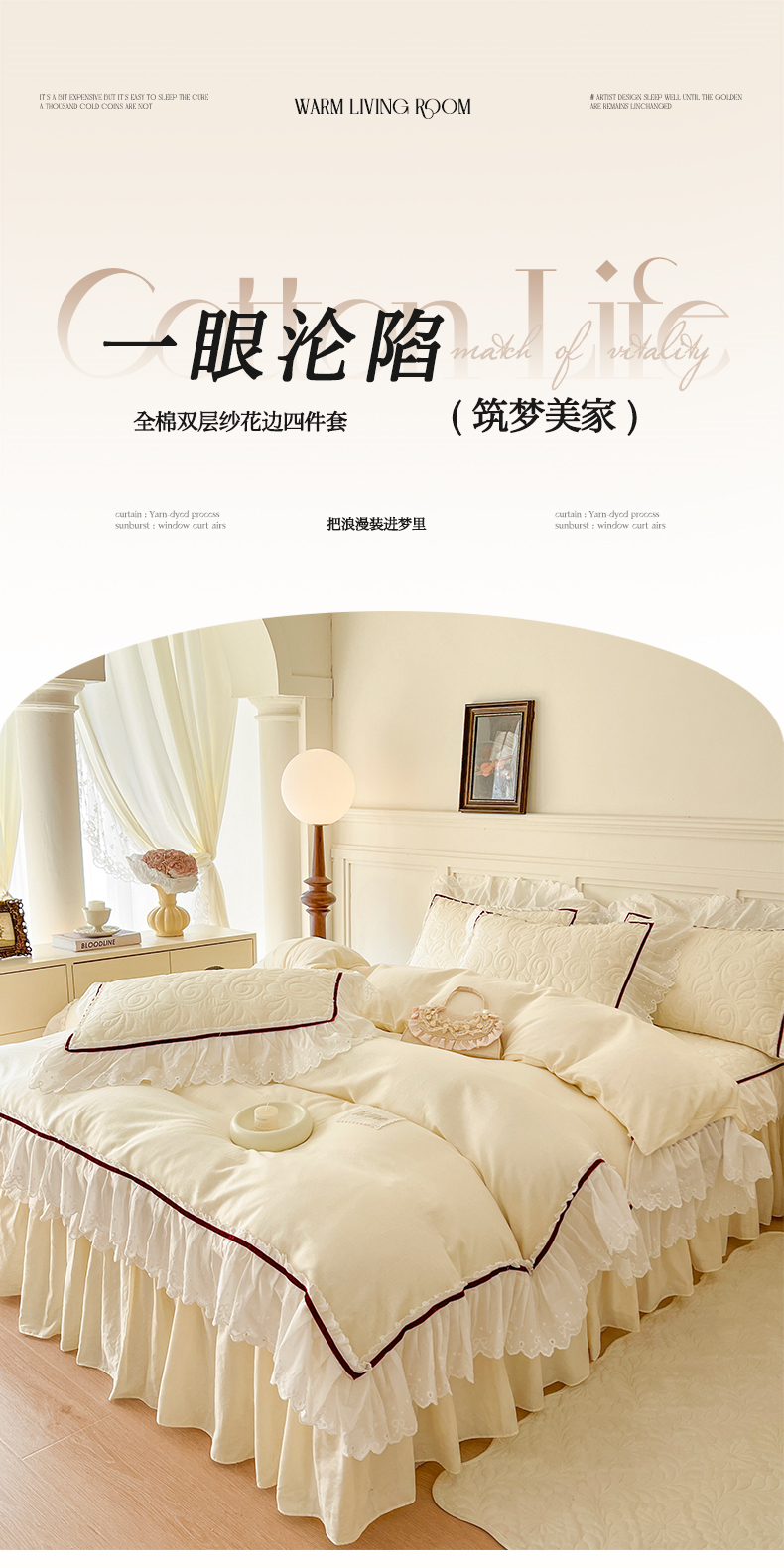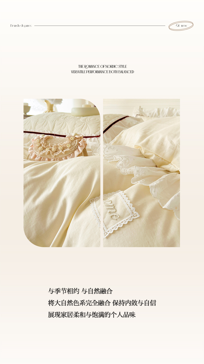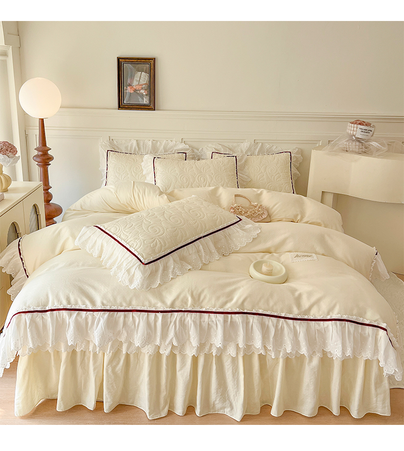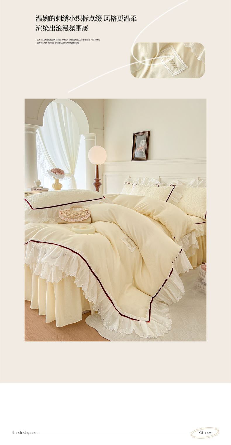 当前位置: 91家纺网 > 商品网购 > 床品套件 > 四件套 > 双层纱四件套 > 网红馆 2025新款全棉双层纱四件套花边款爱丽丝系列 奶油白