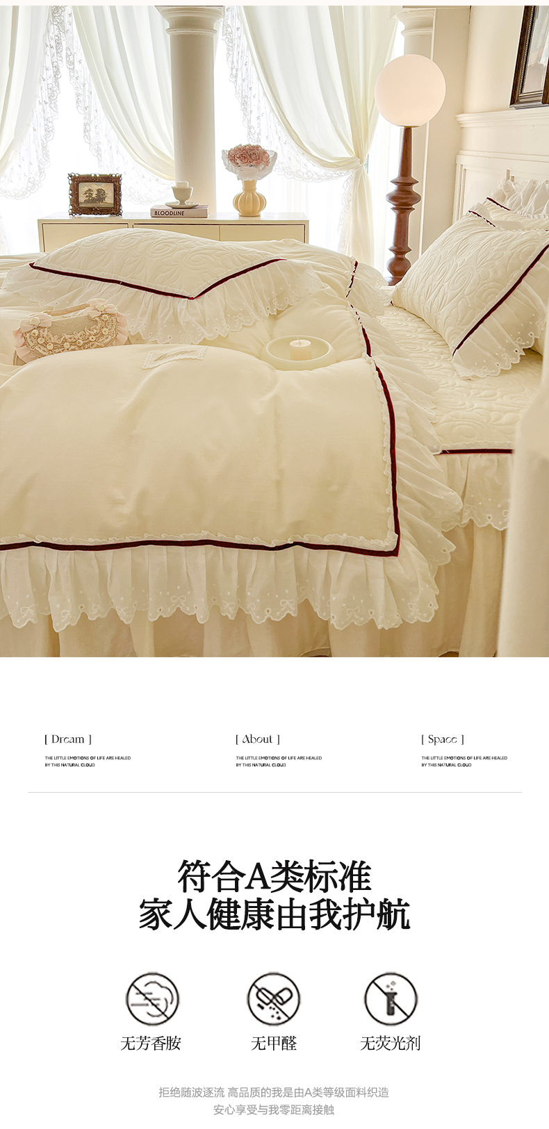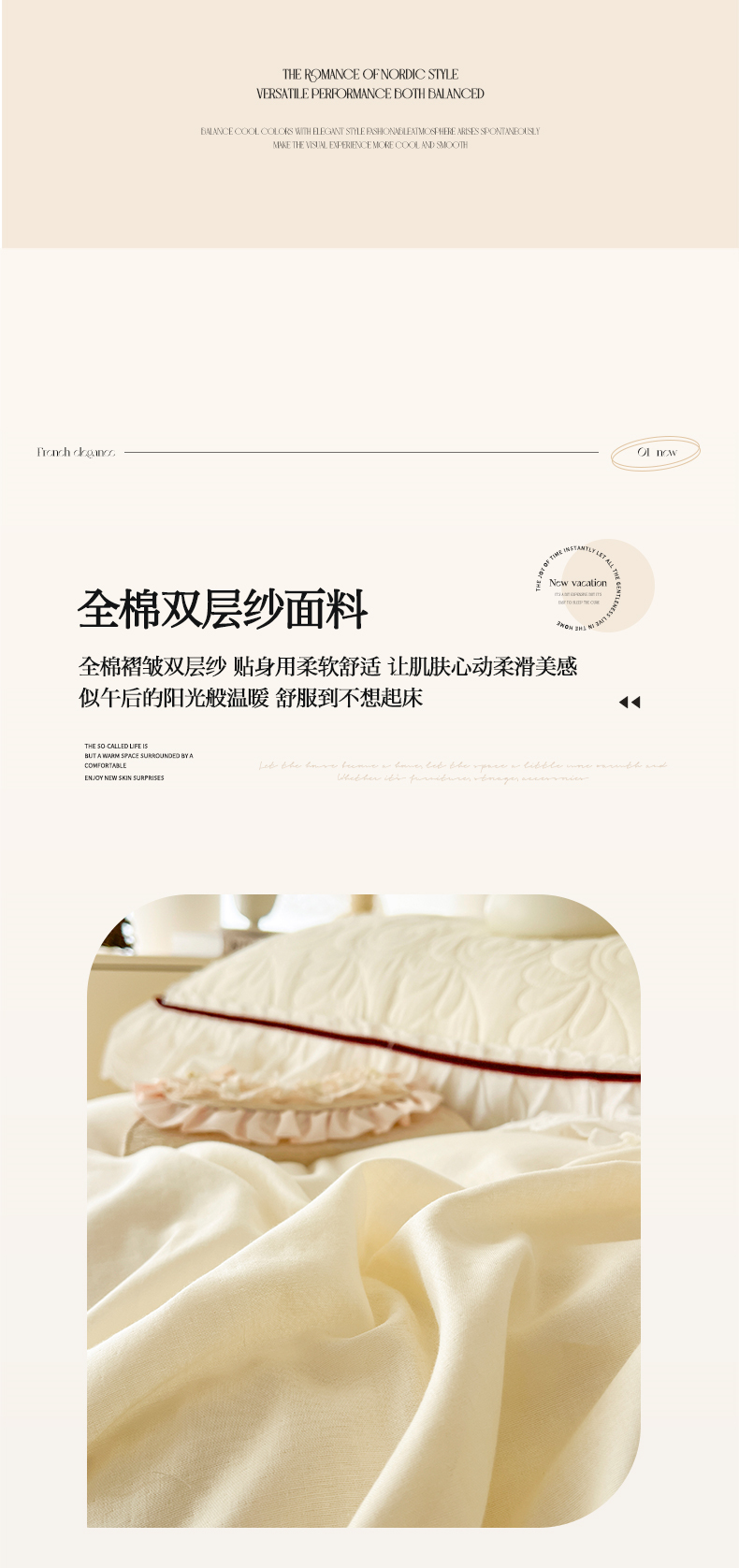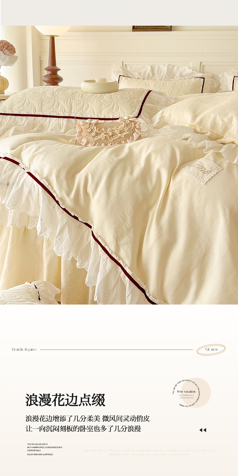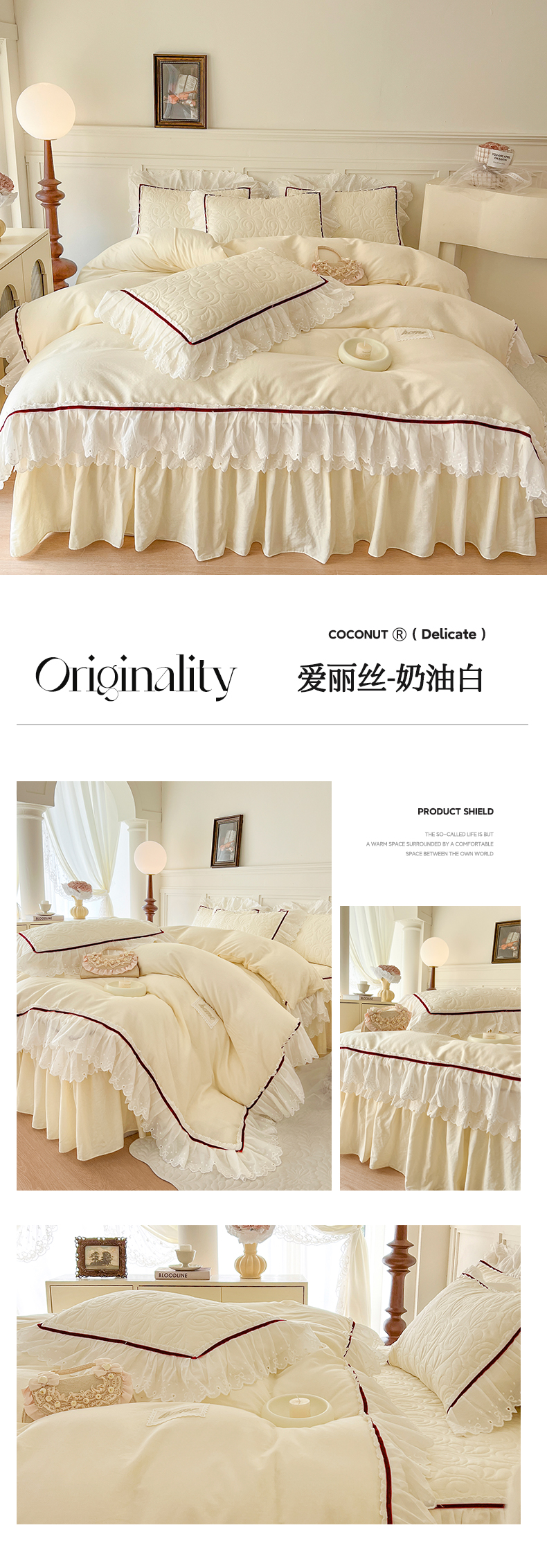 当前位置: 91家纺网 > 商品网购 > 床品套件 > 四件套 > 双层纱四件套 > 网红馆 2025新款全棉双层纱四件套花边款爱丽丝系列 奶油白