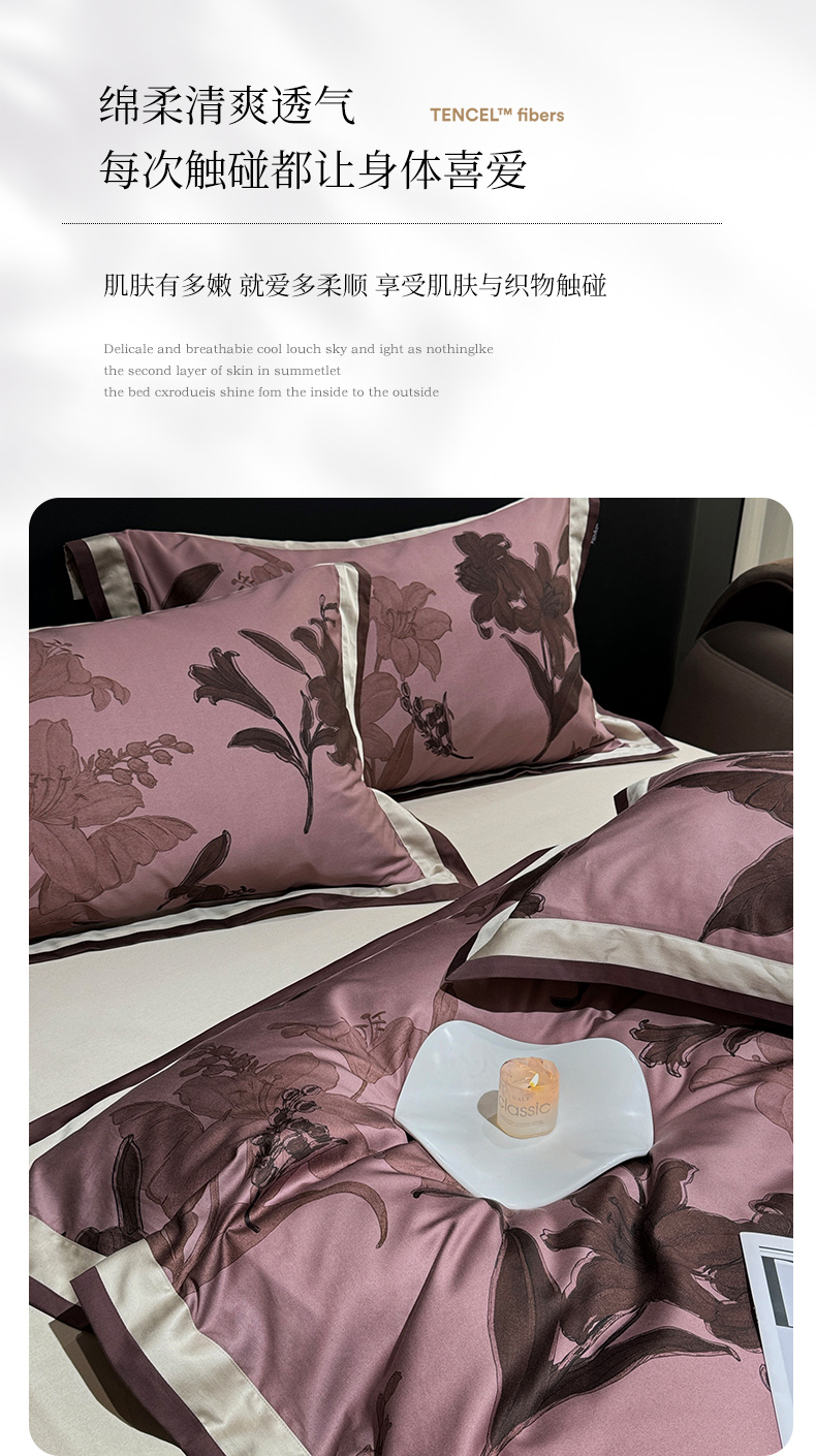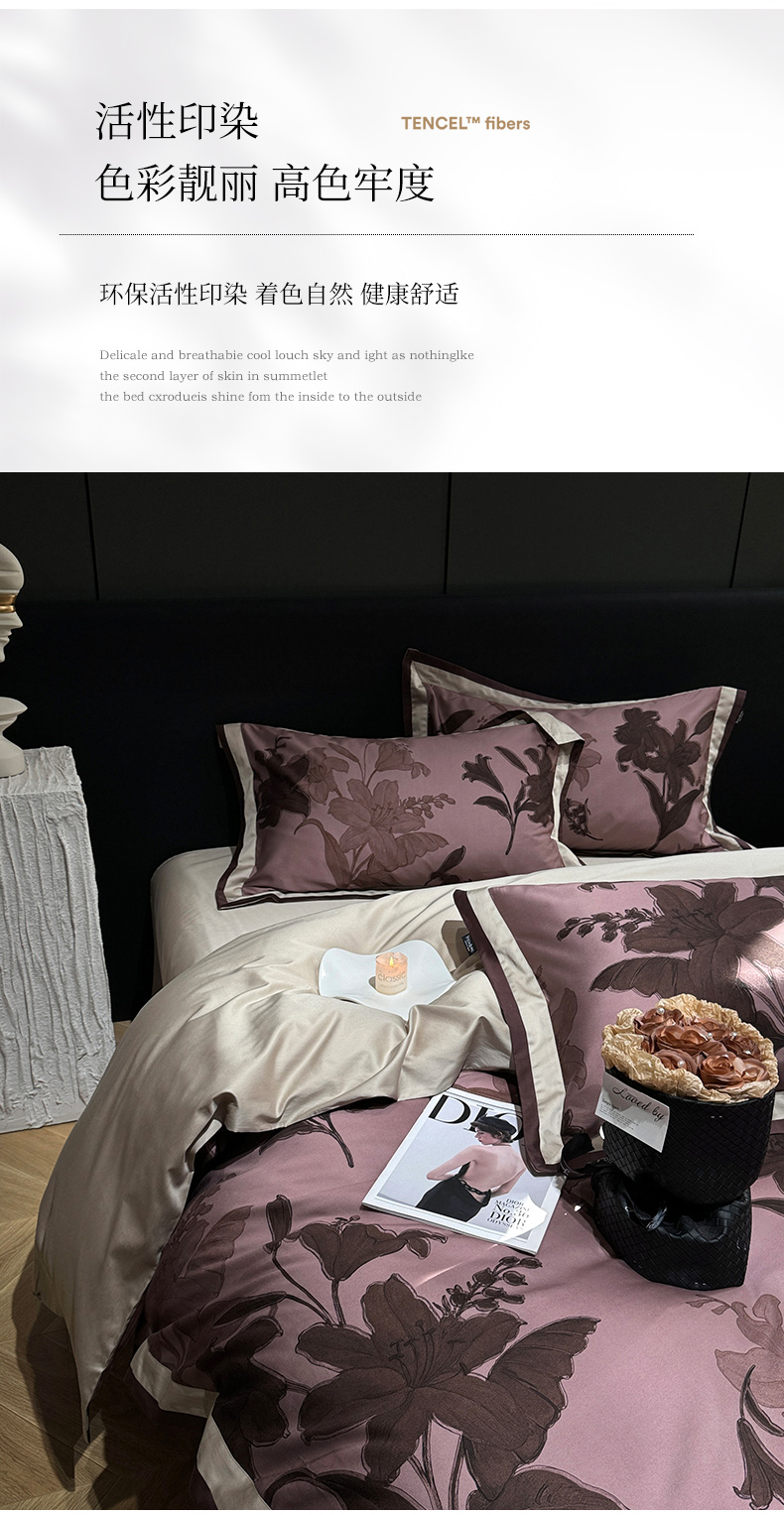 商品名称:宜代光年 2024新款天丝棉拼角数码印花四件套 伊莎贝拉-棕红