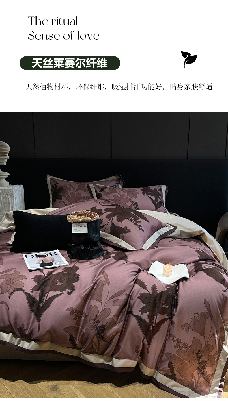 宜代光年 2024新款天丝棉拼角数码印花四件套 伊莎贝拉-棕红