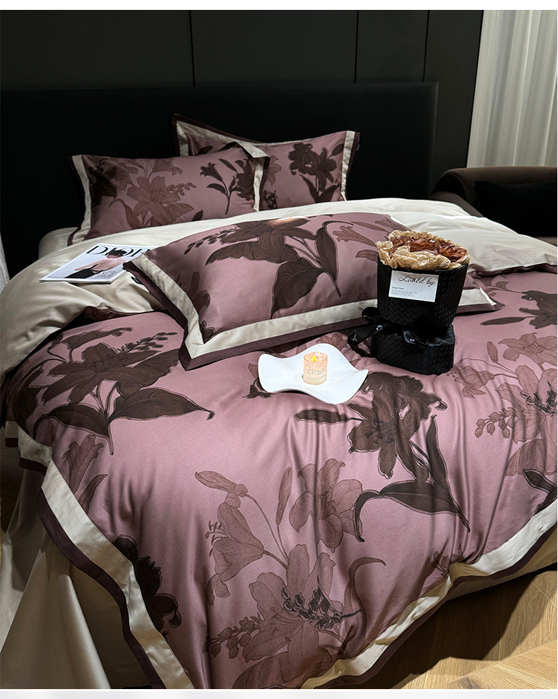 (总)宜代光年 2025新款小米貂法式中古风印花四件套,墨染花簇,蝶语,粉雾渐染,灰韵层叠,墨韵花影,秋华,心上玫瑰,棕影绘花
