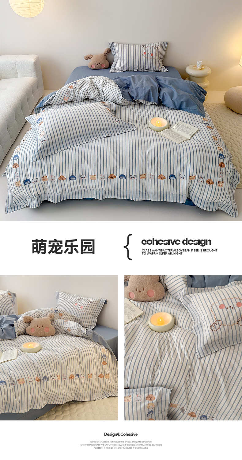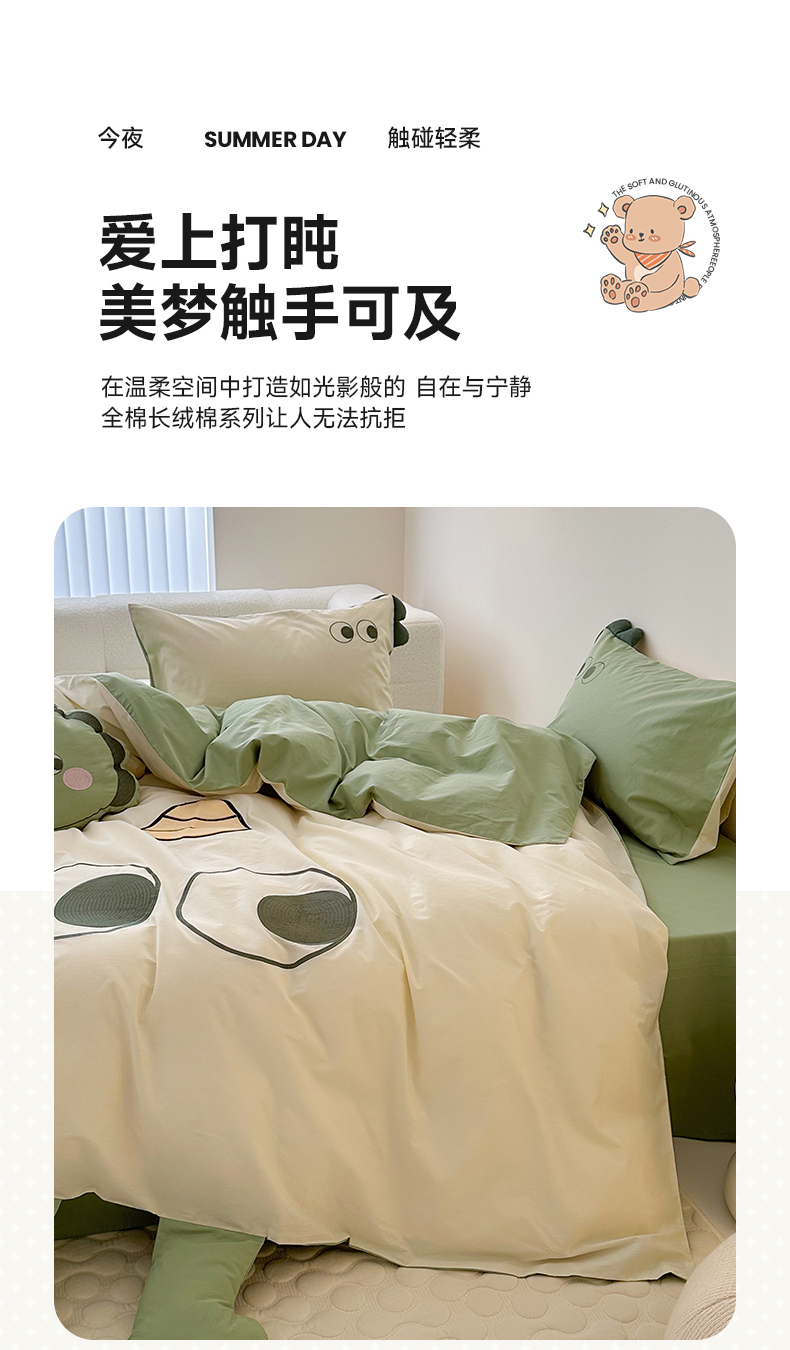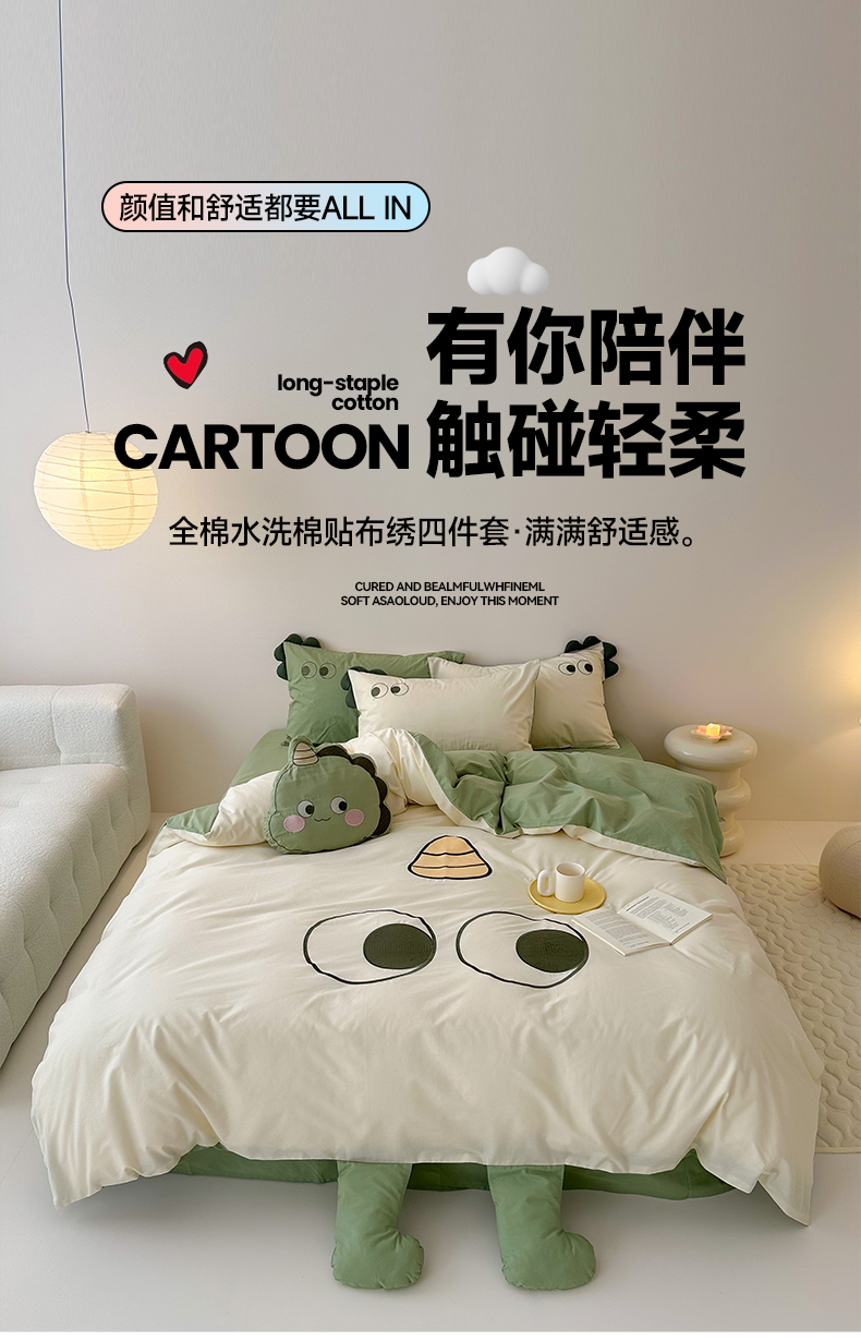 当前位置: 91家纺网 > 商品网购 > 床品套件 > 四件套 > 全棉普通四件套 > (总)蜜柚 2024新款全棉水洗棉工艺贴布绣卡通四件套