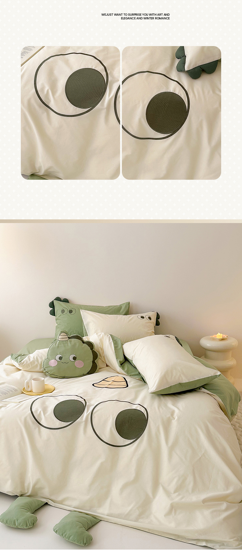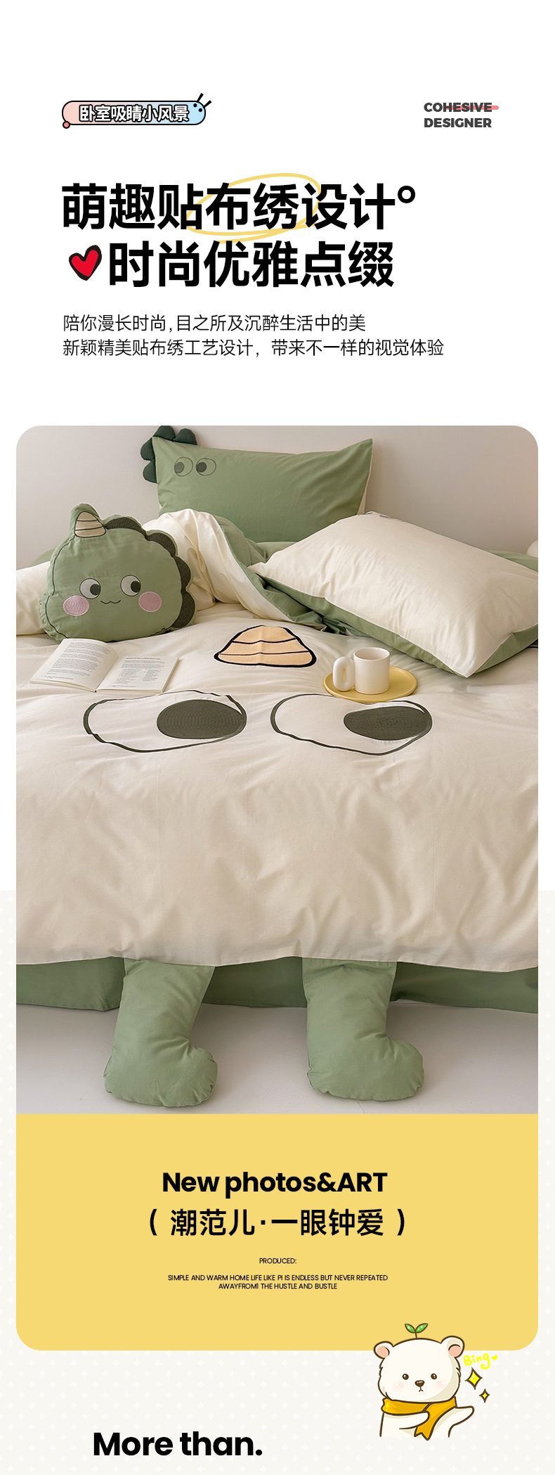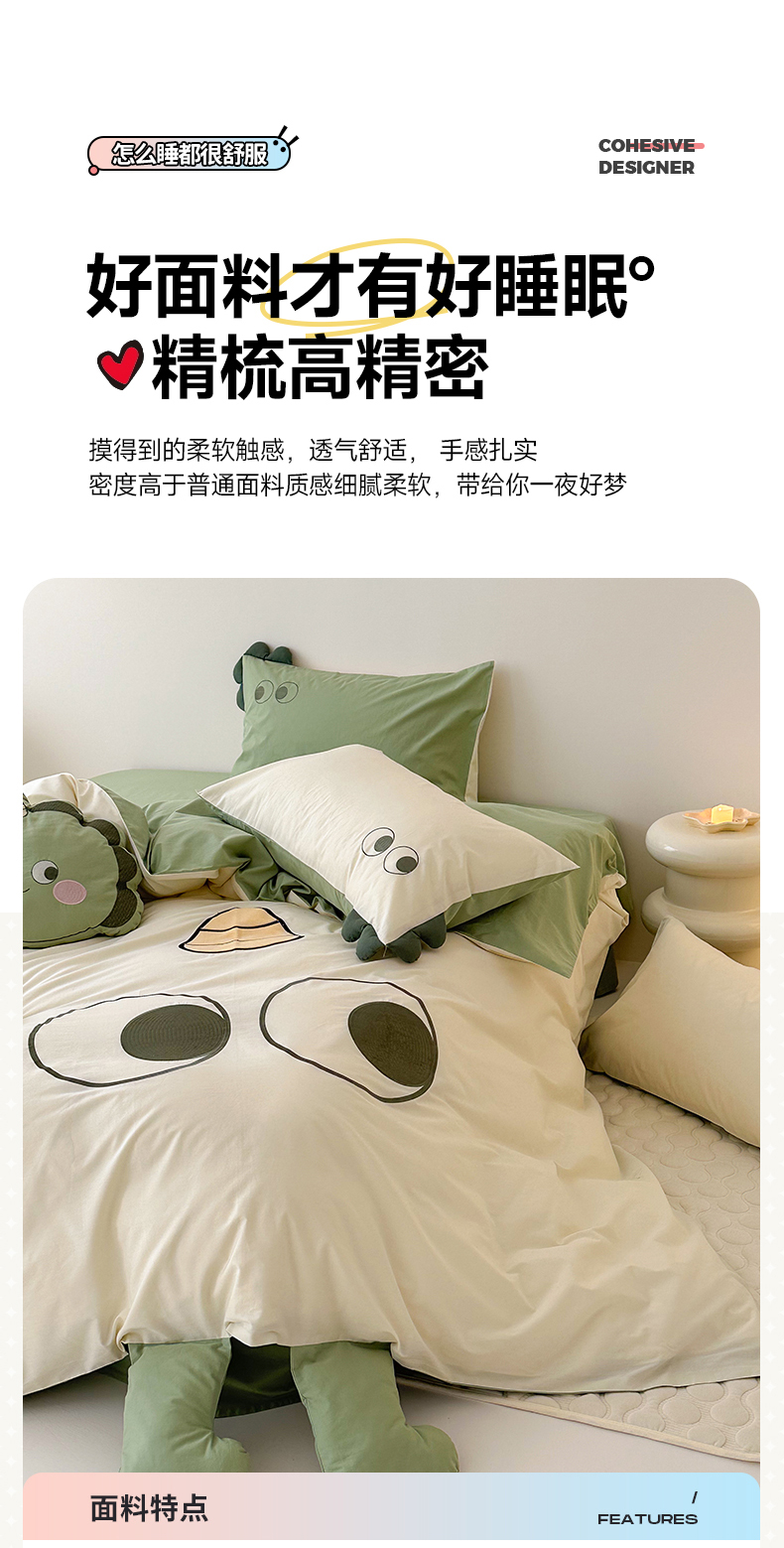 当前位置: 91家纺网 > 商品网购 > 床品套件 > 四件套 > 全棉普通四件套 > (总)蜜柚 2024新款全棉水洗棉工艺贴布绣卡通四件套