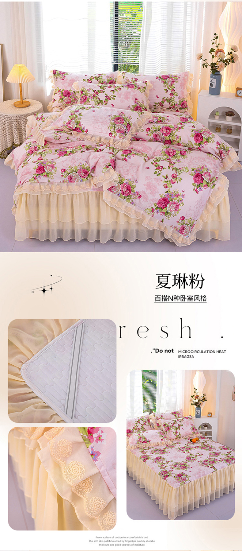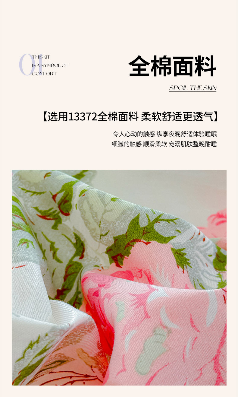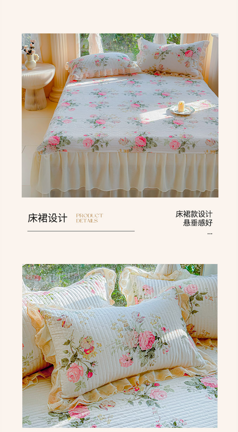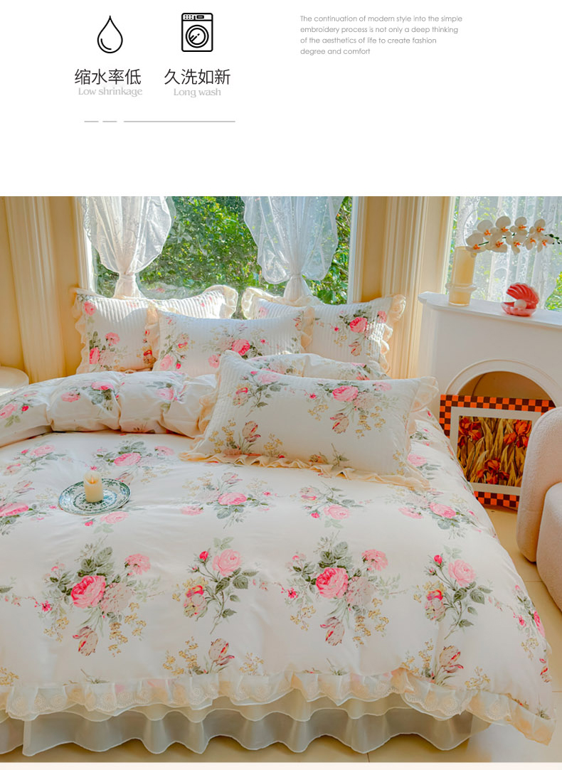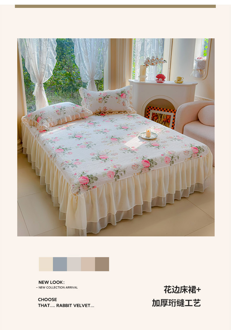 当前位置: 91家纺网 > 商品网购 > 床品套件 > 四件套 > 全棉普通四件套 > (总)木兰花 2024新款全棉印花被套蕾丝夹棉床裙款四件套