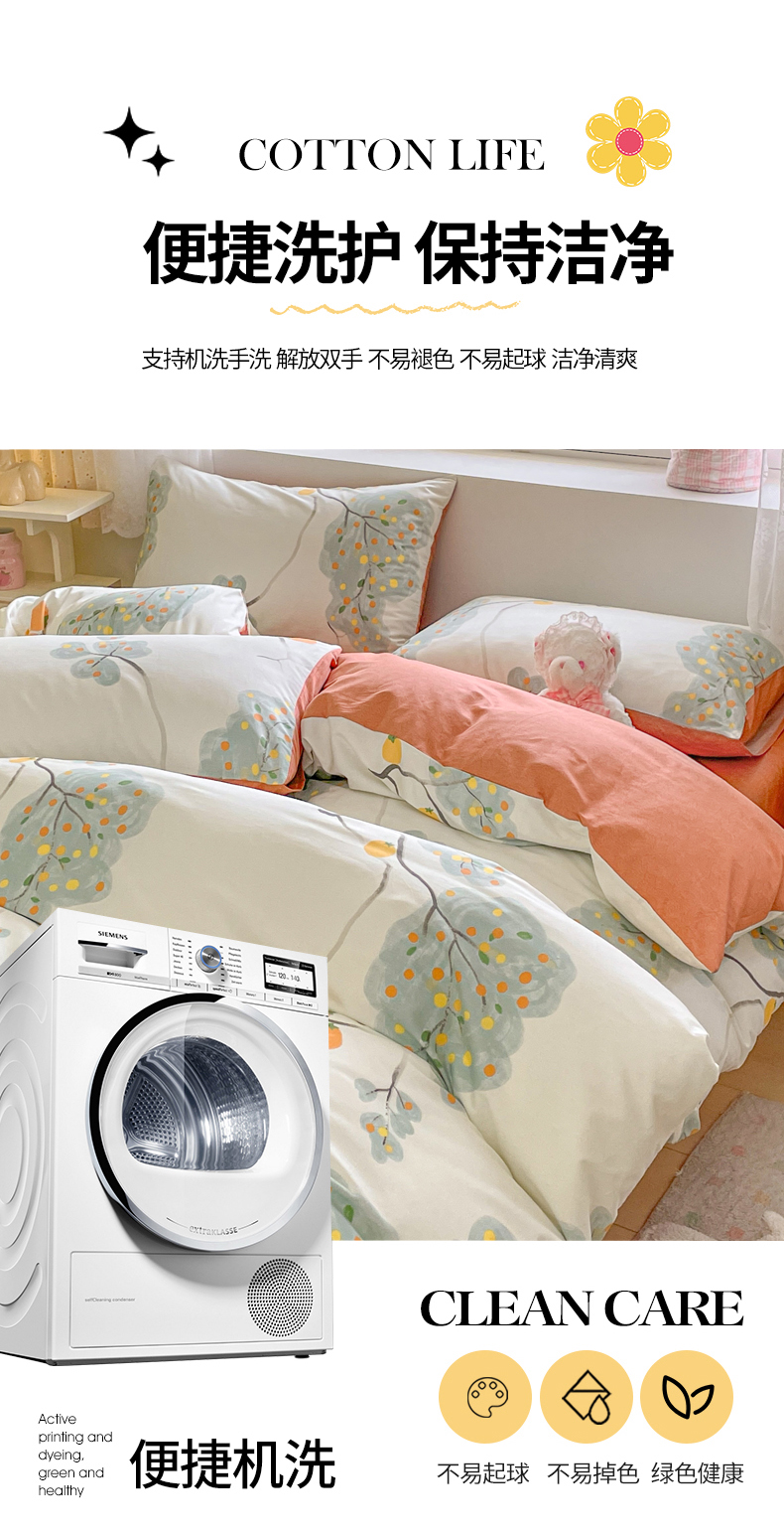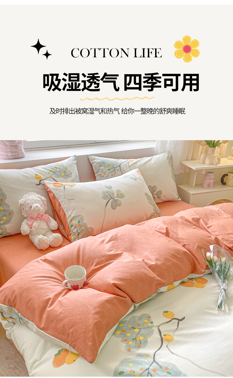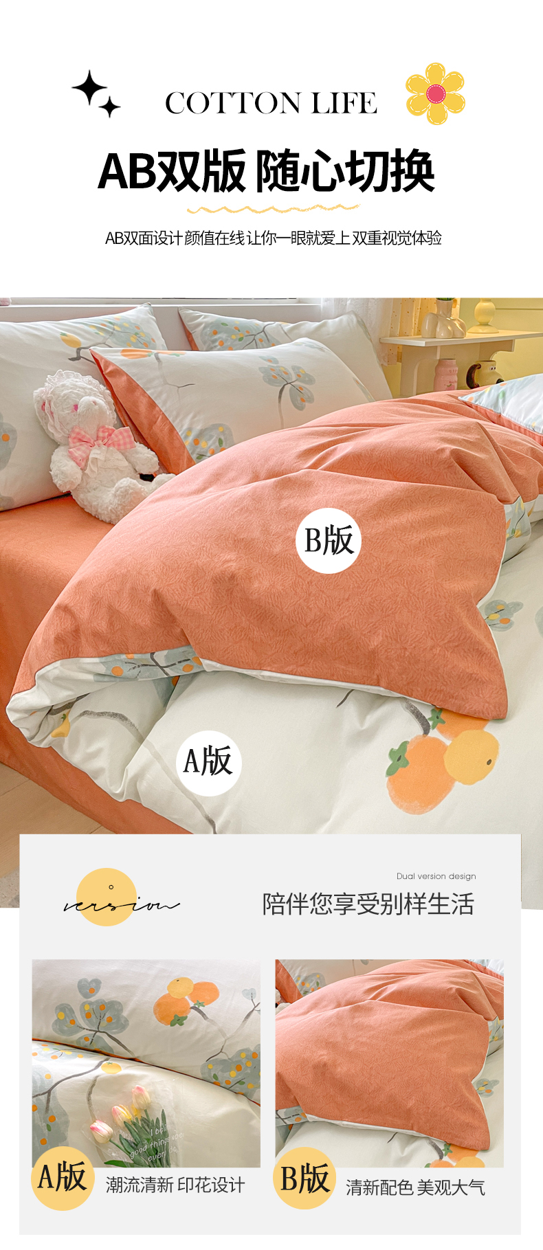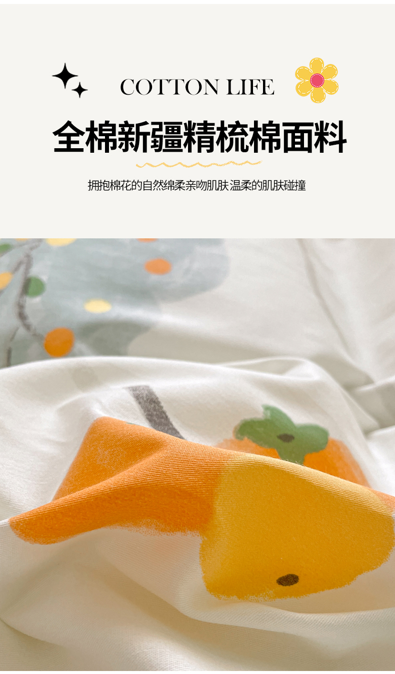 商品名称:洺兰家居 2025年新款13372全棉印花四件套纯棉小清新北欧风花卉床单床笠款套件 柿柿如意
