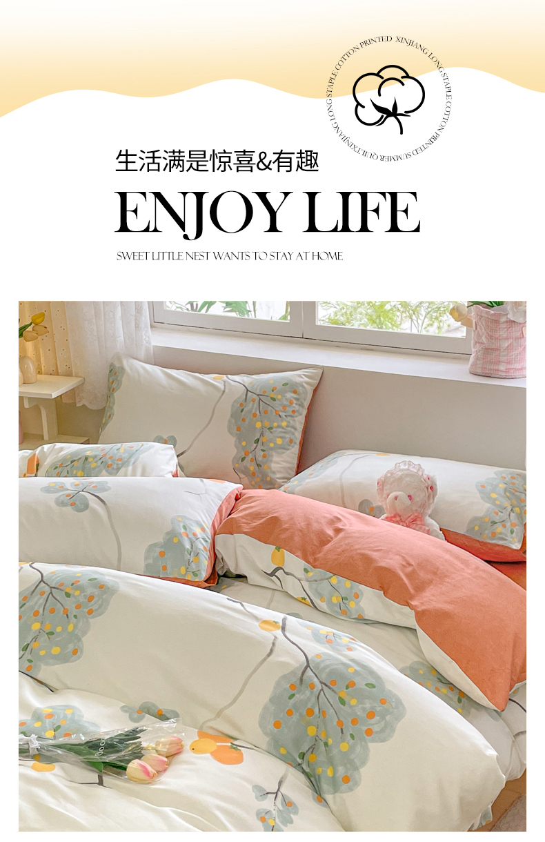 洺兰家居 2025年新款13372全棉印花四件套纯棉小清新北欧风花卉床单床笠款套件 柿柿如意