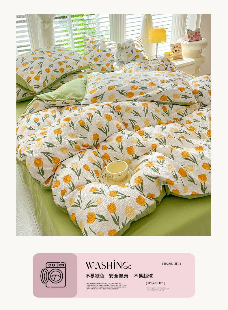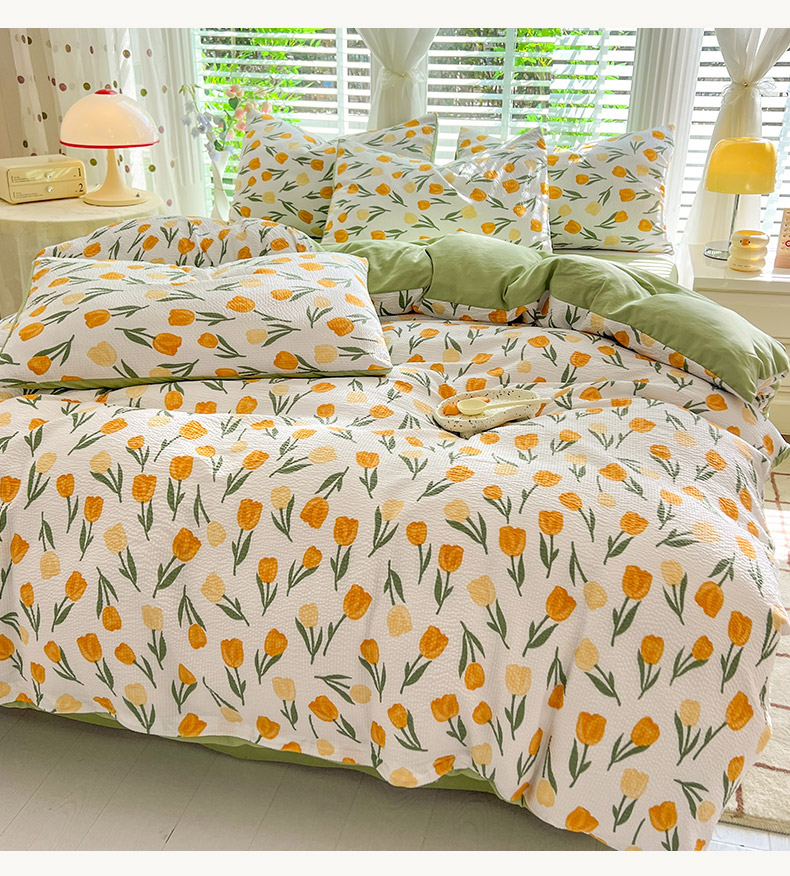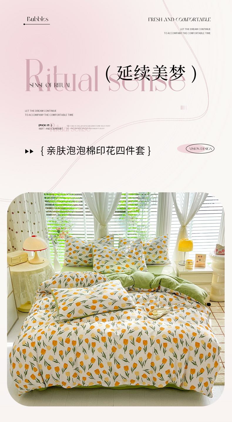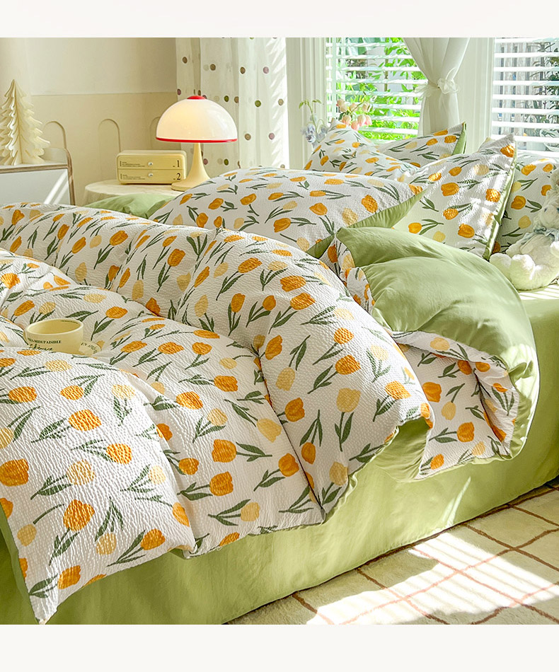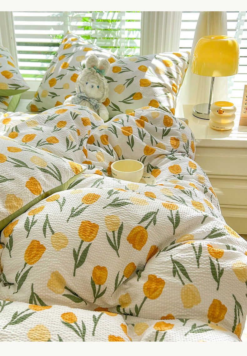 当前位置: 91家纺网 > 商品网购 > 床品套件 > 四件套 > 水洗棉四件套 > 妖妖家纺 2024新款有氧水洗泡泡棉印花四套泡芙棉四件套 郁金朵朵