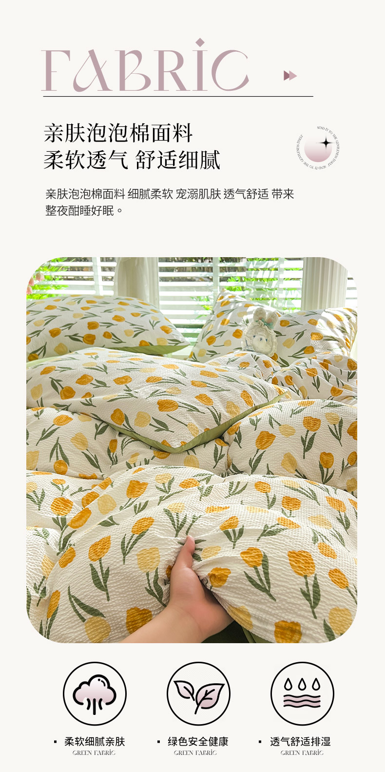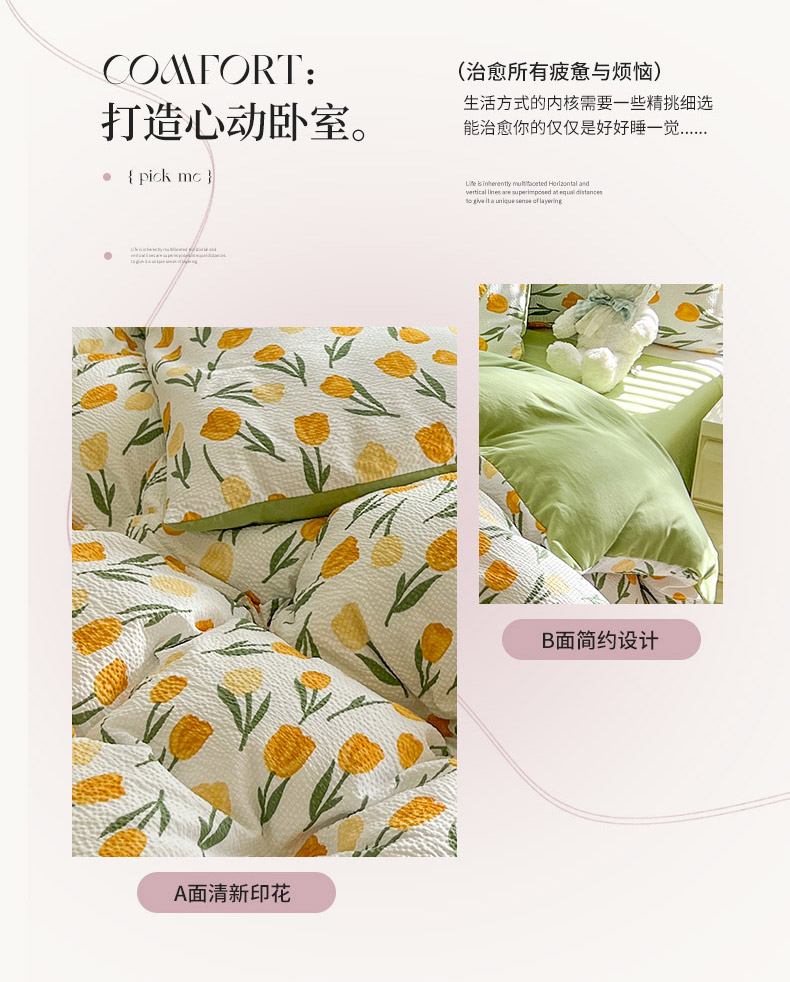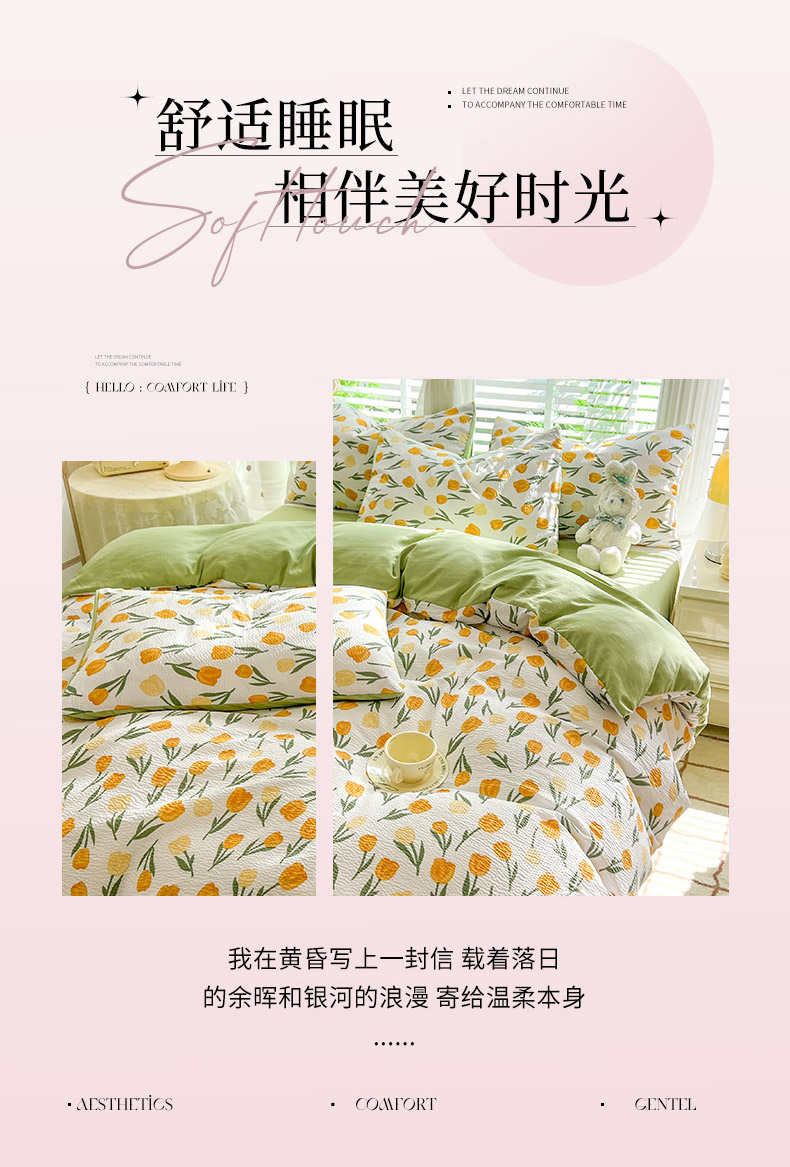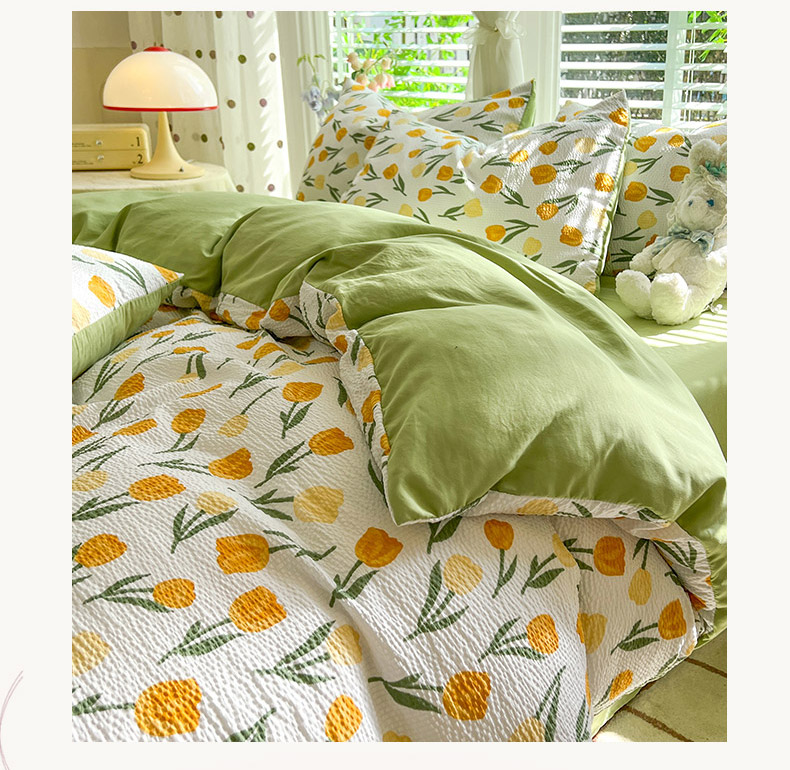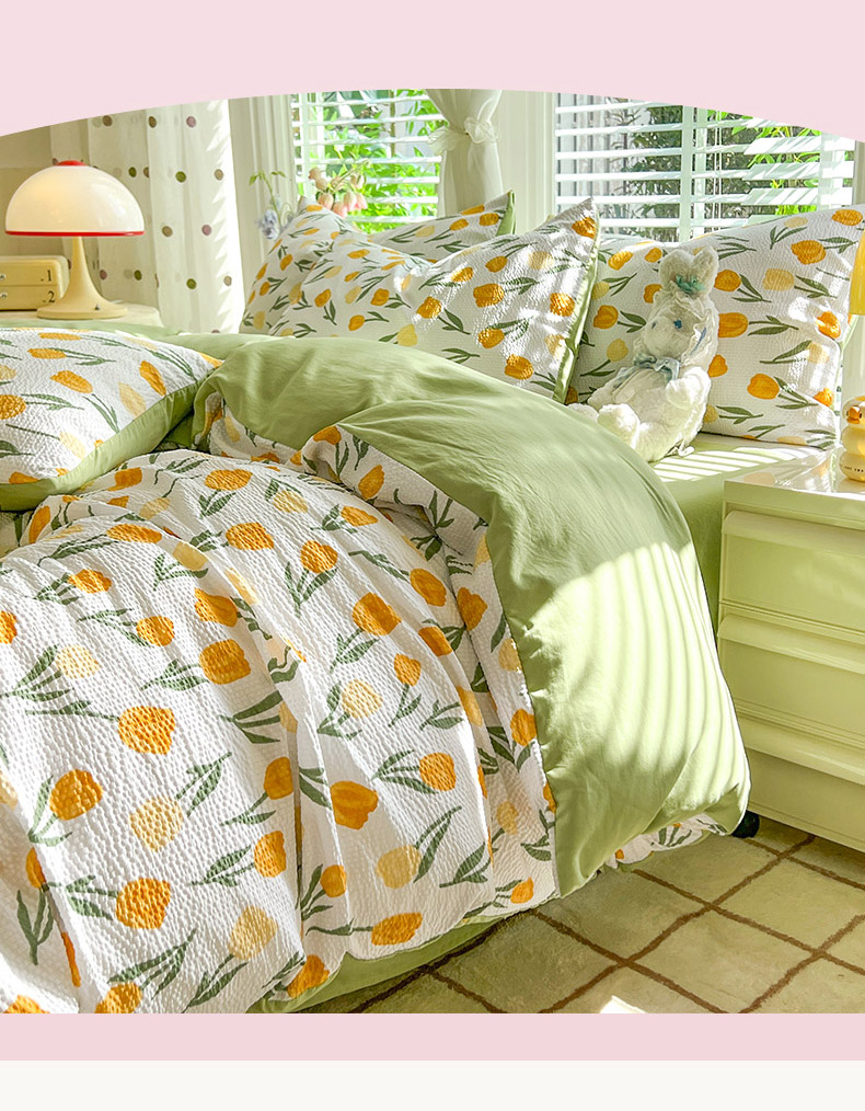 当前位置: 91家纺网 > 商品网购 > 床品套件 > 四件套 > 水洗棉四件套 > 妖妖家纺 2024新款有氧水洗泡泡棉印花四套泡芙棉四件套 郁金朵朵