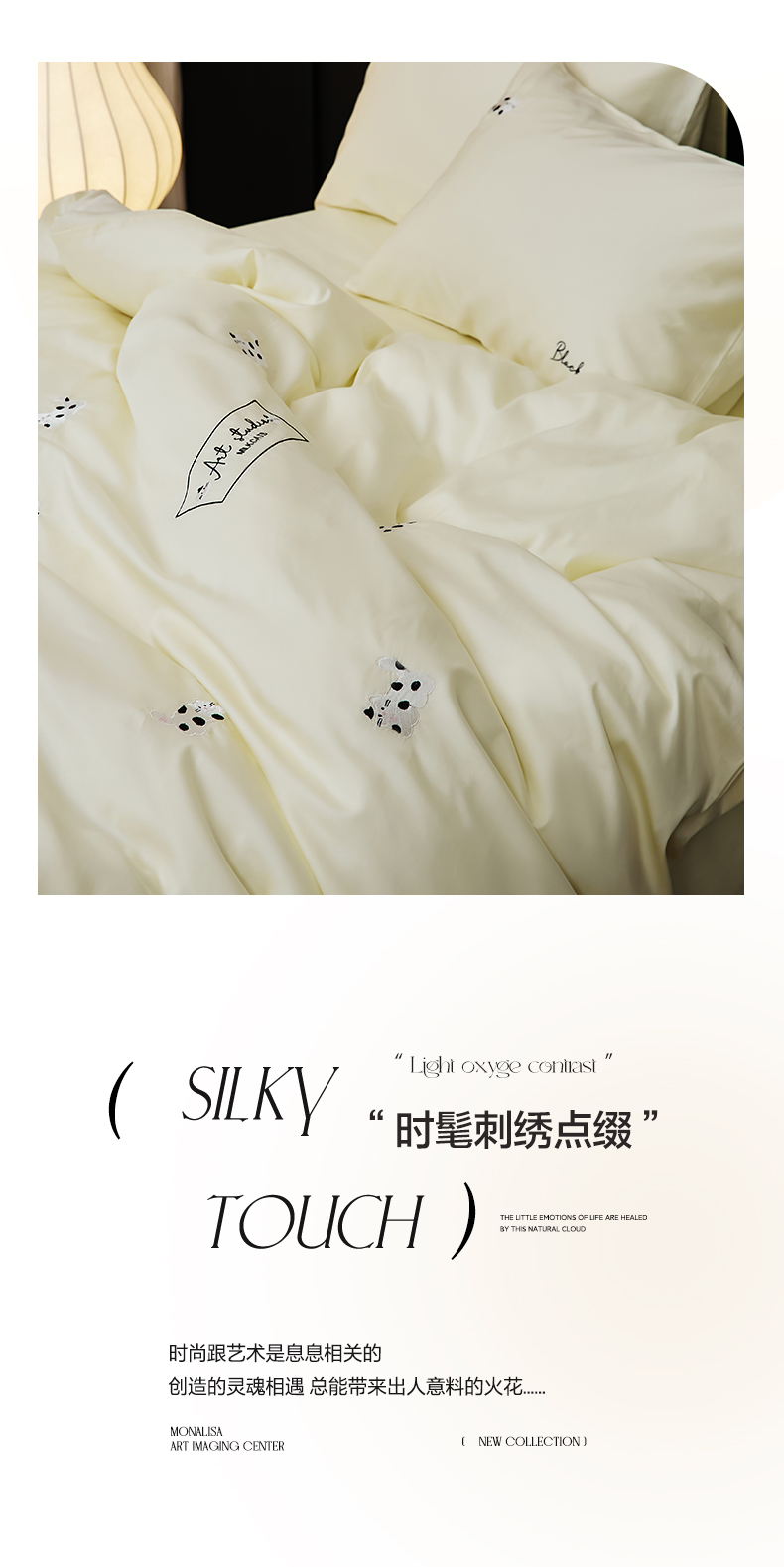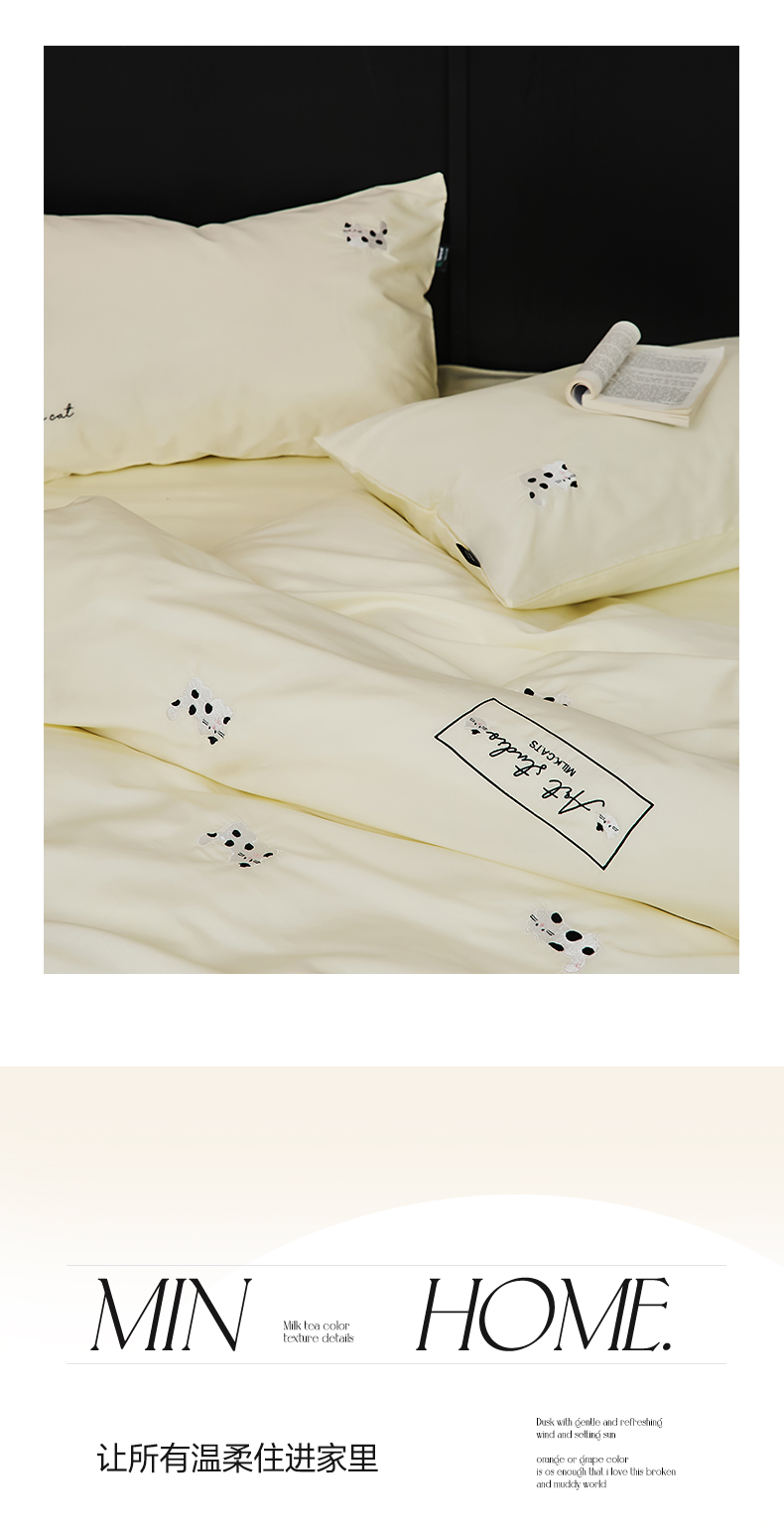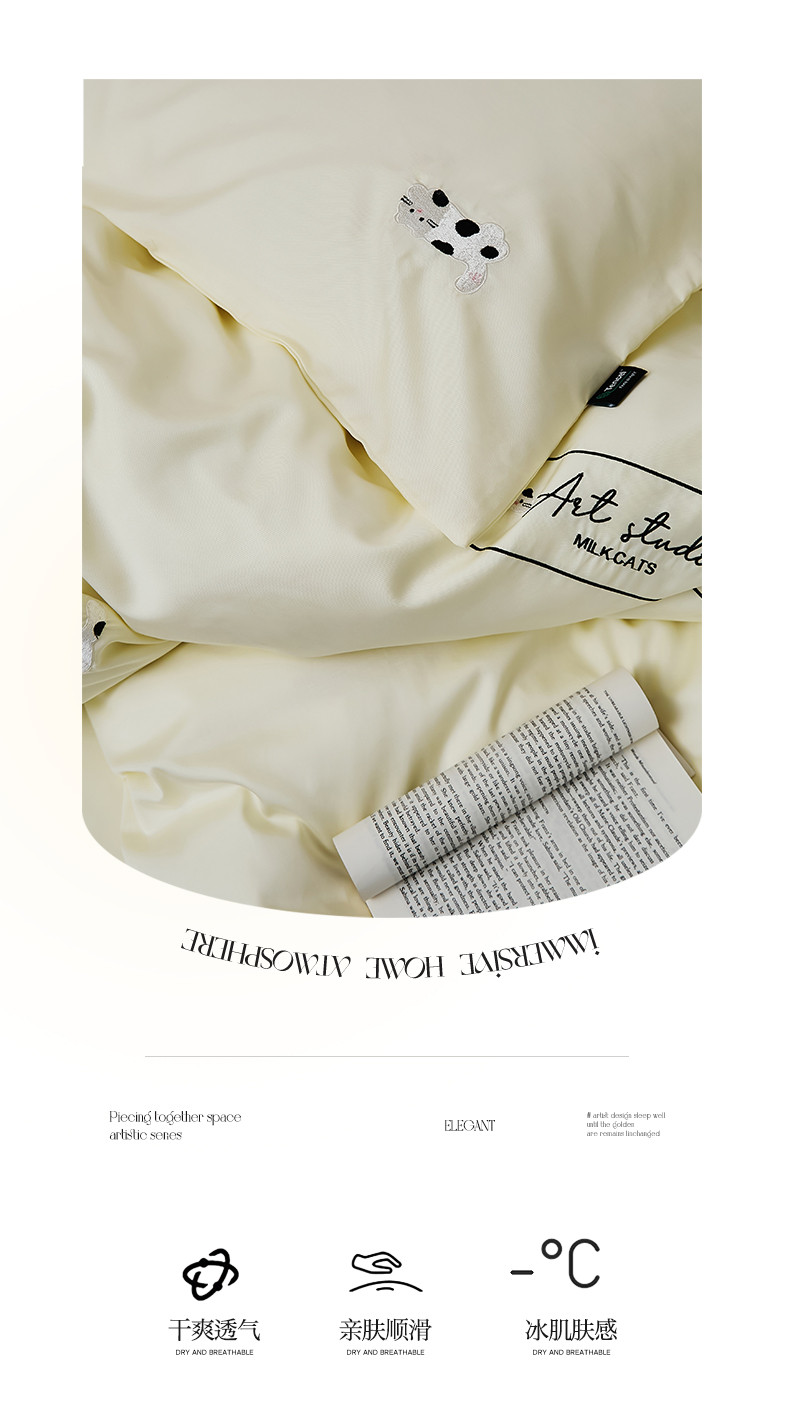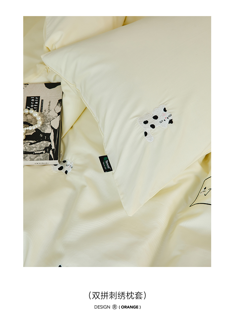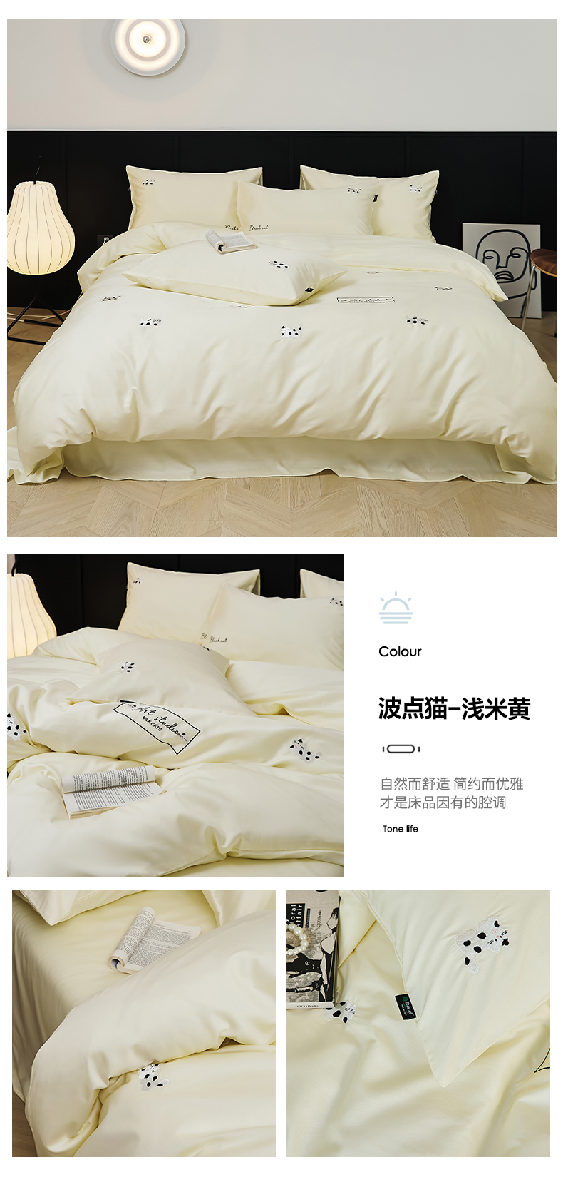 荣轩家居 2024新款天丝棉刺绣四件套 波点猫-浅米黄