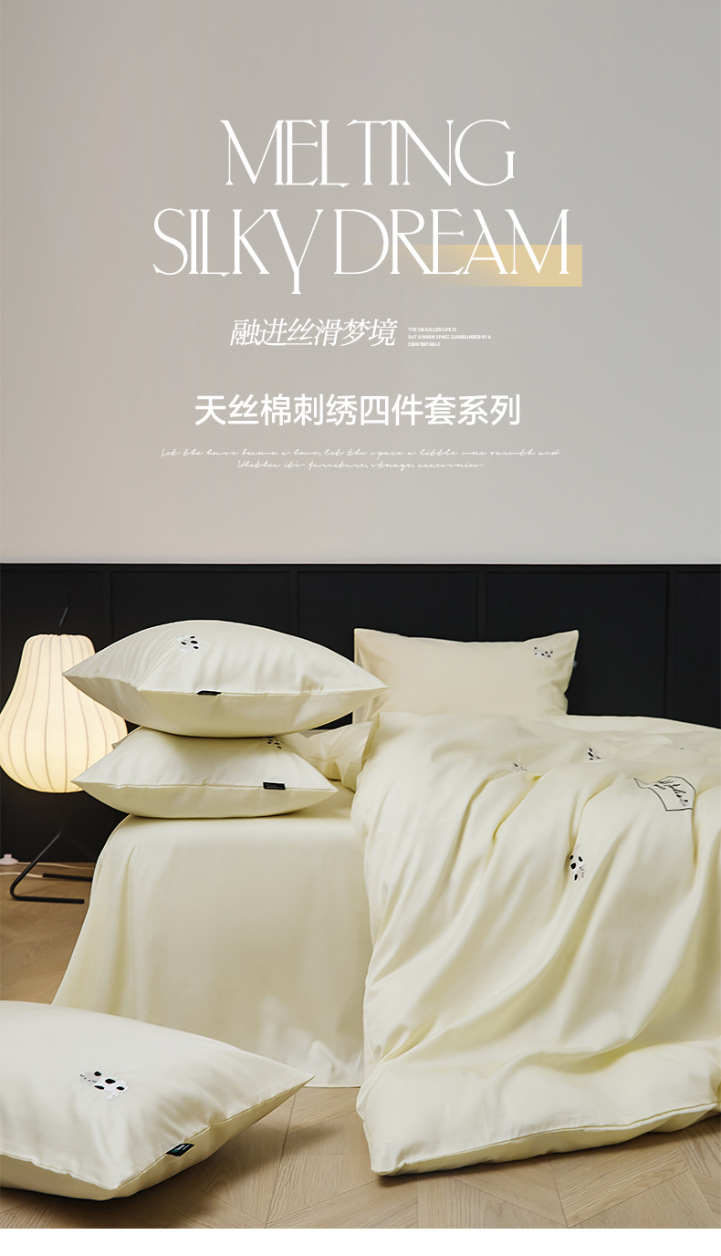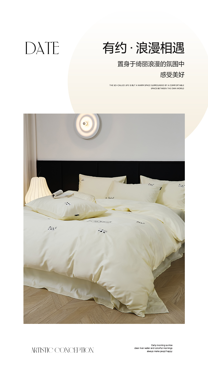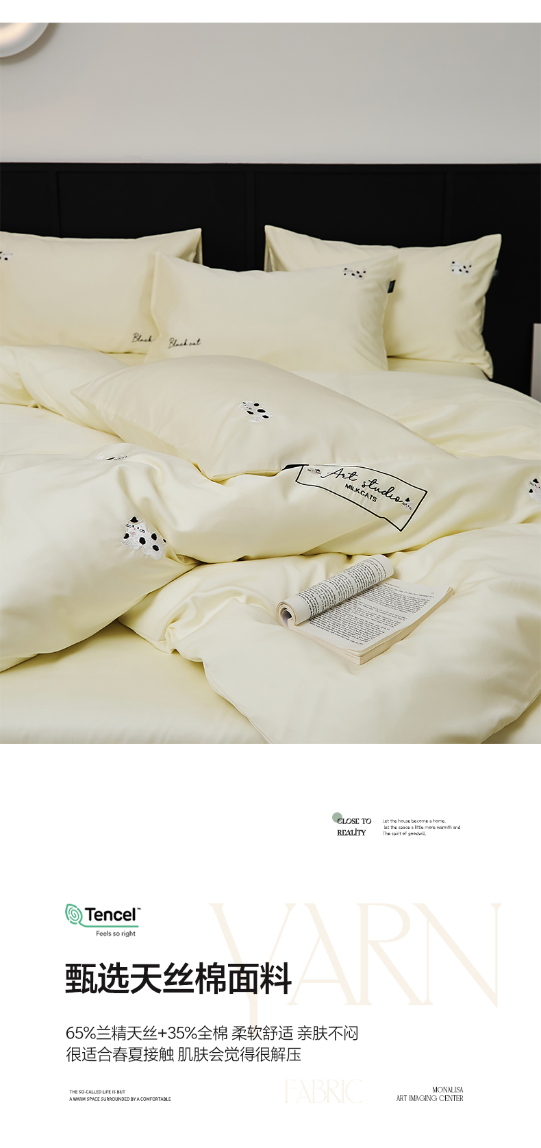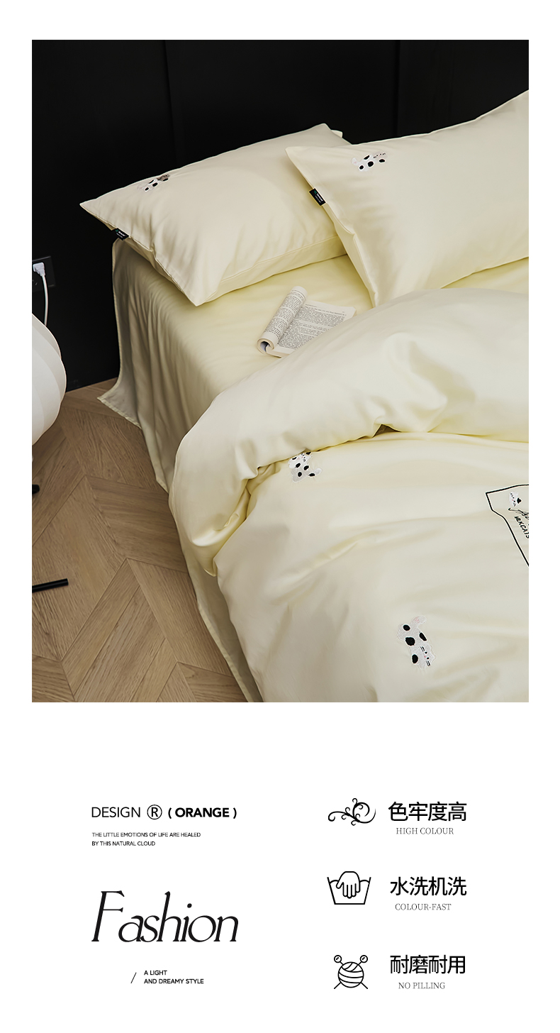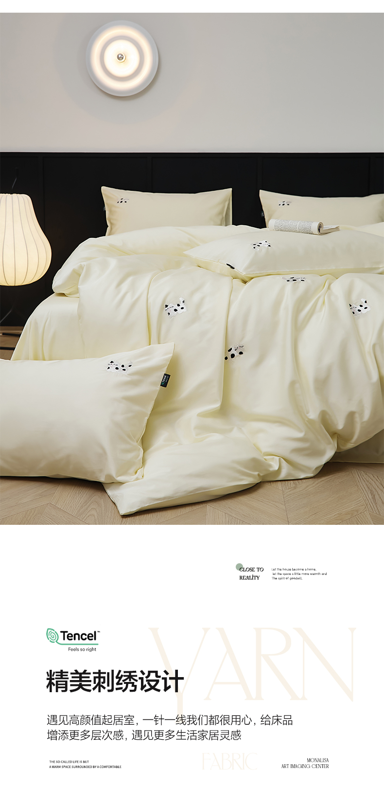 荣轩家居 2024新款天丝棉刺绣四件套 波点猫-浅米黄