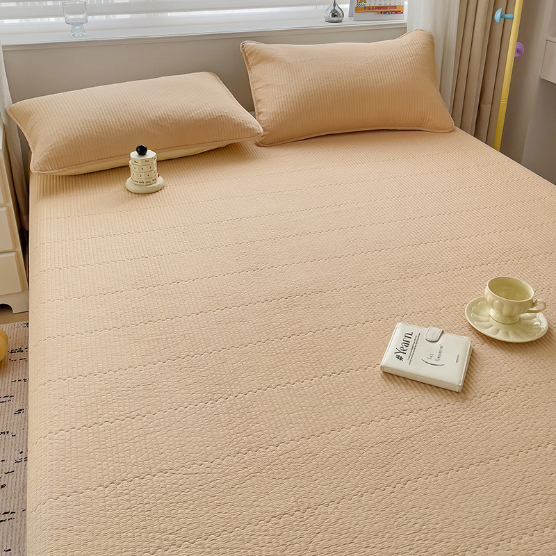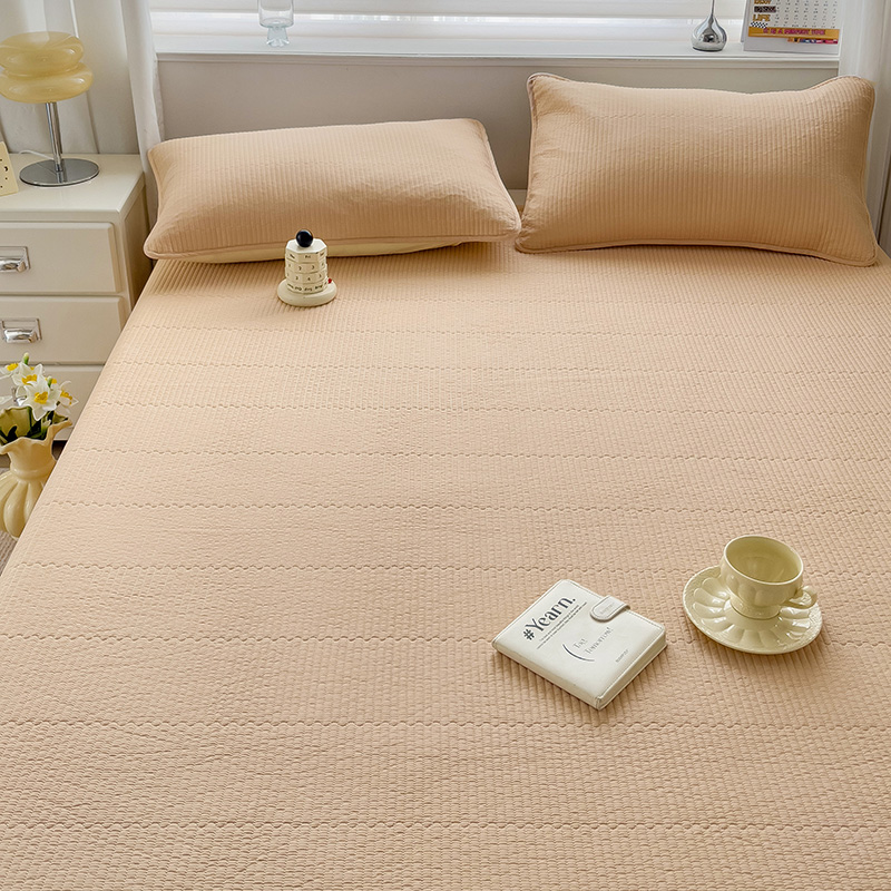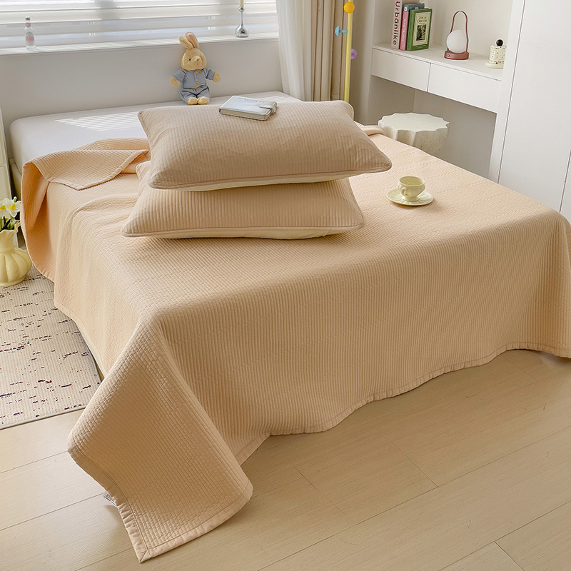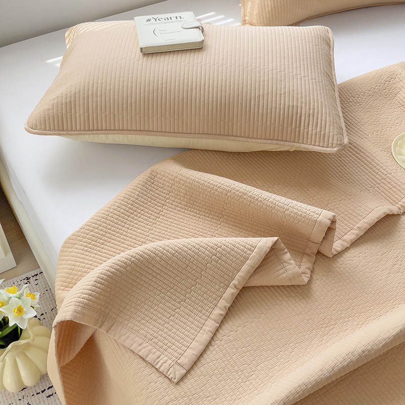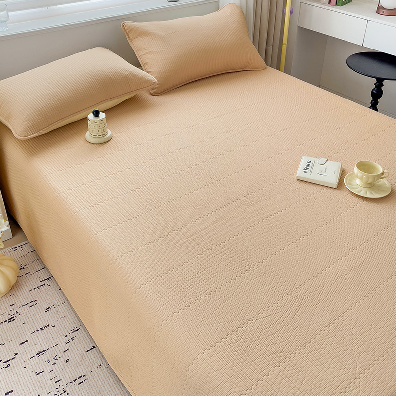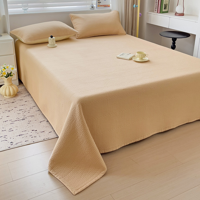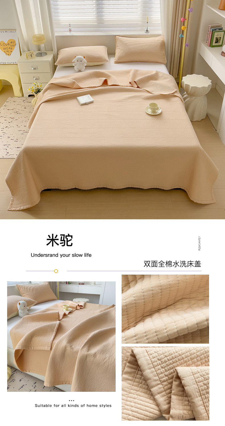 羽爱家纺 2024新款双面纯色全棉水洗床盖 米驼