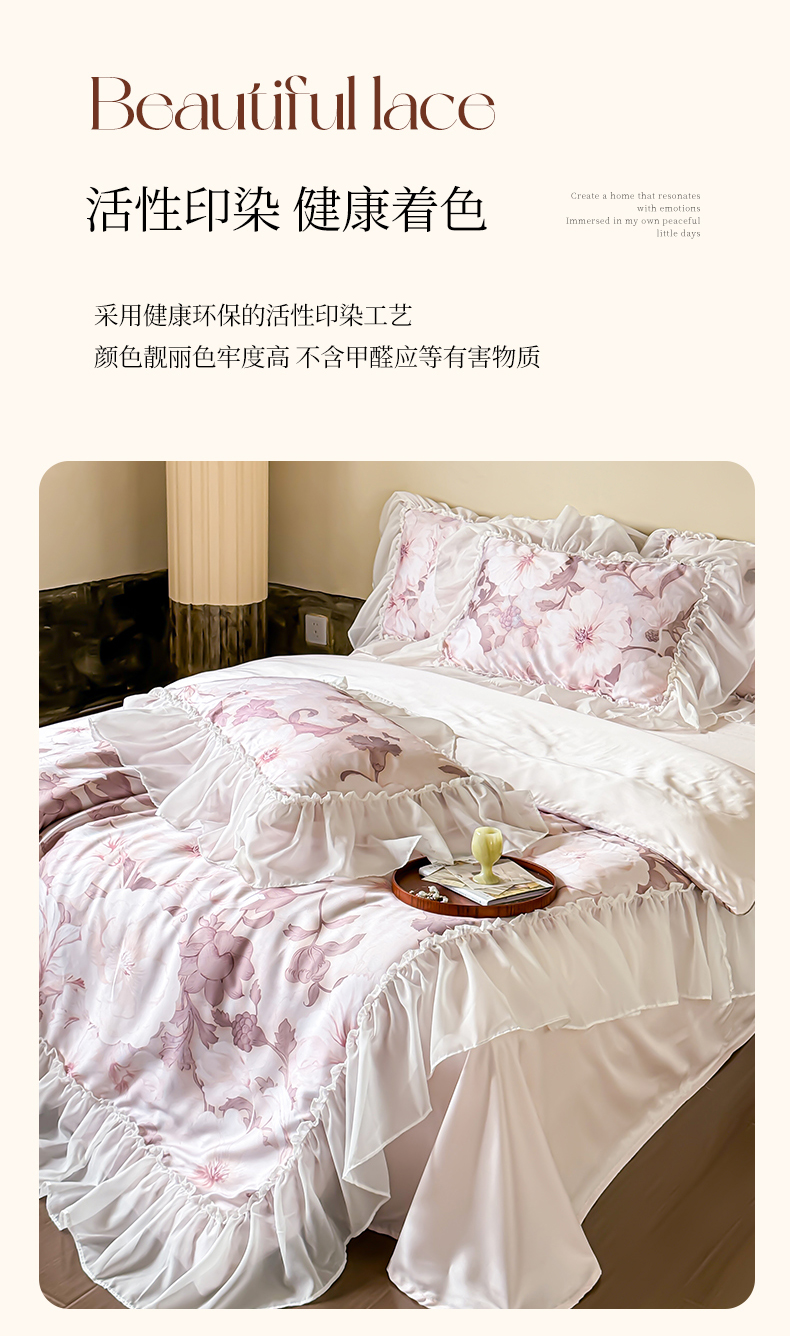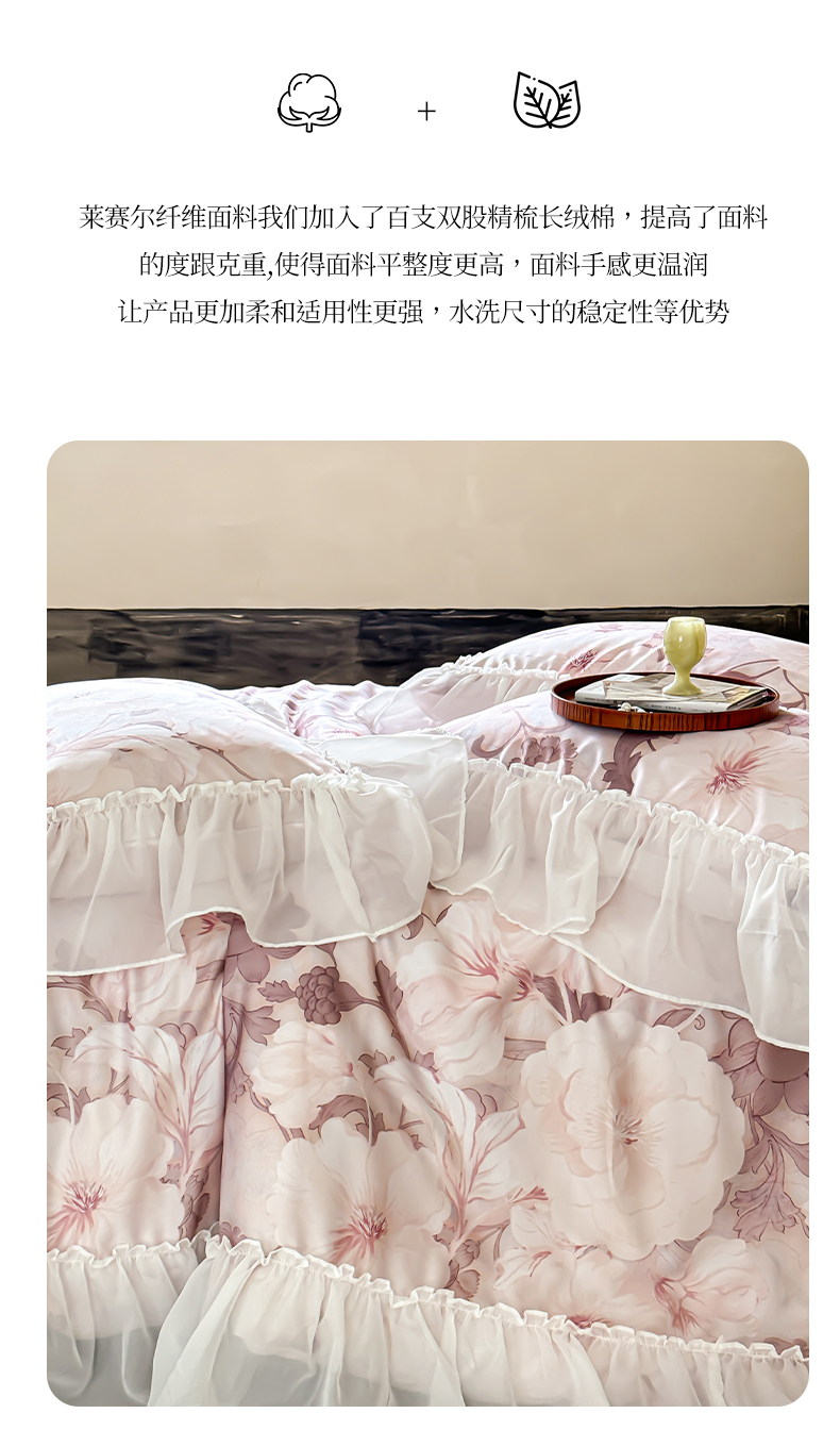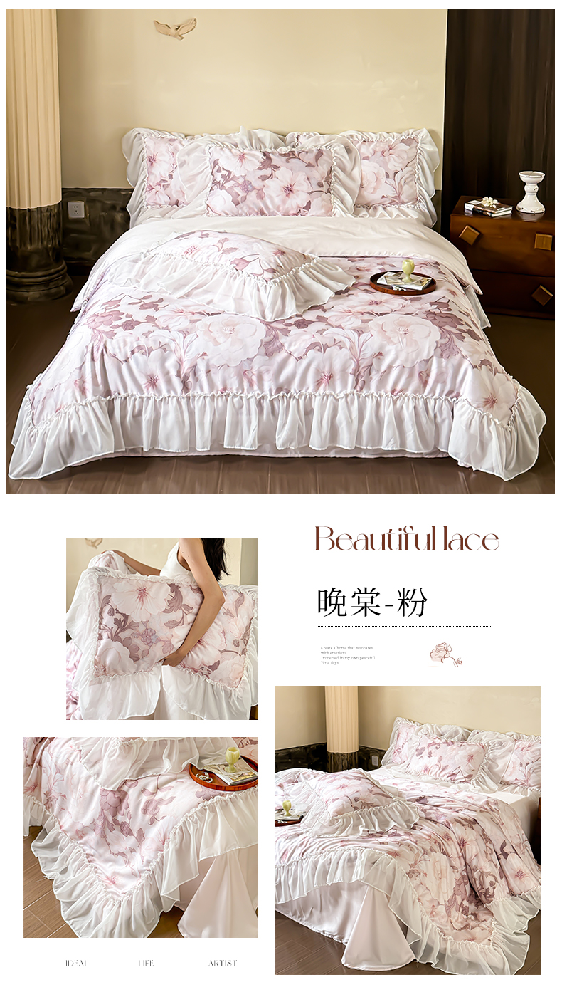 商品名称:宜代光年 2024新款天丝棉拼角数码印花四件套 晚棠 粉