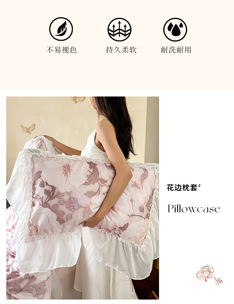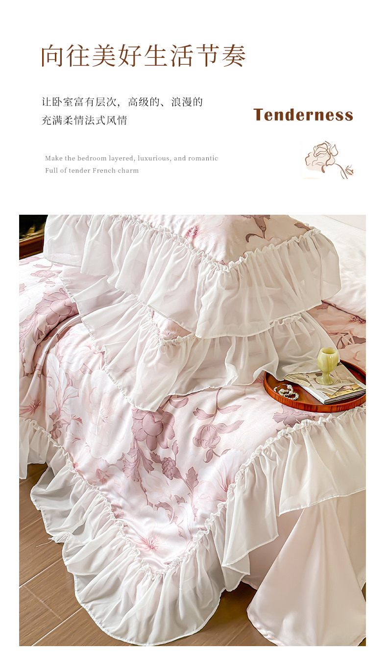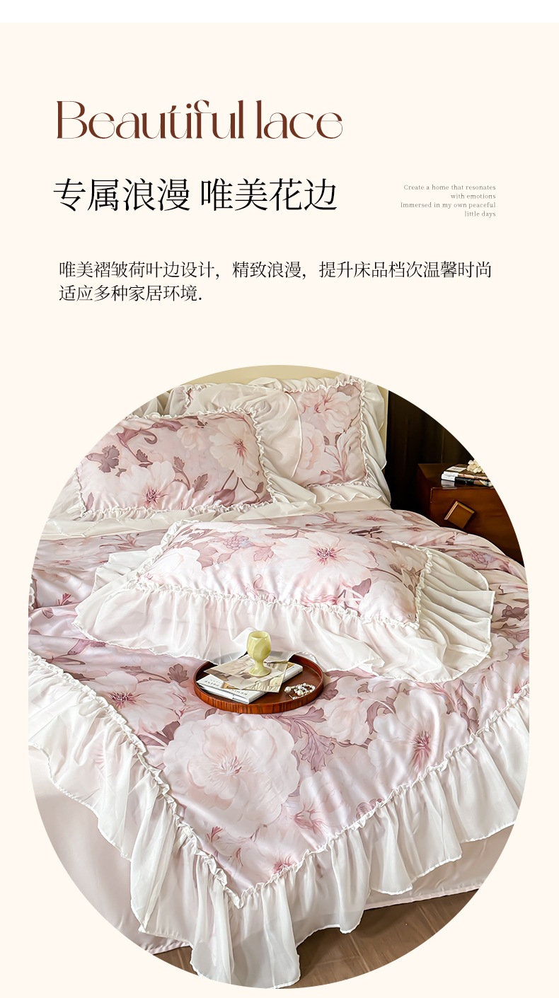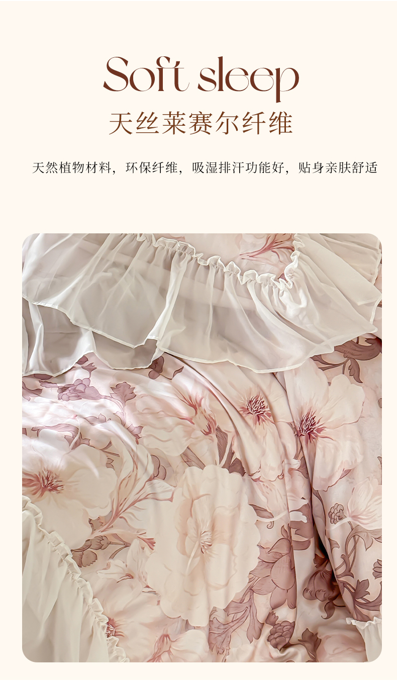 商品名称:宜代光年 2024新款天丝棉拼角数码印花四件套 晚棠 粉