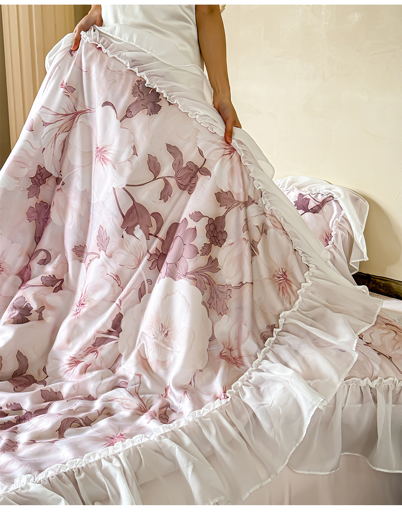 (总)宜代光年 2025新款小米貂法式中古风印花四件套,墨染花簇,蝶语,粉雾渐染,灰韵层叠,墨韵花影,秋华,心上玫瑰,棕影绘花