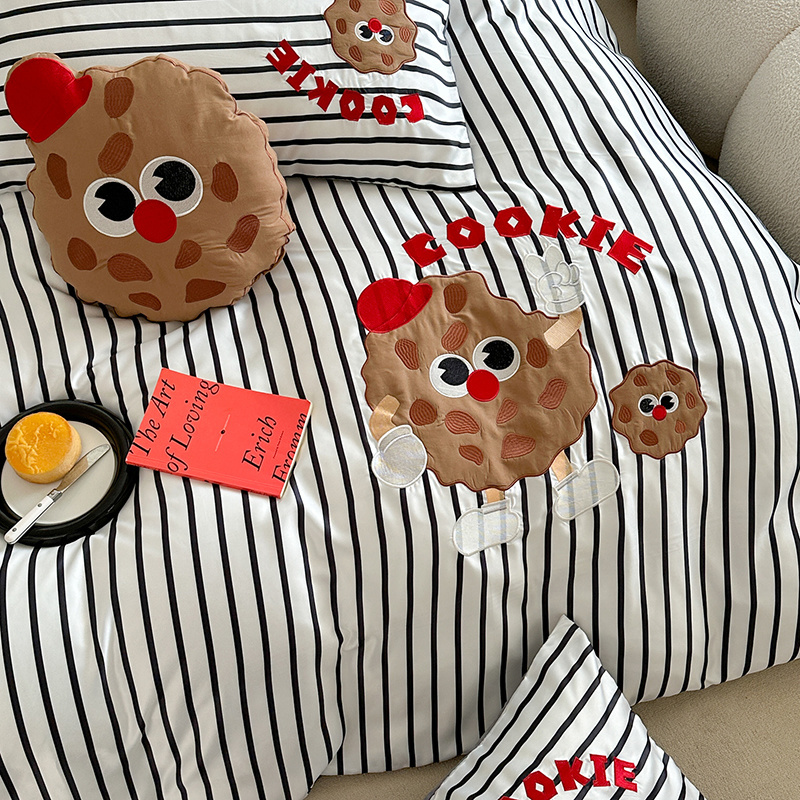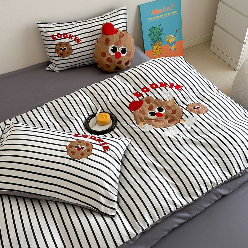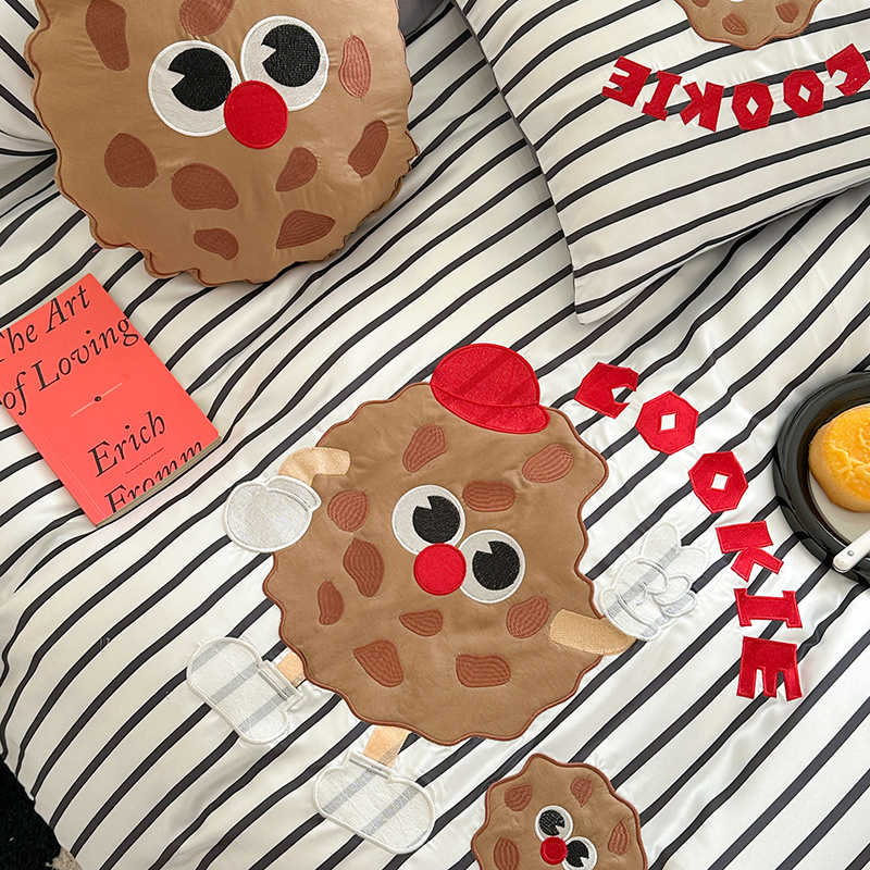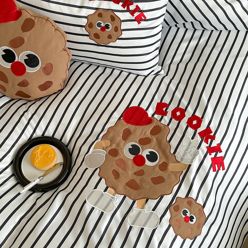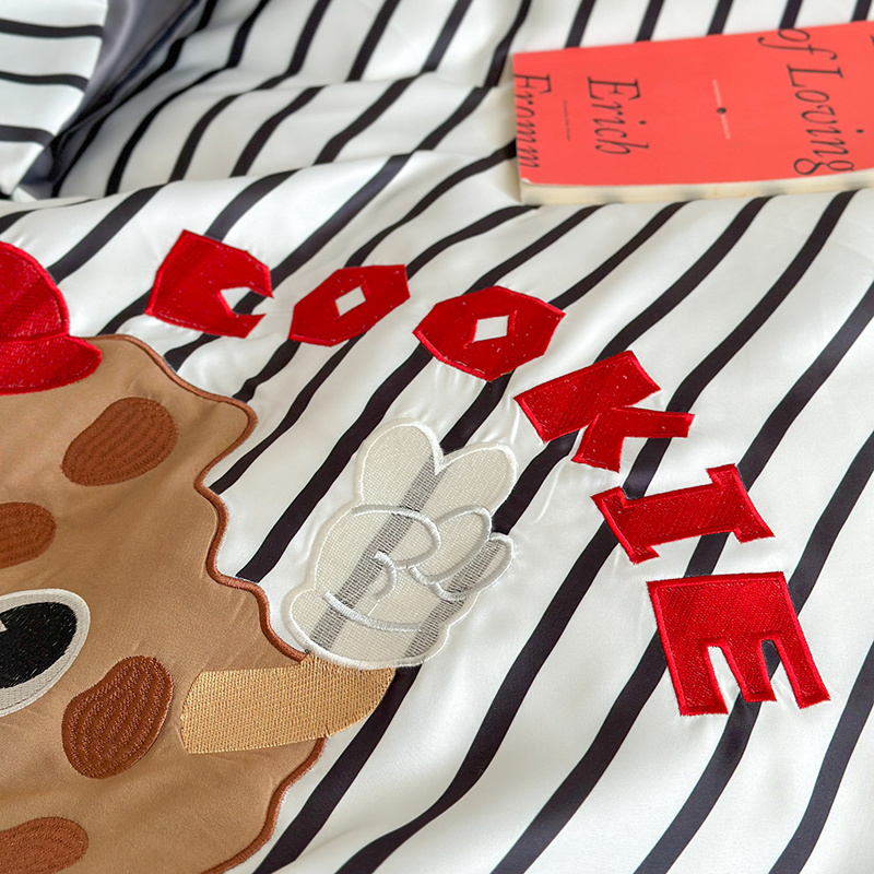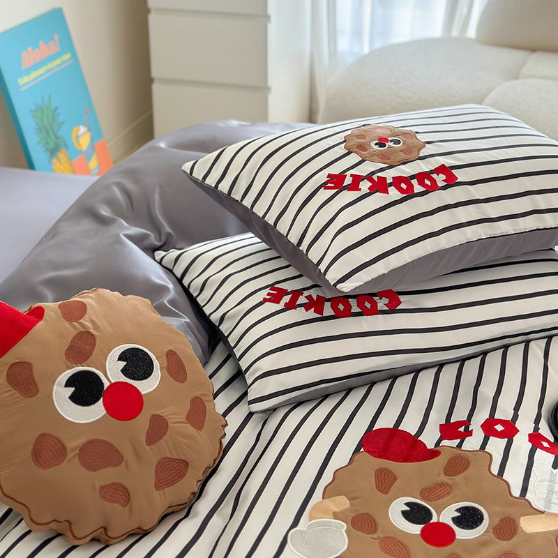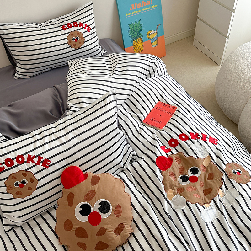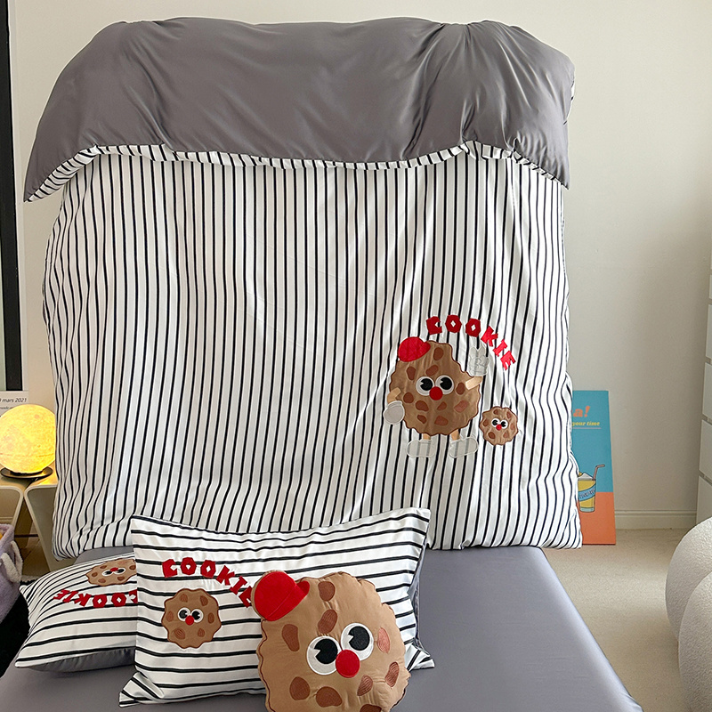 商品名称:优悦2024新款冰丝卡通贴布绣四件套 曲奇饼干-灰