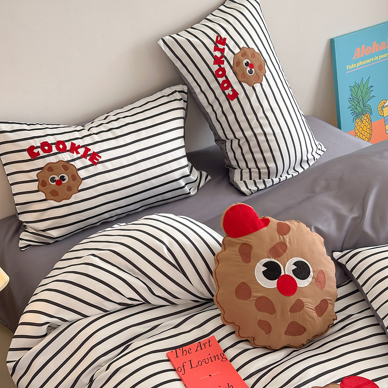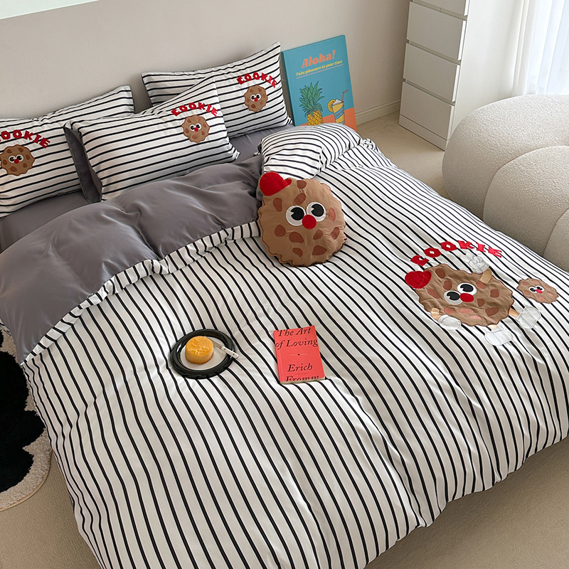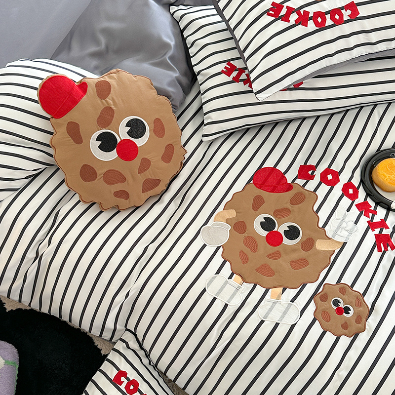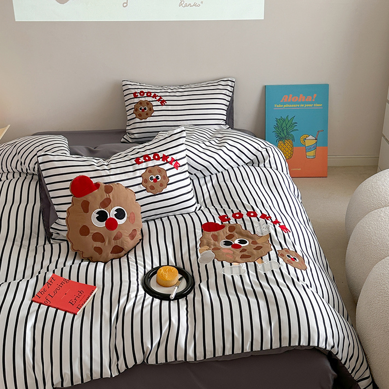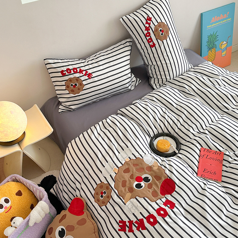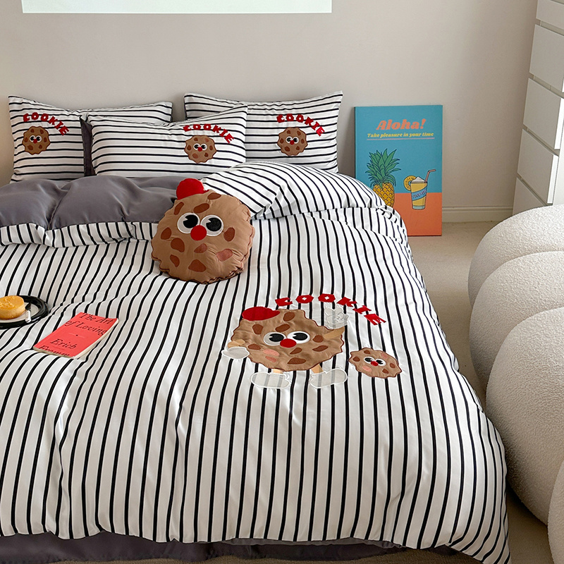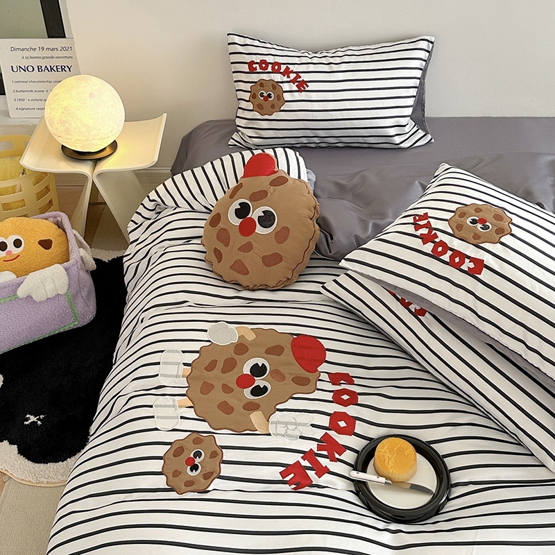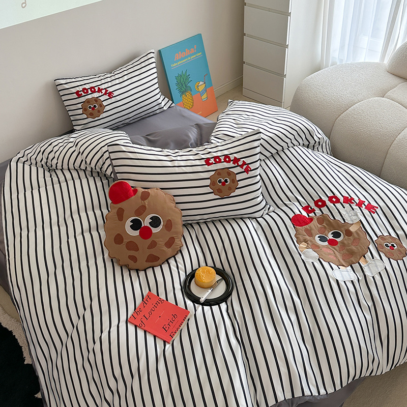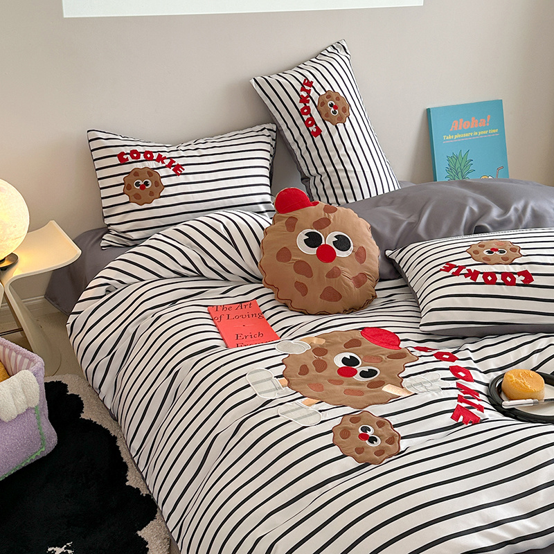商品名称:优悦2024新款冰丝卡通贴布绣四件套 曲奇饼干-灰