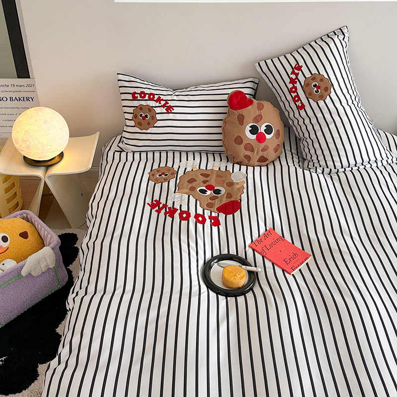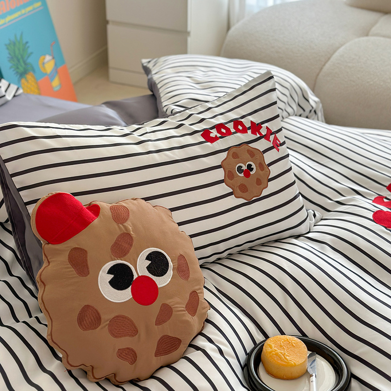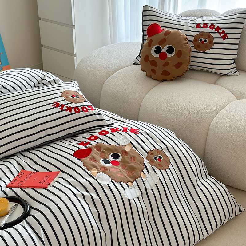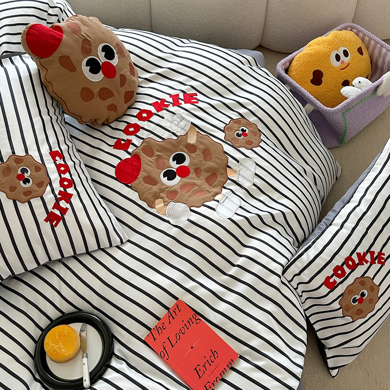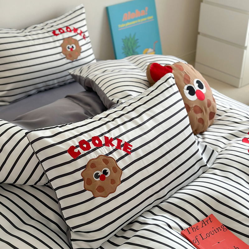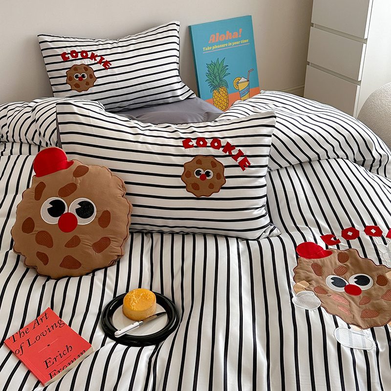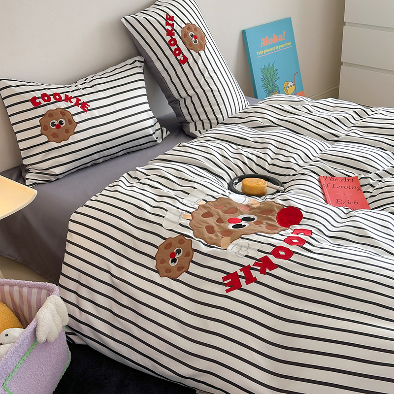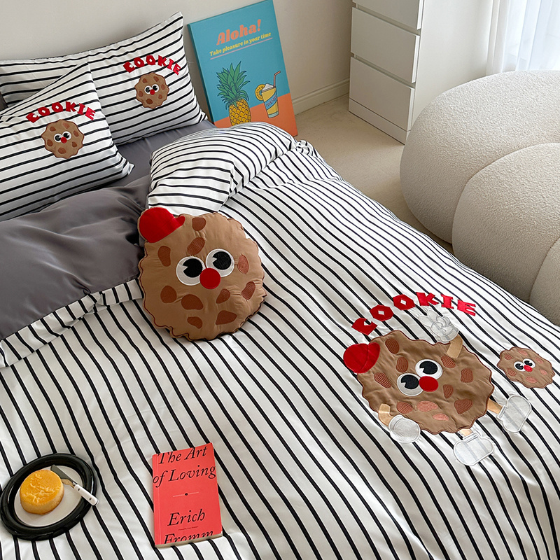 商品名称:优悦2024新款冰丝卡通贴布绣四件套 曲奇饼干-灰