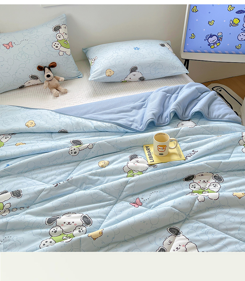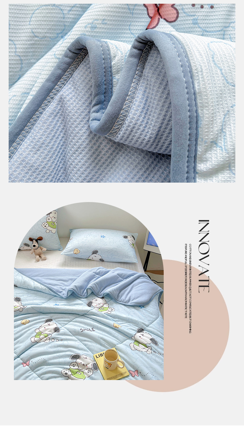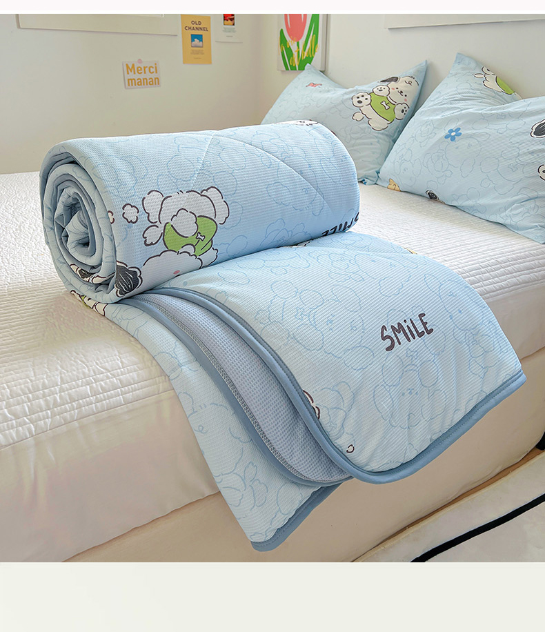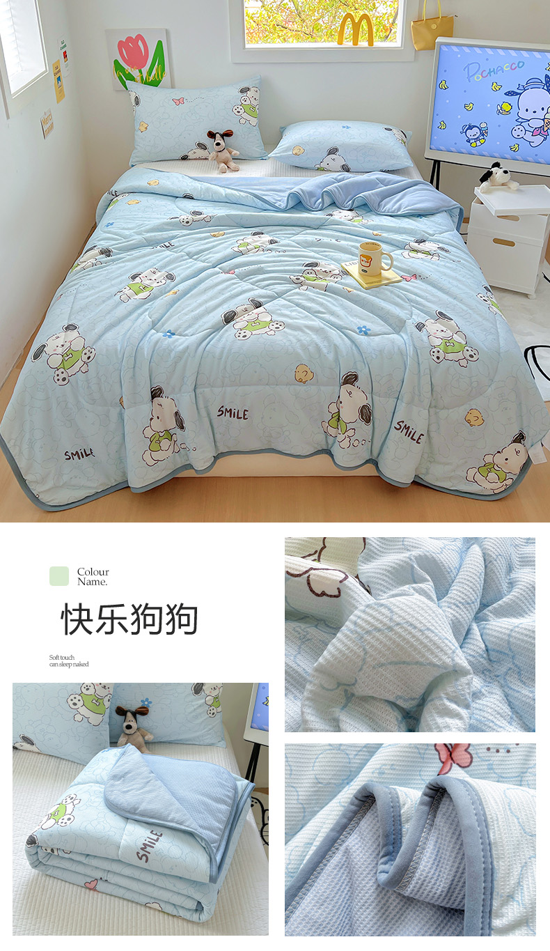 商品名称:柒月2024新款华夫格小清新卡通印花夏被 快乐狗狗-