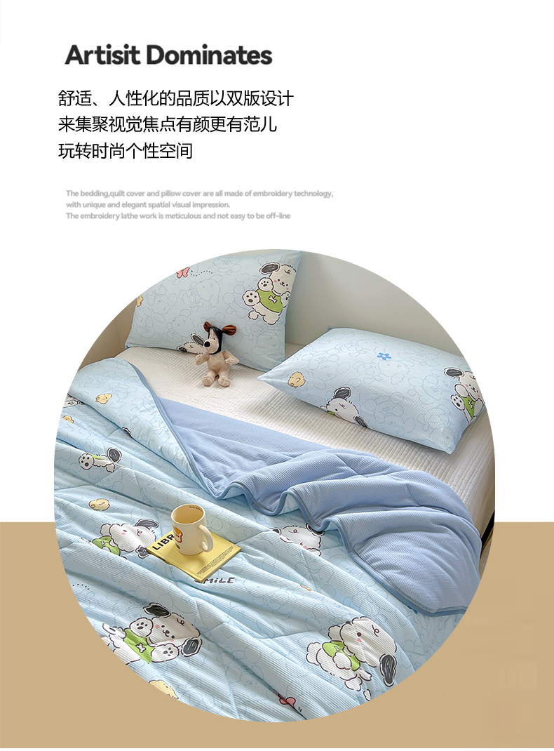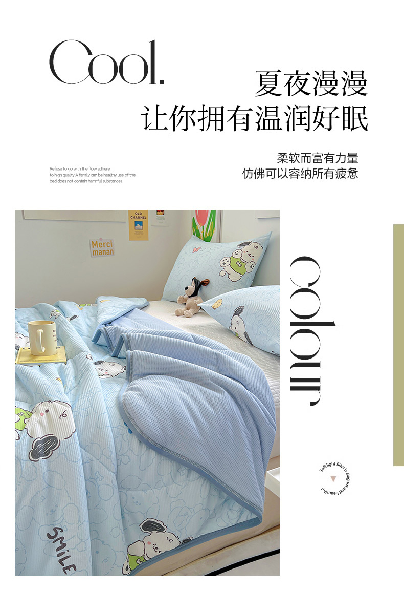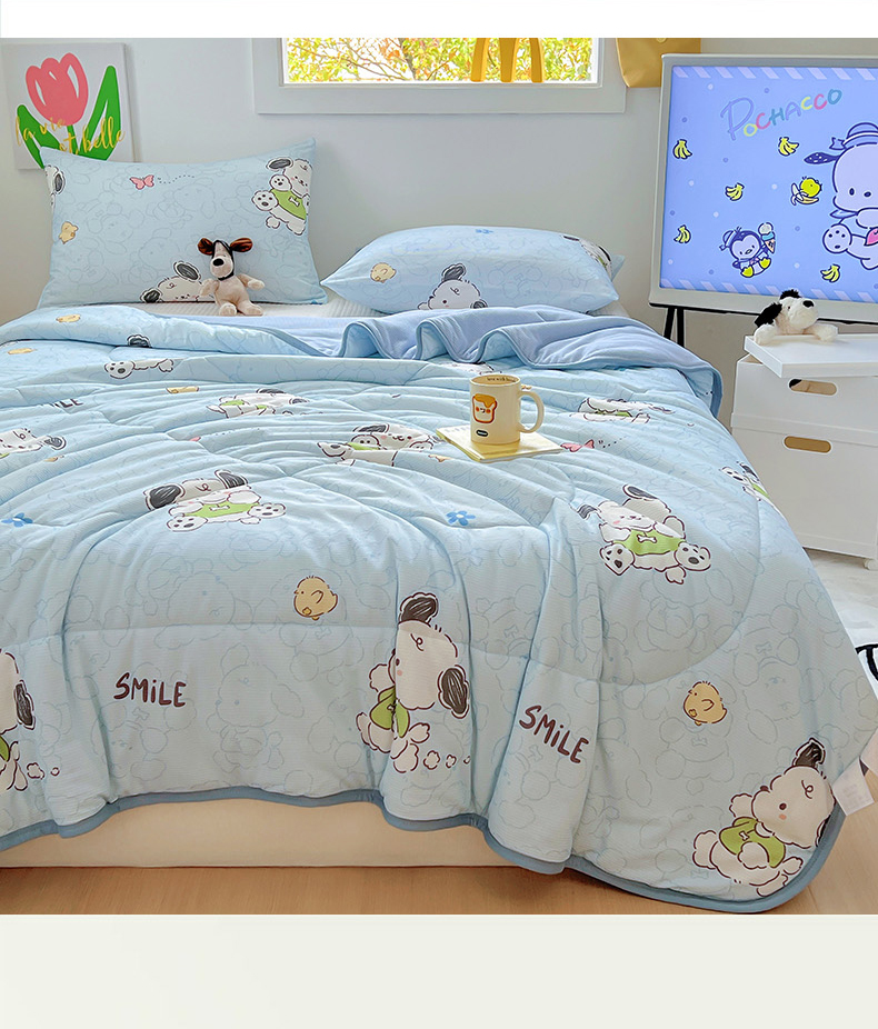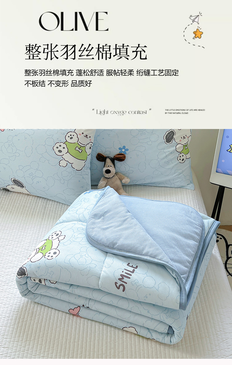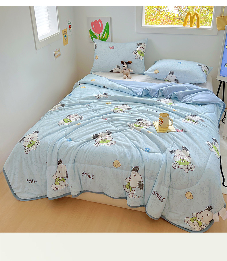 商品名称:柒月2024新款华夫格小清新卡通印花夏被 快乐狗狗-