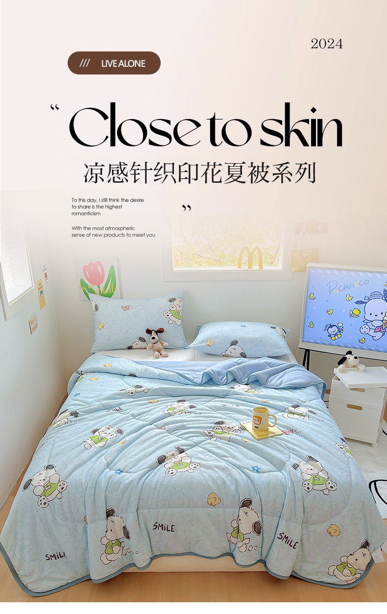 (总)柒月家居 2025新款萌宠系列凉席夏被夏凉被空调被套件,西高地,小企鹅,KT蛋糕,腊肠狗,小粉兔,小熊猫,小熊熊,组合图仅做展示