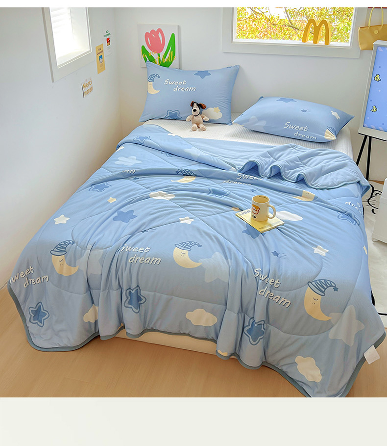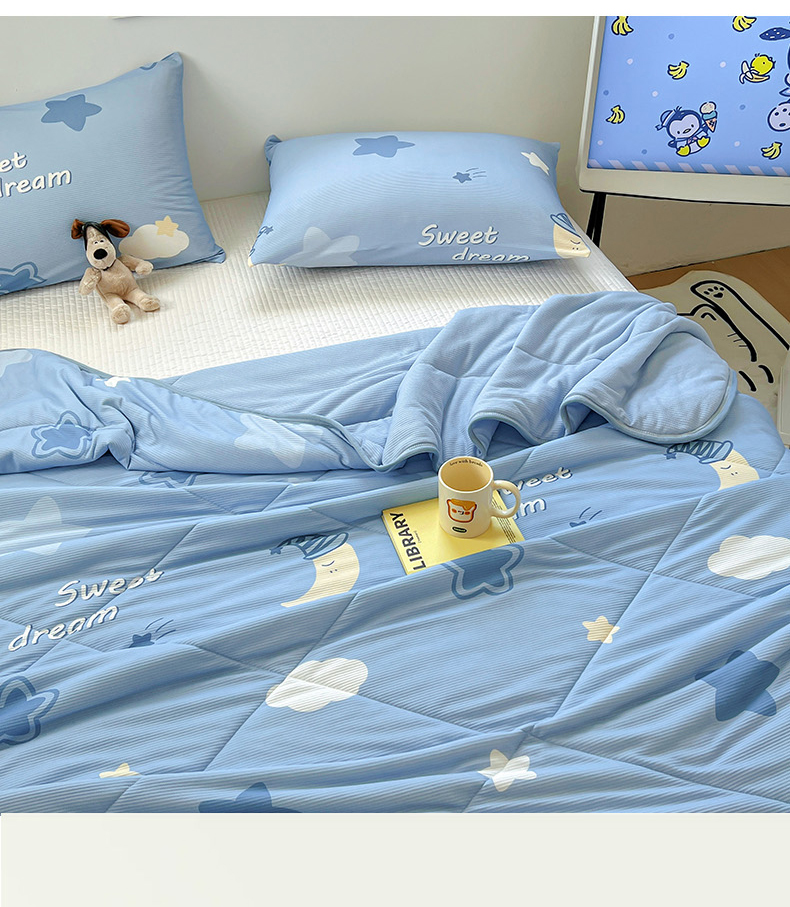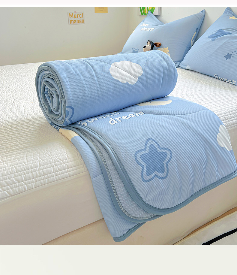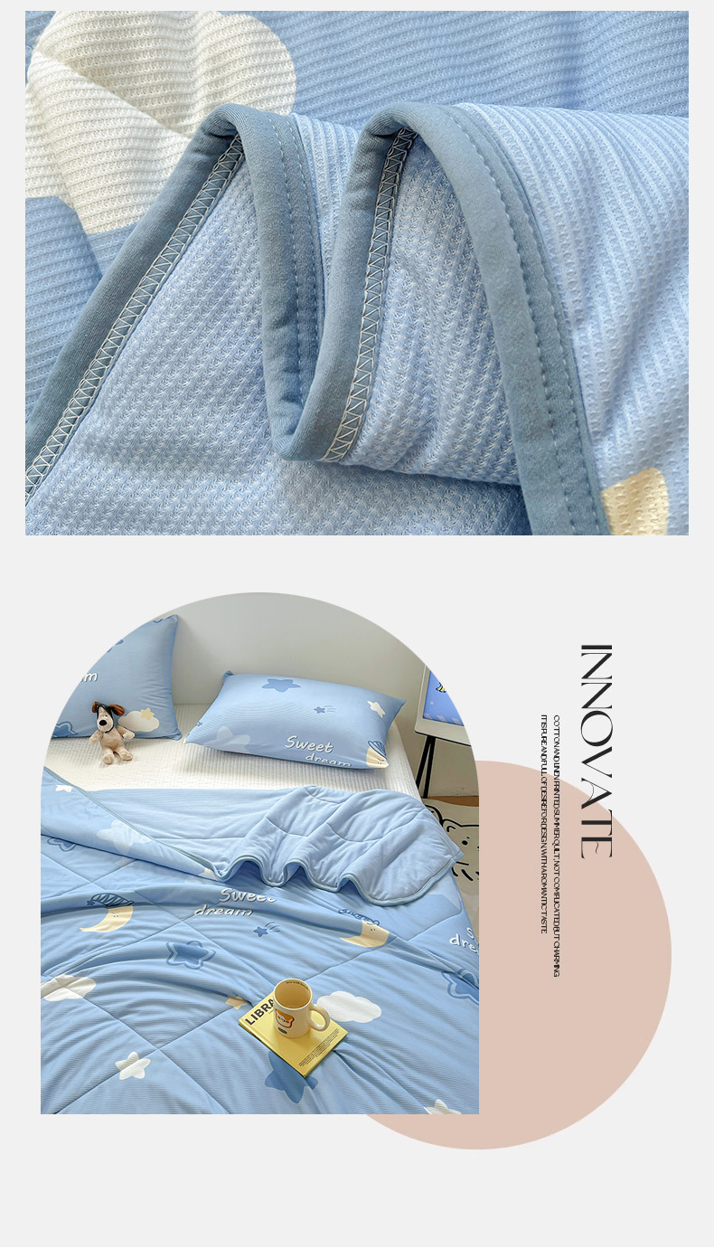 柒月2024新款华夫格小清新卡通印花夏被 月亮宝宝-