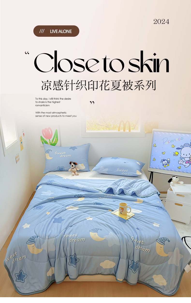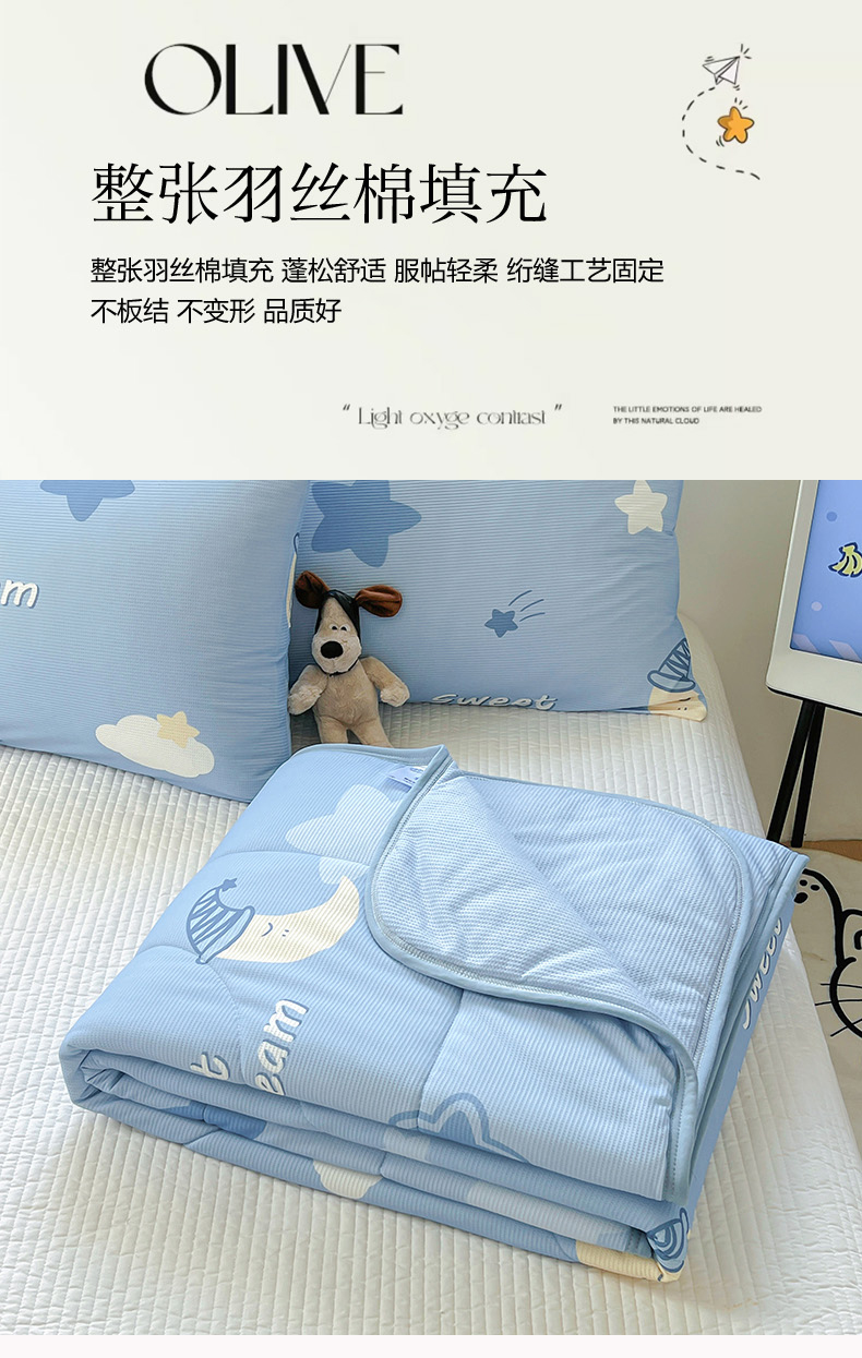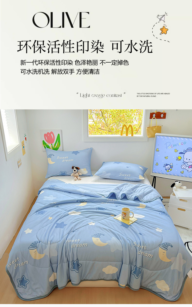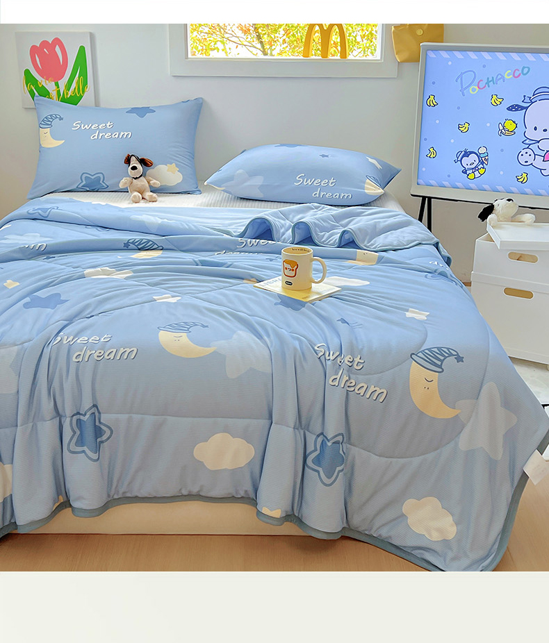 柒月2024新款华夫格小清新卡通印花夏被 月亮宝宝-