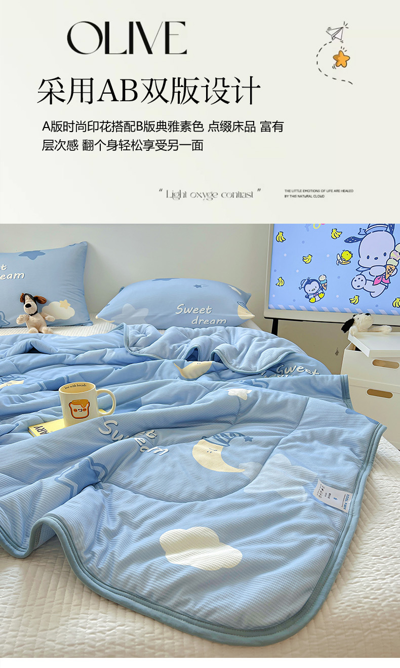 商品名称:柒月2024新款华夫格小清新卡通印花夏被 月亮宝宝-
