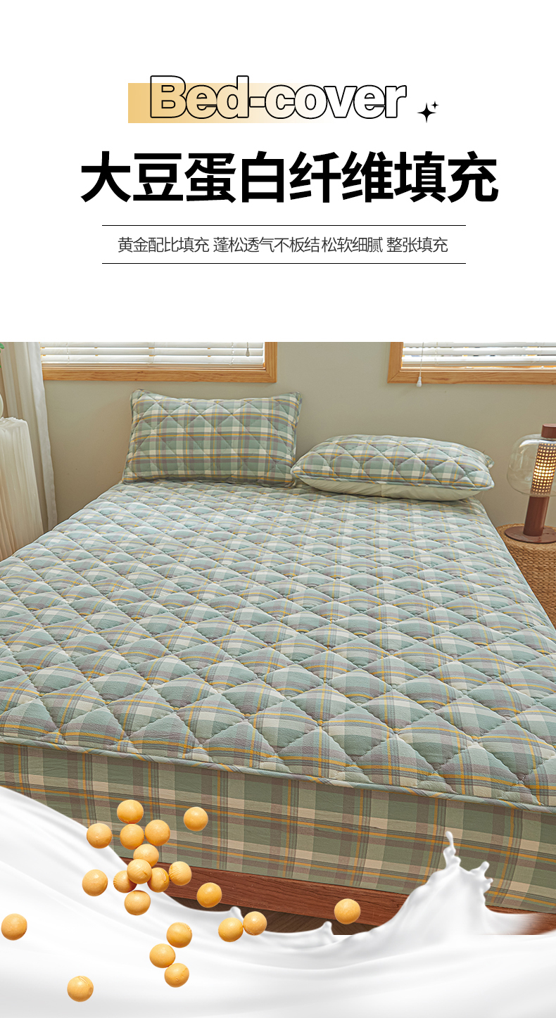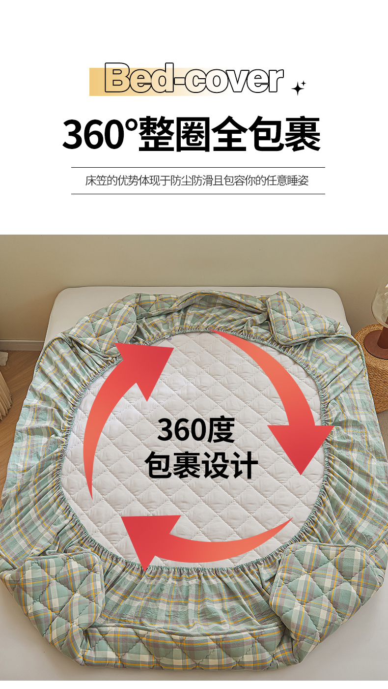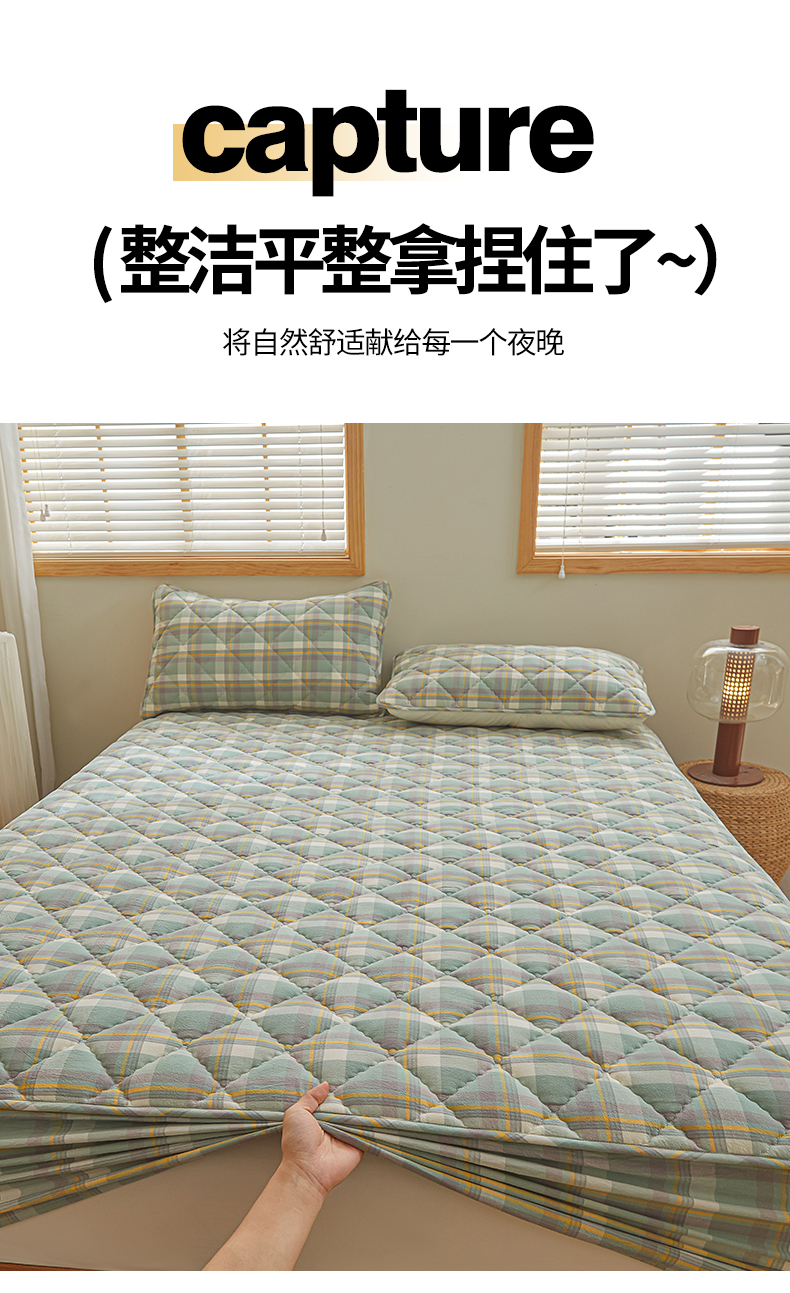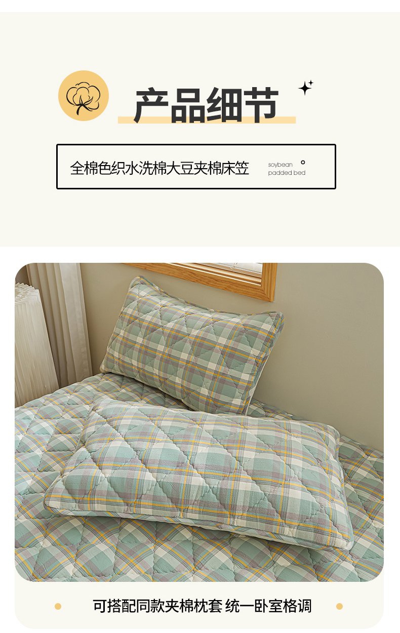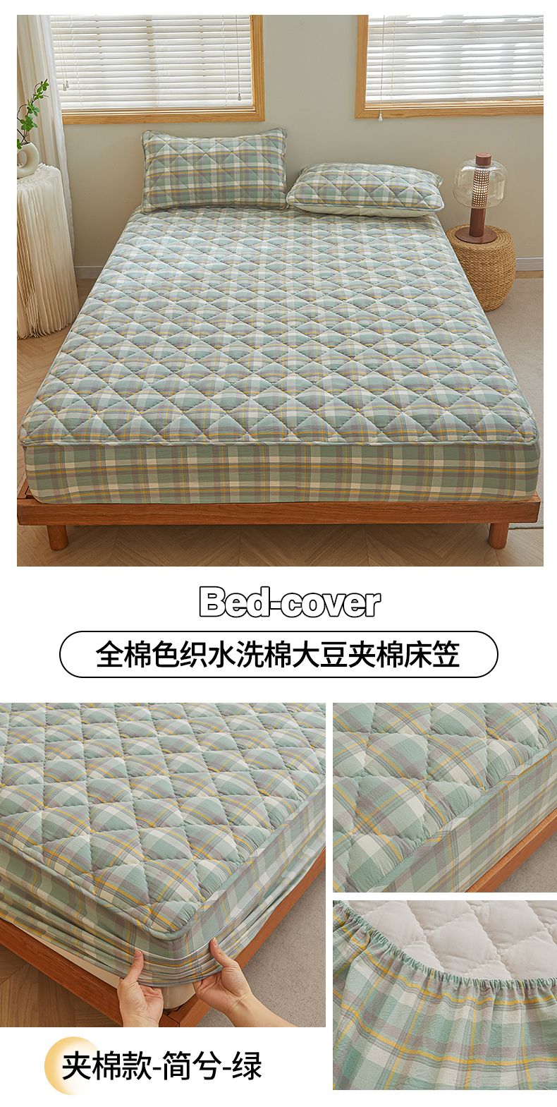居眠 2024新款全棉色织水洗棉格子夹棉床笠 夹棉款-简兮-绿