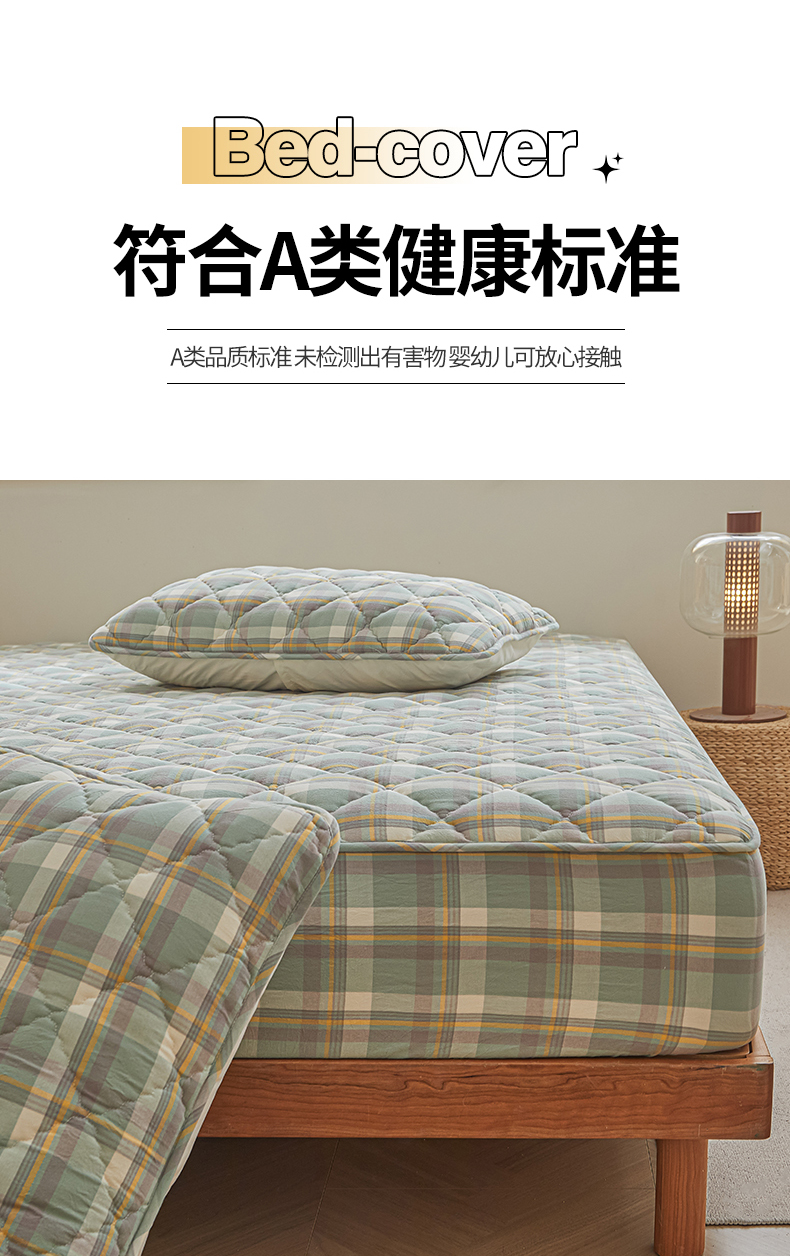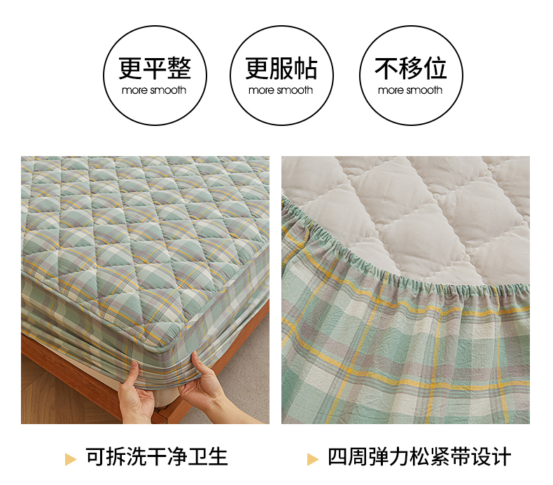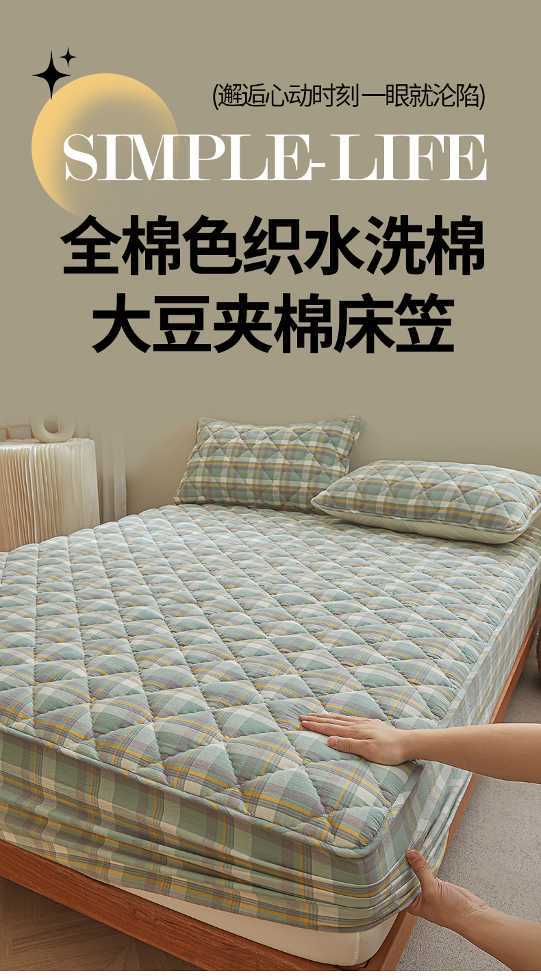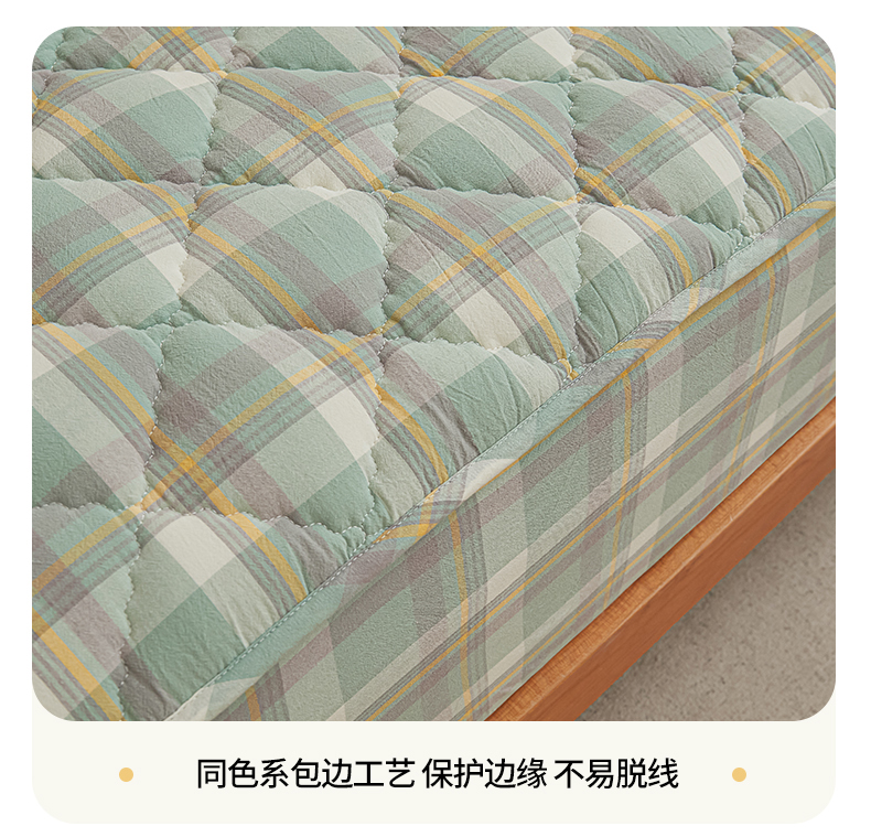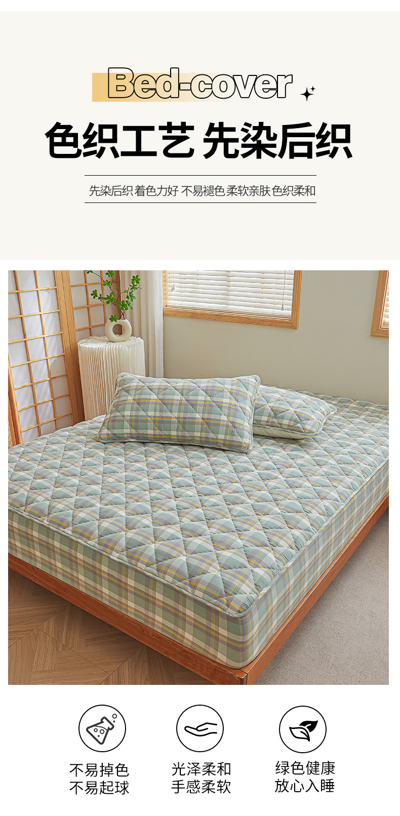• 91家纺网 家纺一手货源 找家纺 居眠 2024新款全棉色织水洗棉格子夹棉床笠 夹棉款-简兮-绿