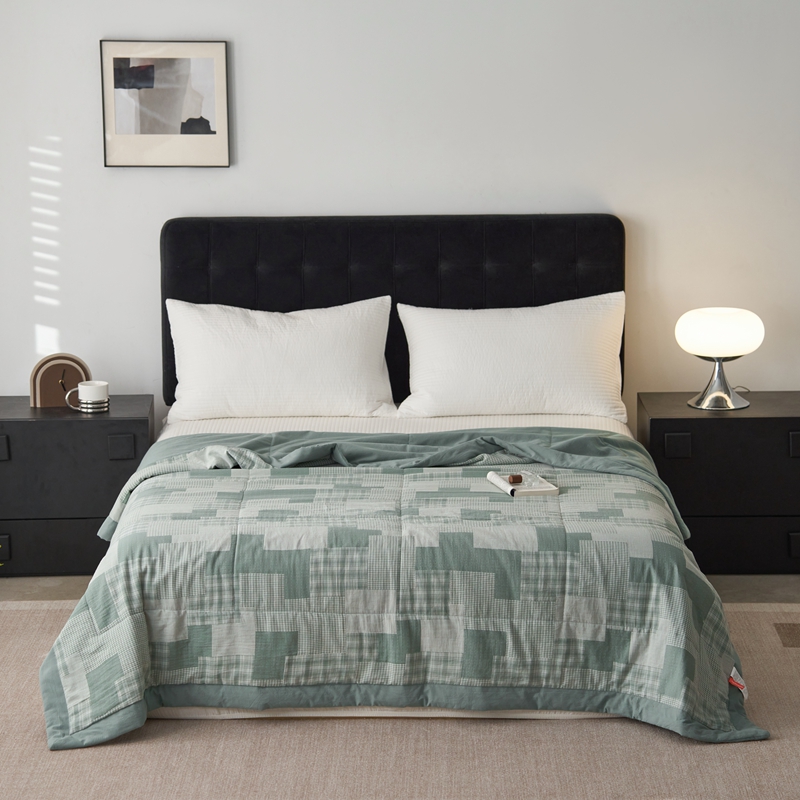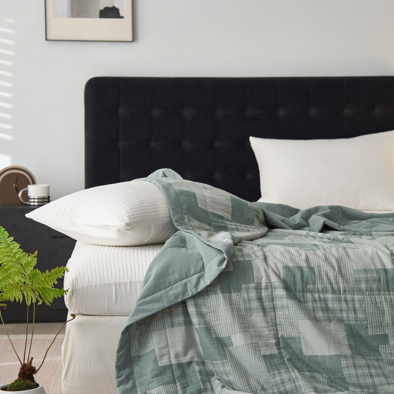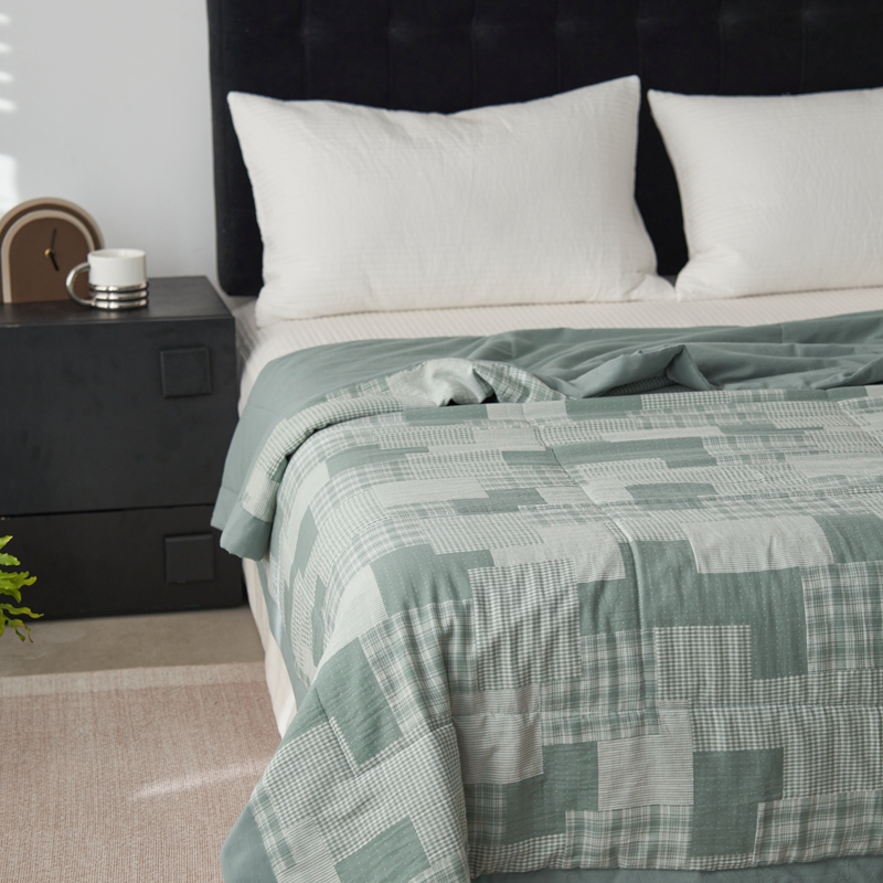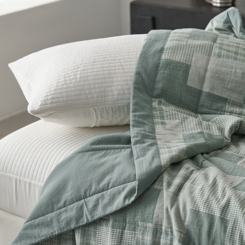 商品名称:安莱生活 2024新款双层纱拼布田园单夏被系列 拼布田园-灰绿