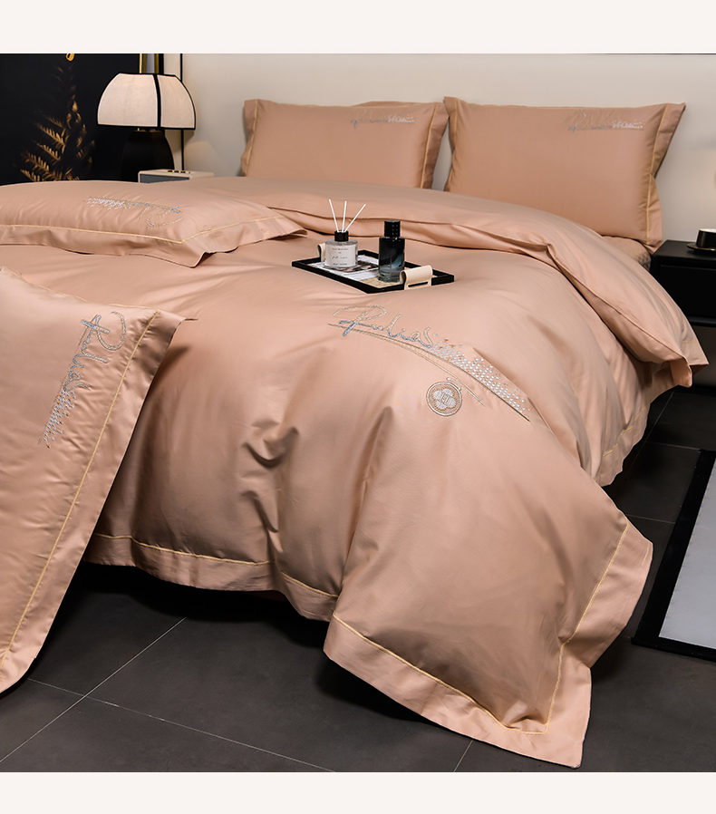 (总)小时代家纺 2025全棉活性喷气简约轻奢刺绣夹棉床盖款四件套-雅韵,雅韵-橙色,雅韵-灰兰,雅韵-青绿,雅韵-香槟,雅韵-胭粉,雅韵-紫色