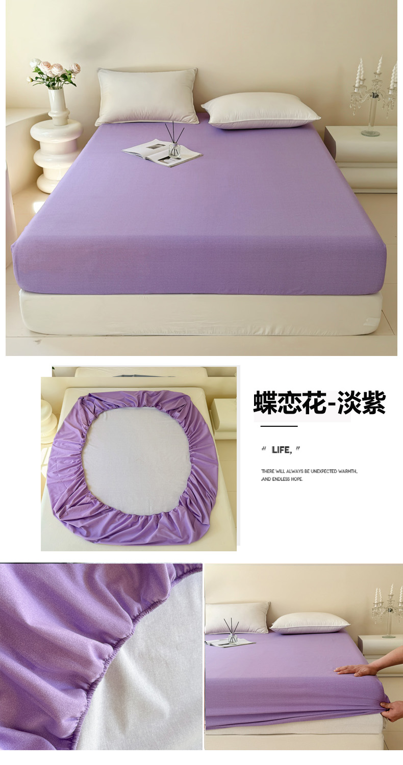 艾迪尚家纺 2025新款纯色生态磨毛绣花单床笠 蝶恋花-淡紫